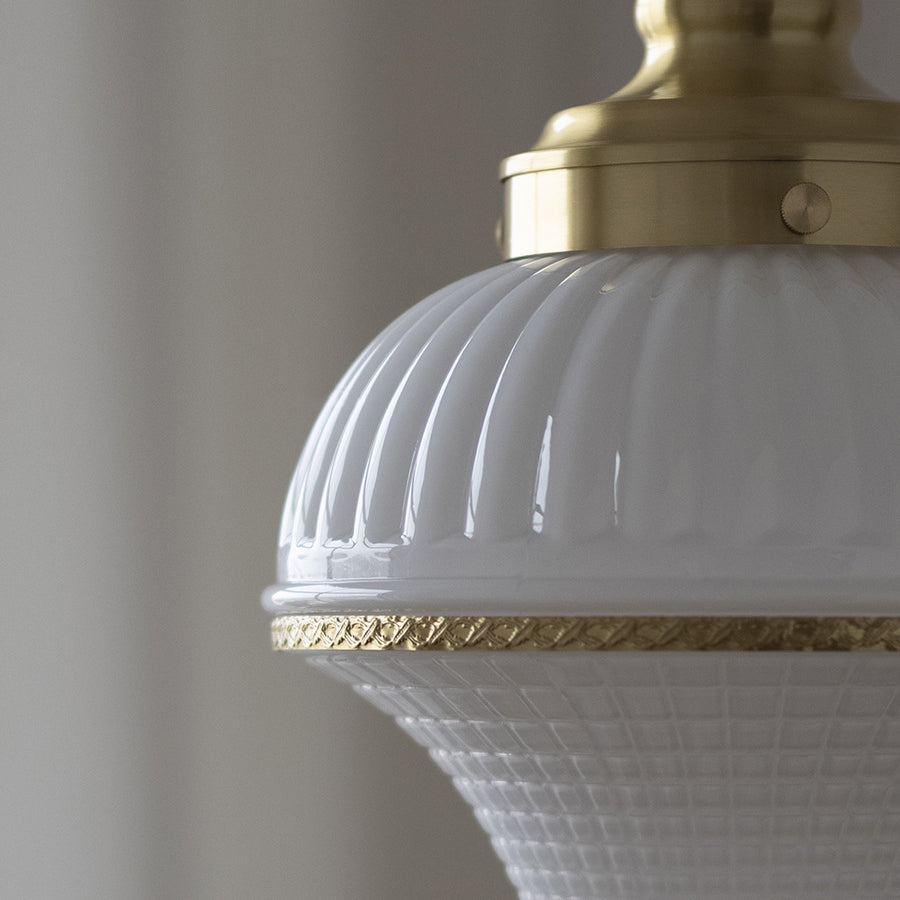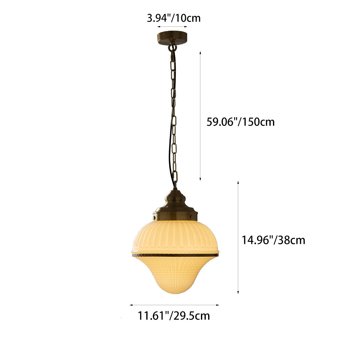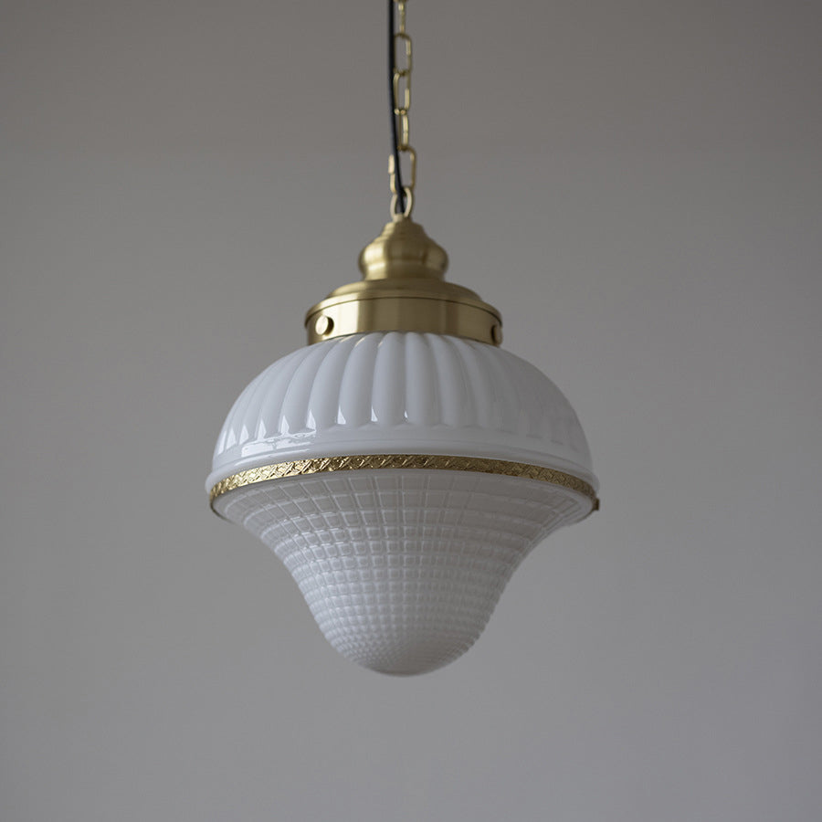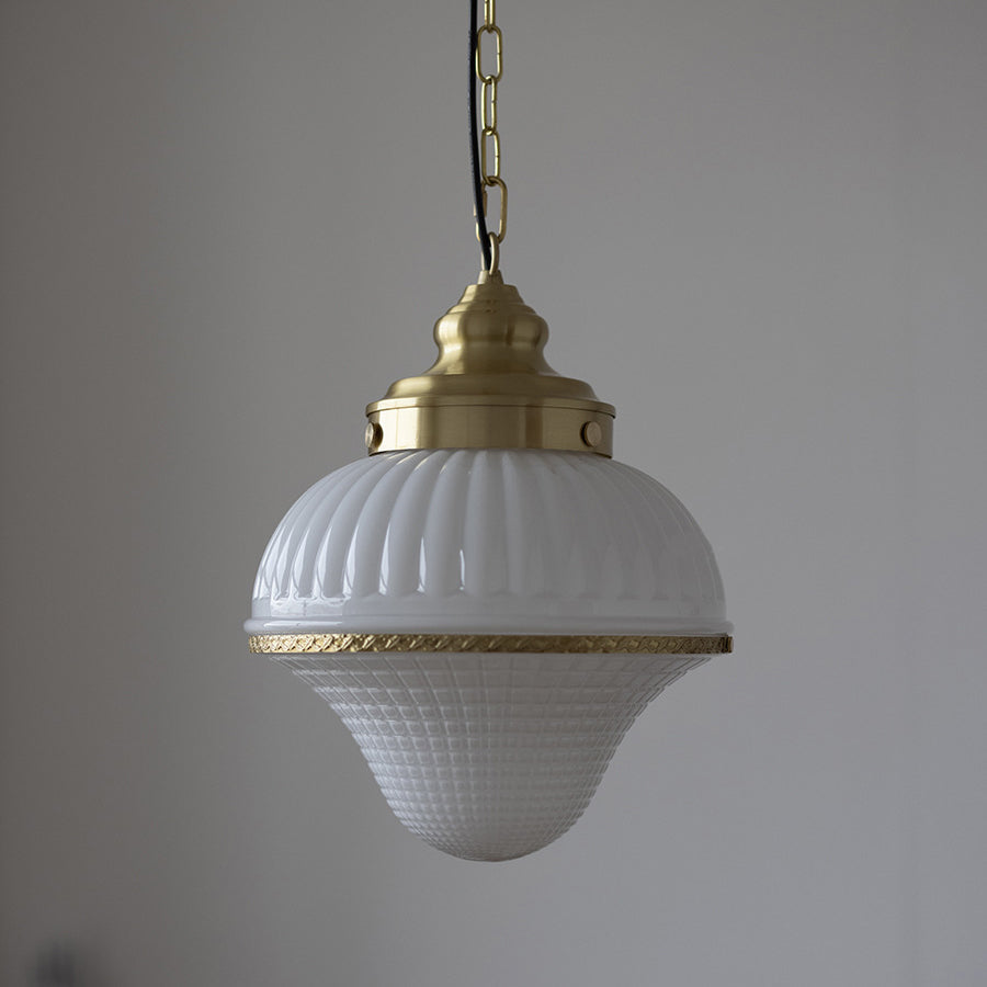 磨き上げられた真鍮のフレームと、愛らしいアイスクリーム型の光沢のあるガラスが特徴の、ミッドセンチュリーモダンペンダントライトで、空間を彩りましょう。反射するガラスの表面が高級感を演出し、調節可能なチェーンでお好みの取り付けが可能。寝室、リビングルーム、カフェなど、どんな空間にもエレガントな雰囲気を添えます。