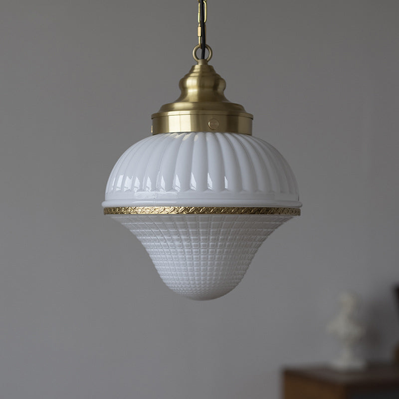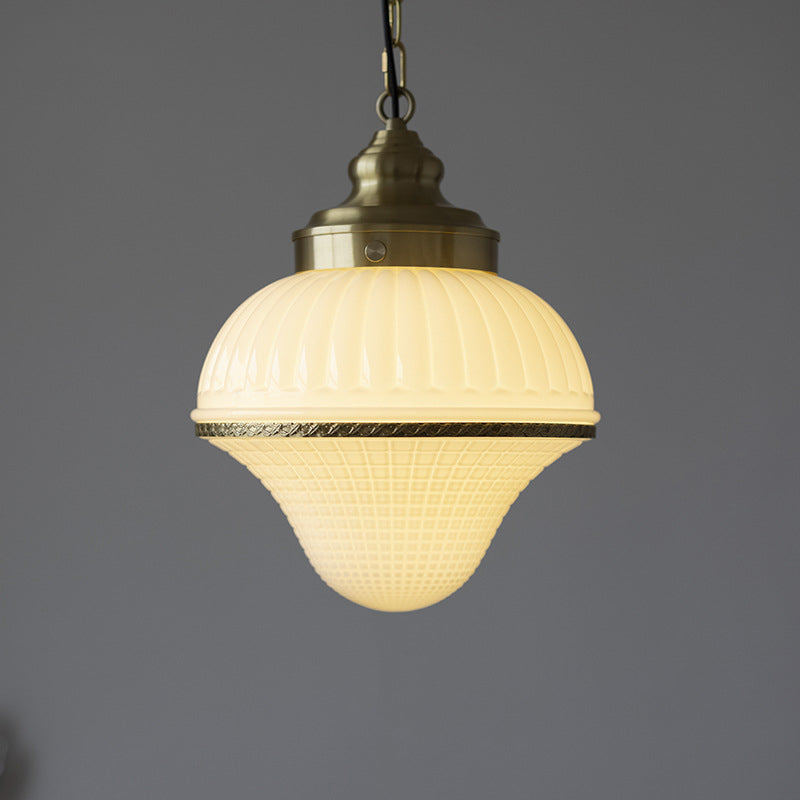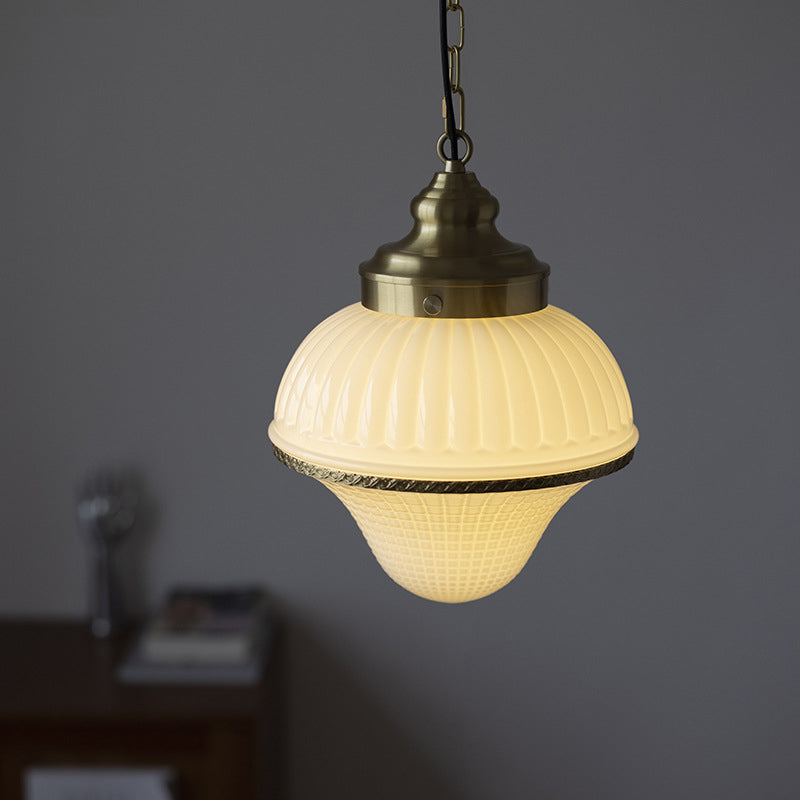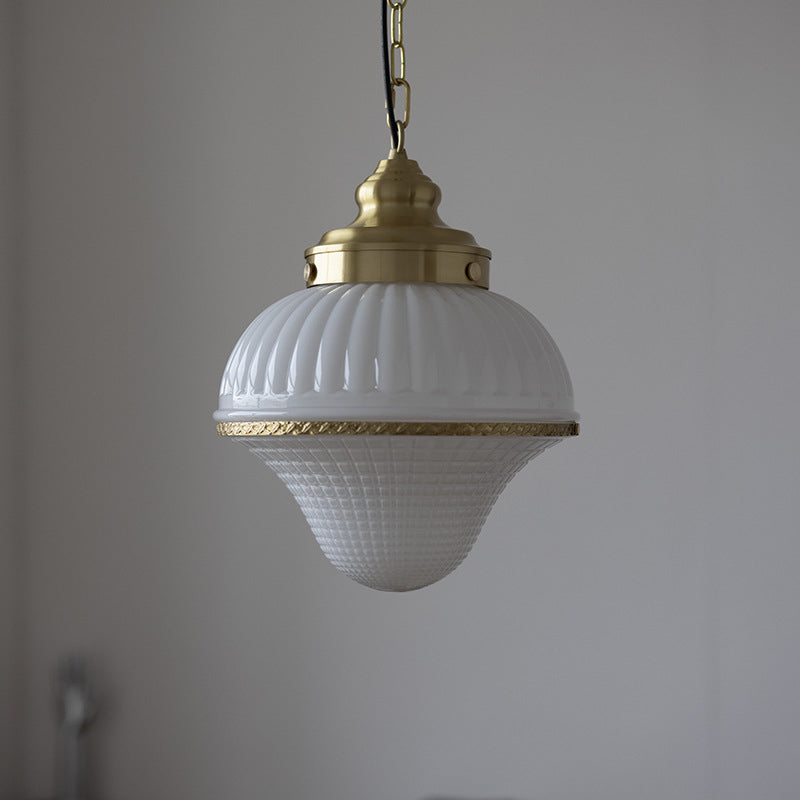 モダンミッドセンチュリーの真鍮とガラスのアイスクリーム型1灯ペンダントライト。寝室とリビングルームに最適。