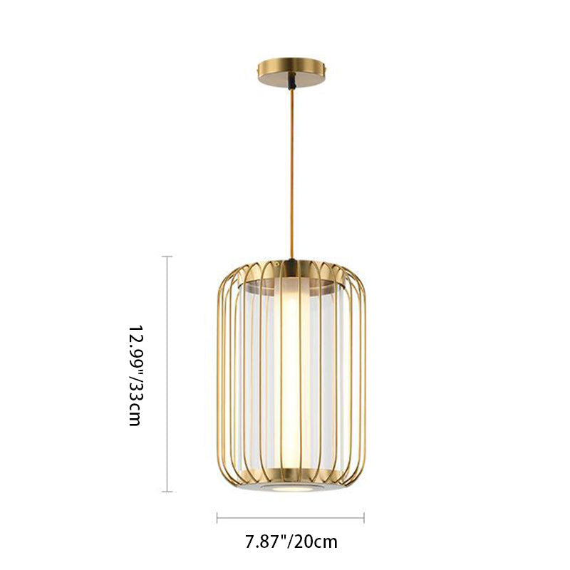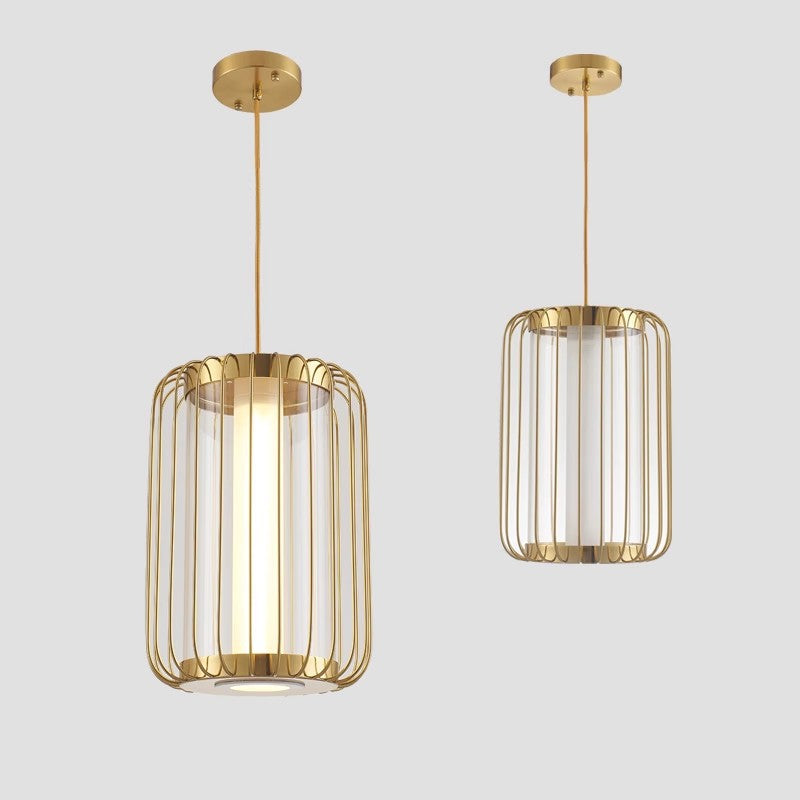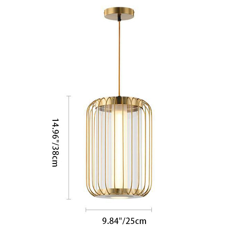モダンミッドセンチュリーアイアンアクリルシリンダーケージLEDペンダントライト(ダイニングルーム用)