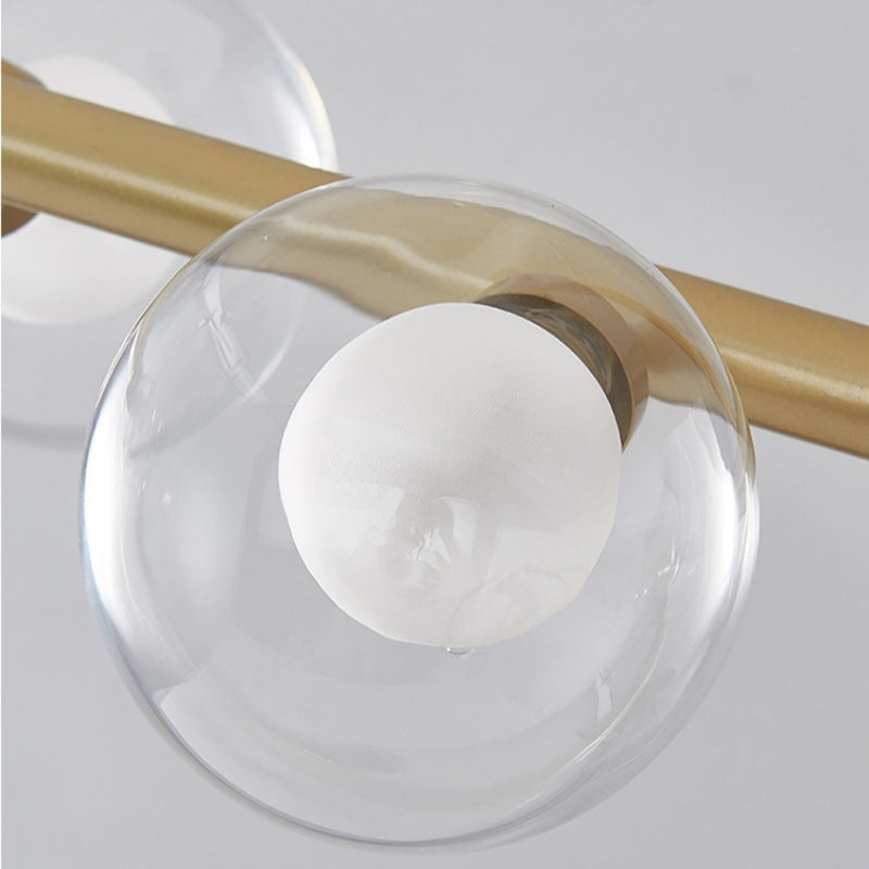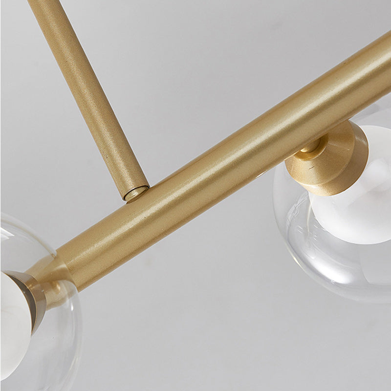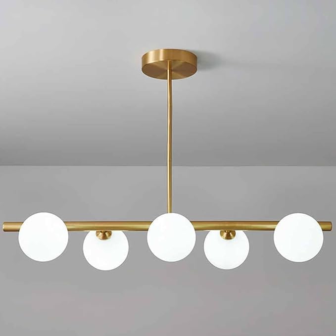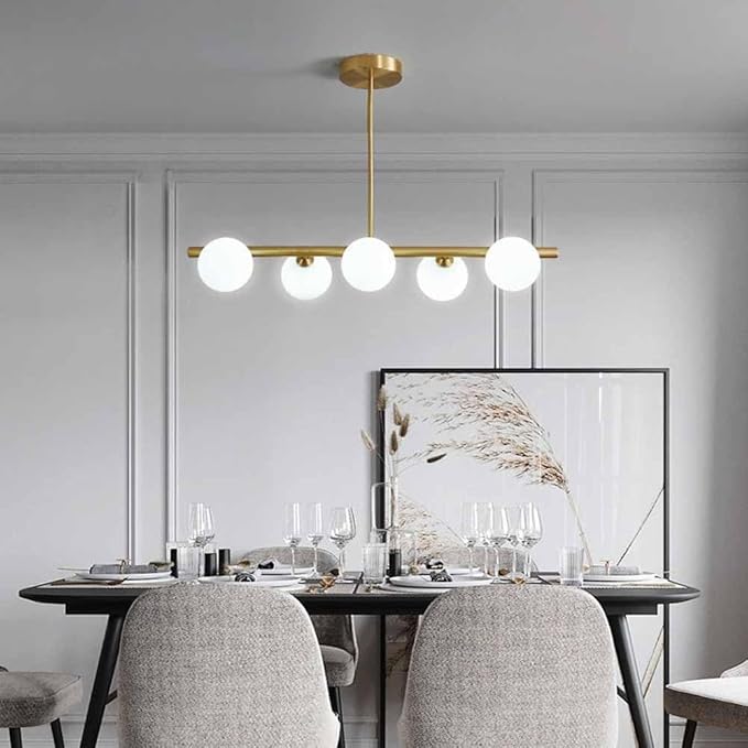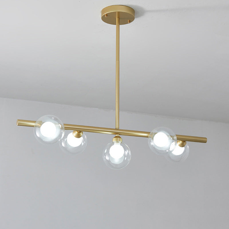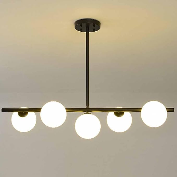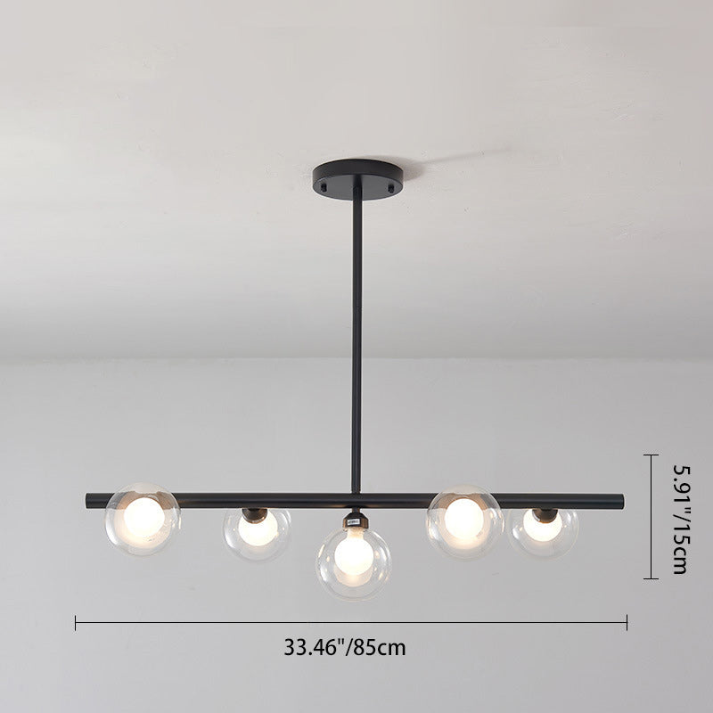 モダンミッドセンチュリーリニアアイアンフレームガラスグローブシェード5ライトシャンデリアアイランドライトリビングルーム用