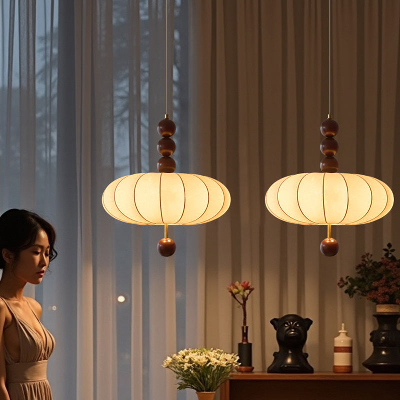 モダンミッドセンチュリーメタルウッドファブリック円形3/4ライトペンダントライトリビングルーム用