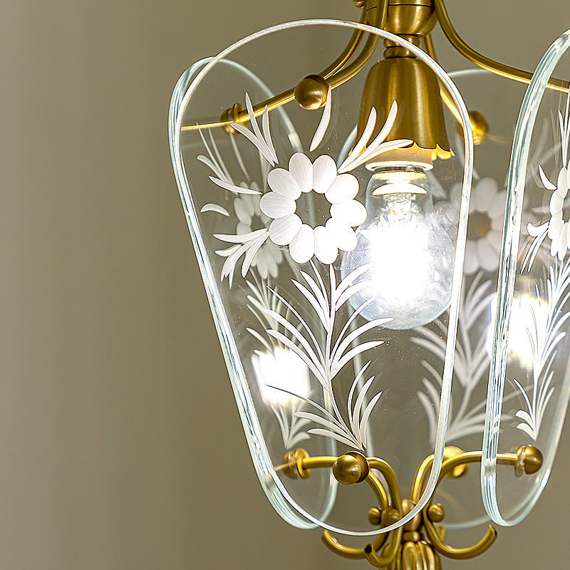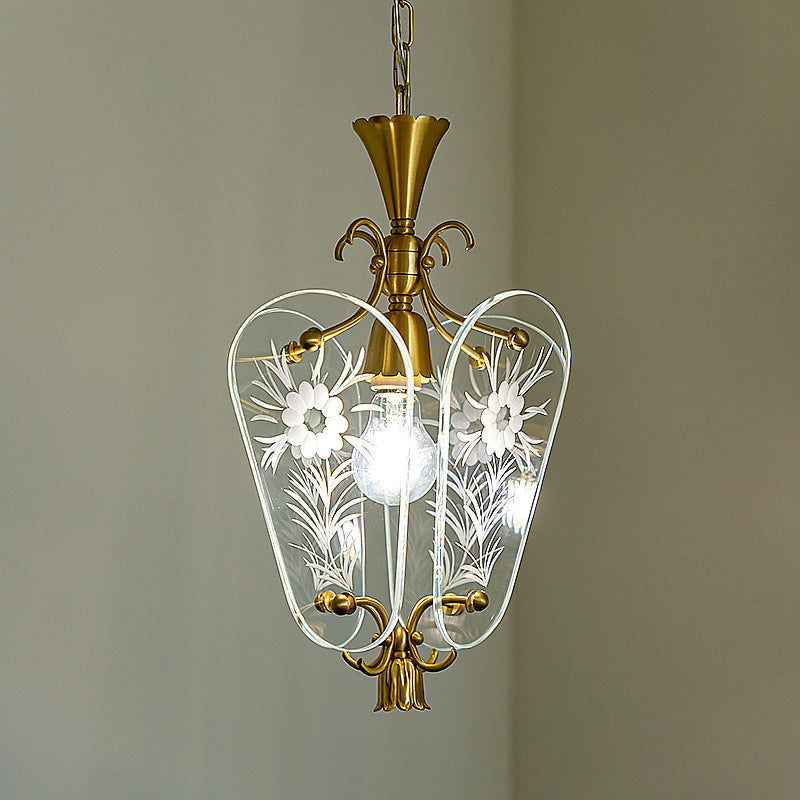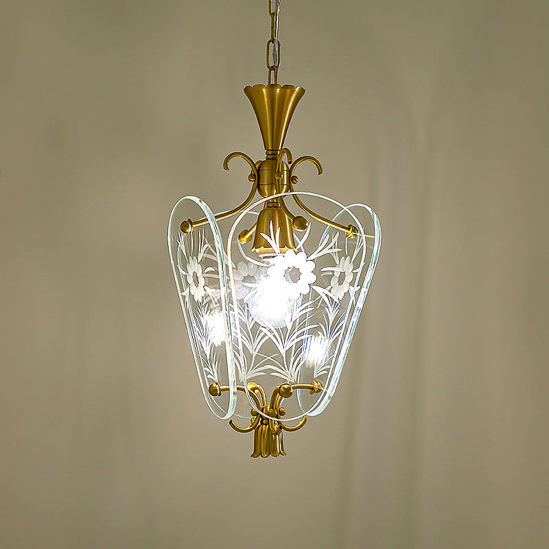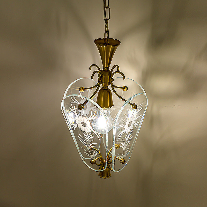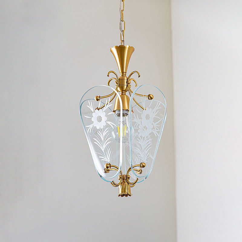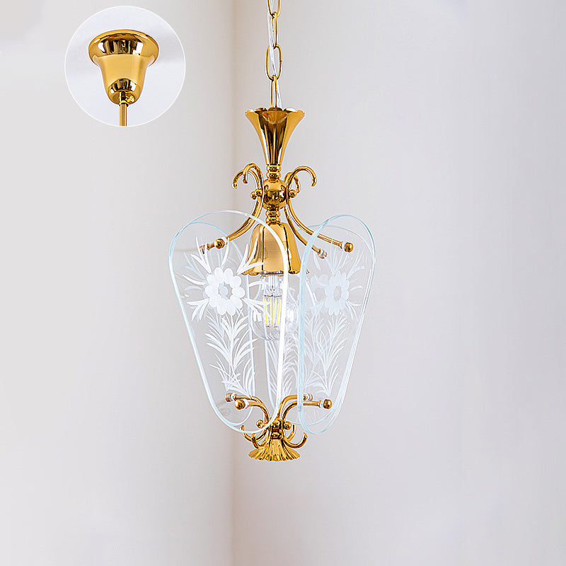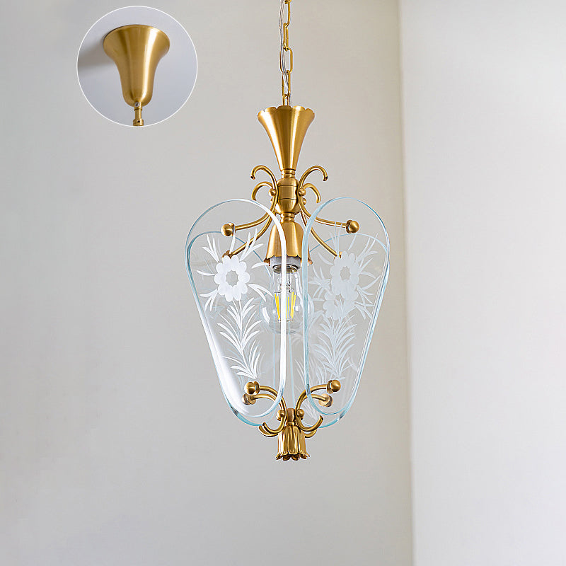 モダンミッドセンチュリー四角形オーバルフローラルガラスシェードアイアンフレーム1ライトペンダントライトリビングルーム用