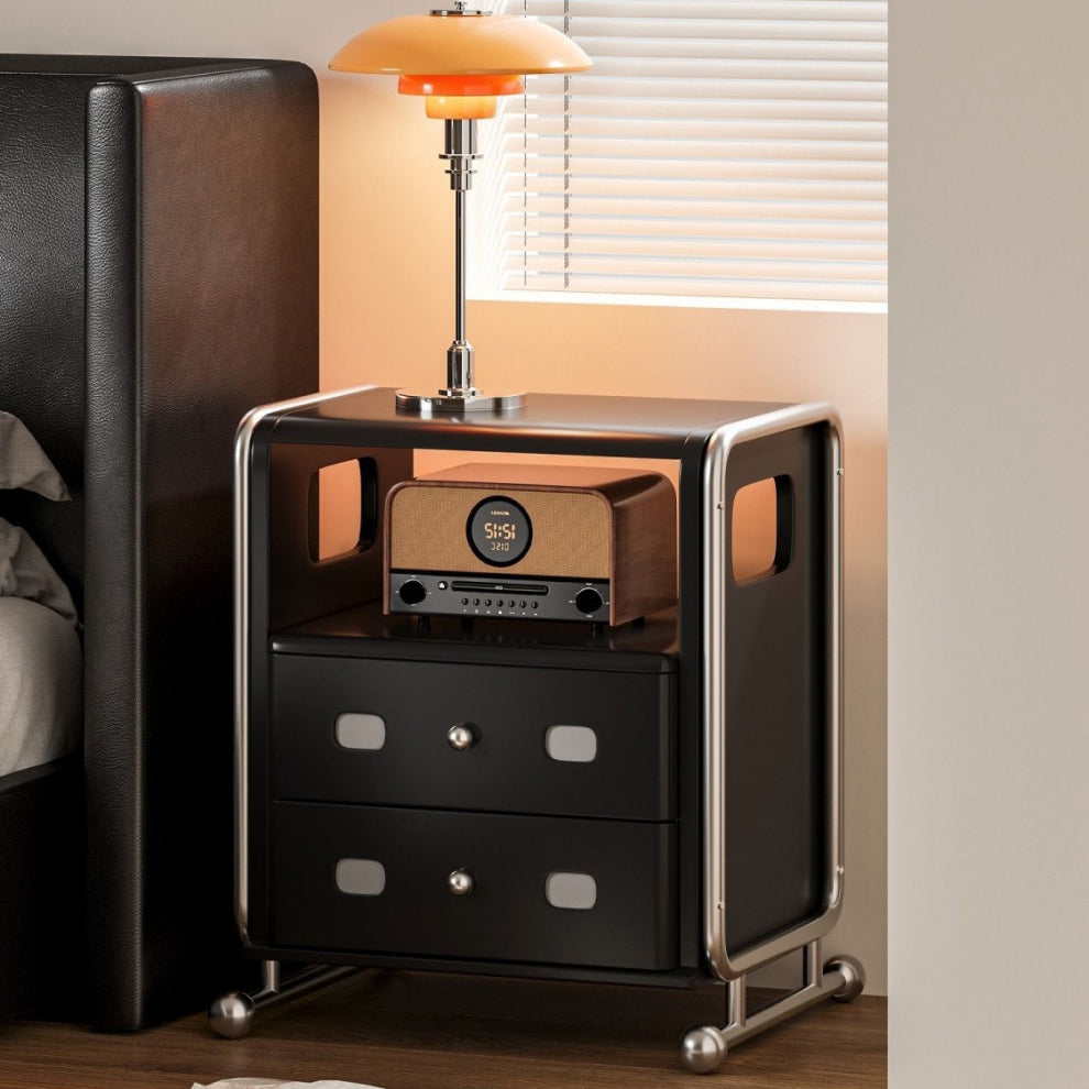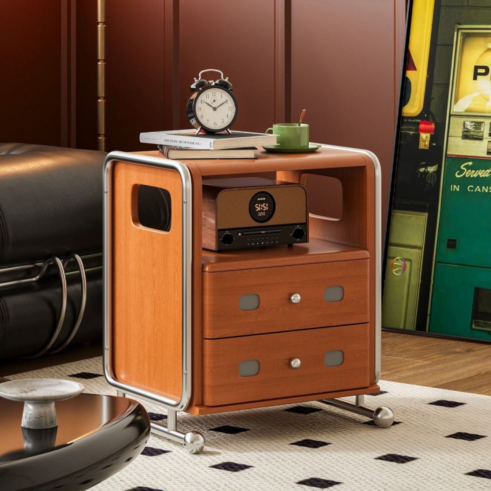 Modern Mid-Century Romantic Rectangular Tabletop Solid Wood Stainless Steel Nightstand 2-Drawer For Bedroom