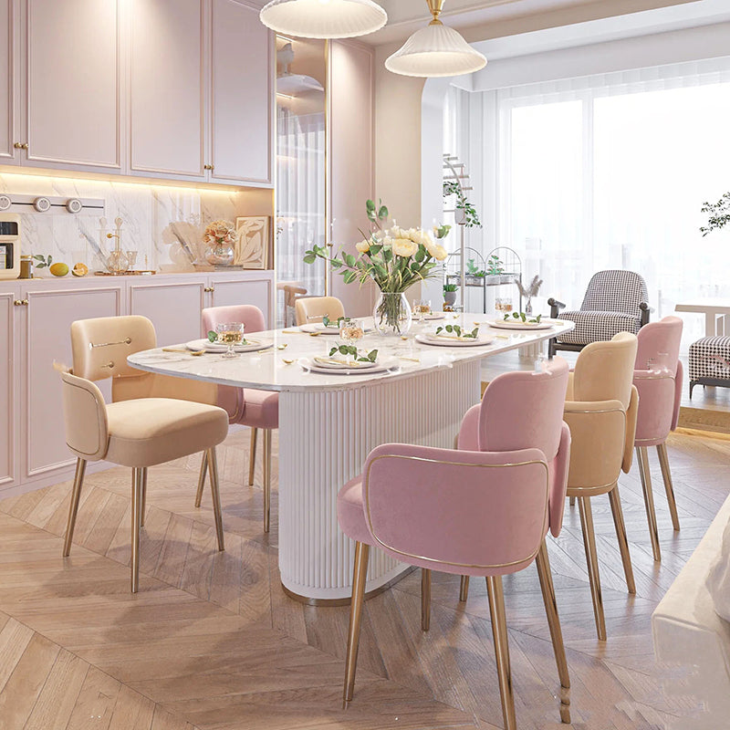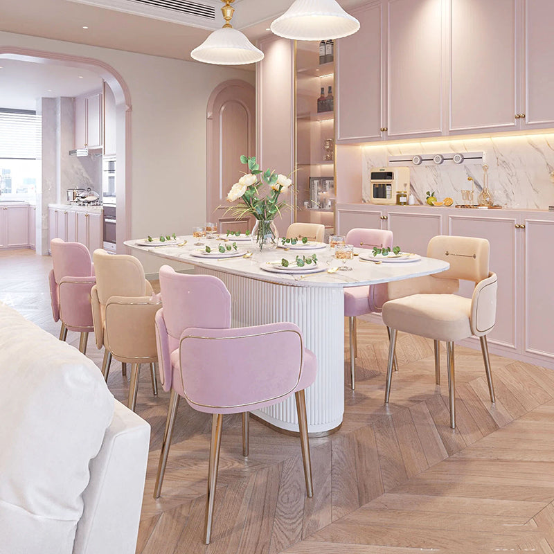 Modern Mid-century Semi-circular Cushion Fabric Sponge Stainless Steel Dining Chair Backrest Armrest For Dining Room