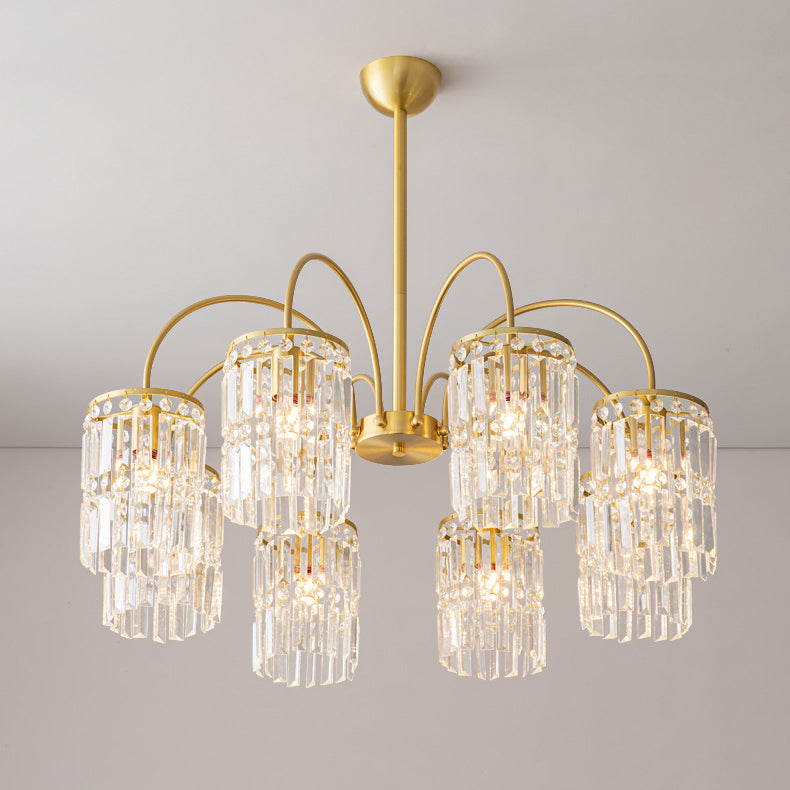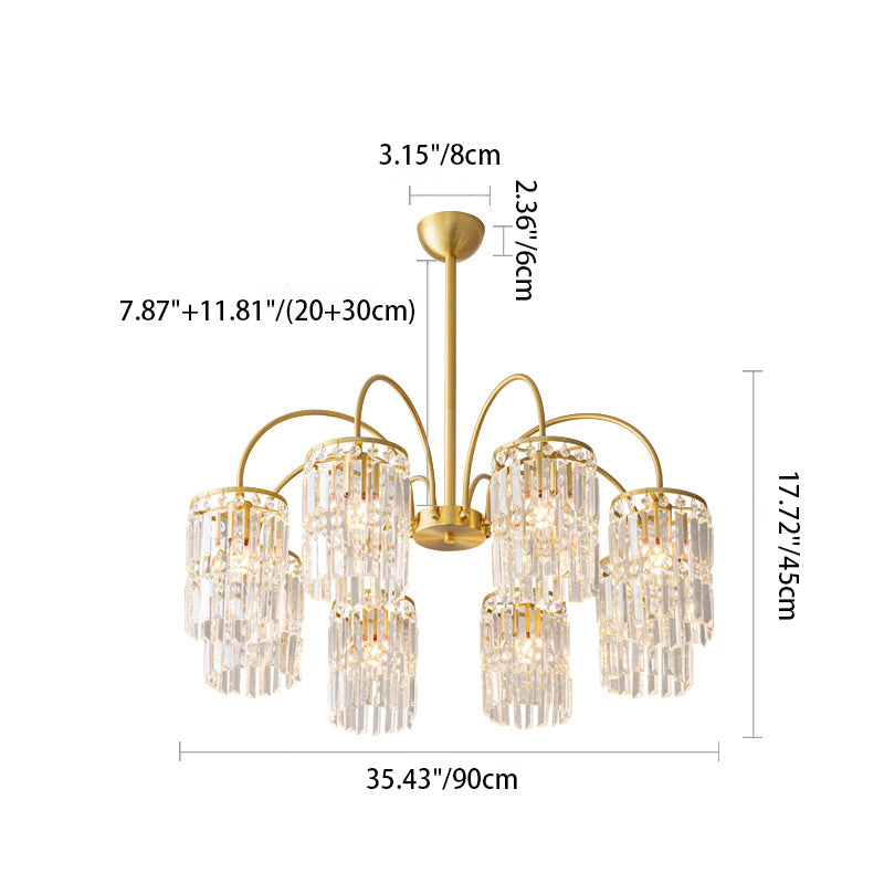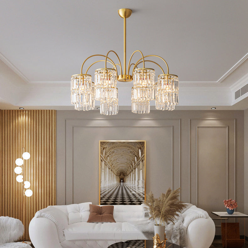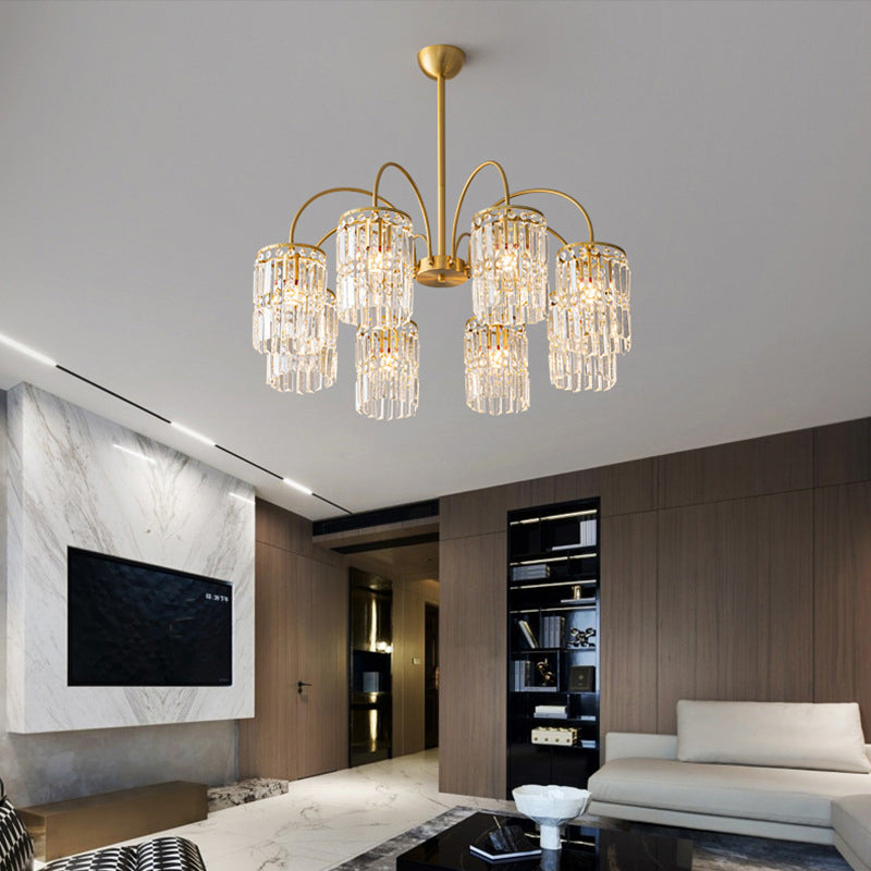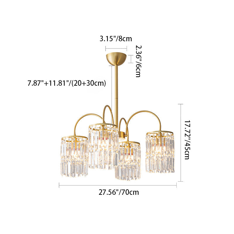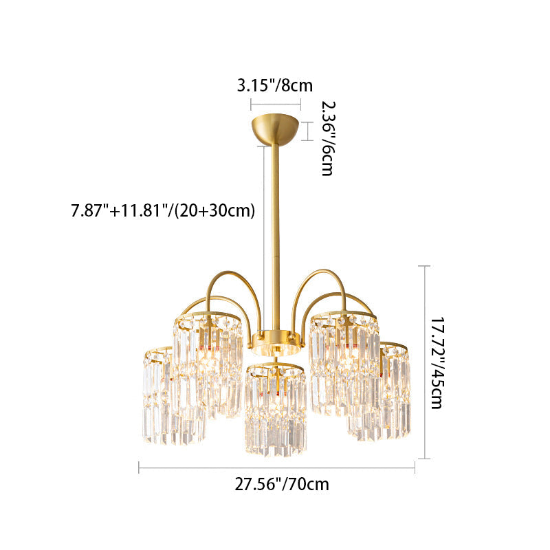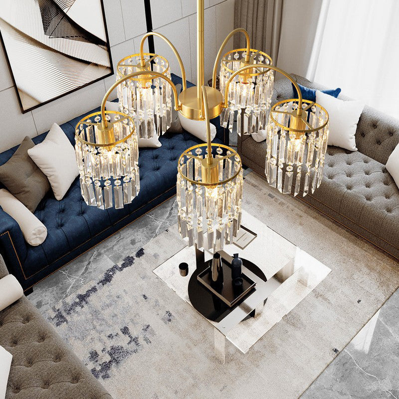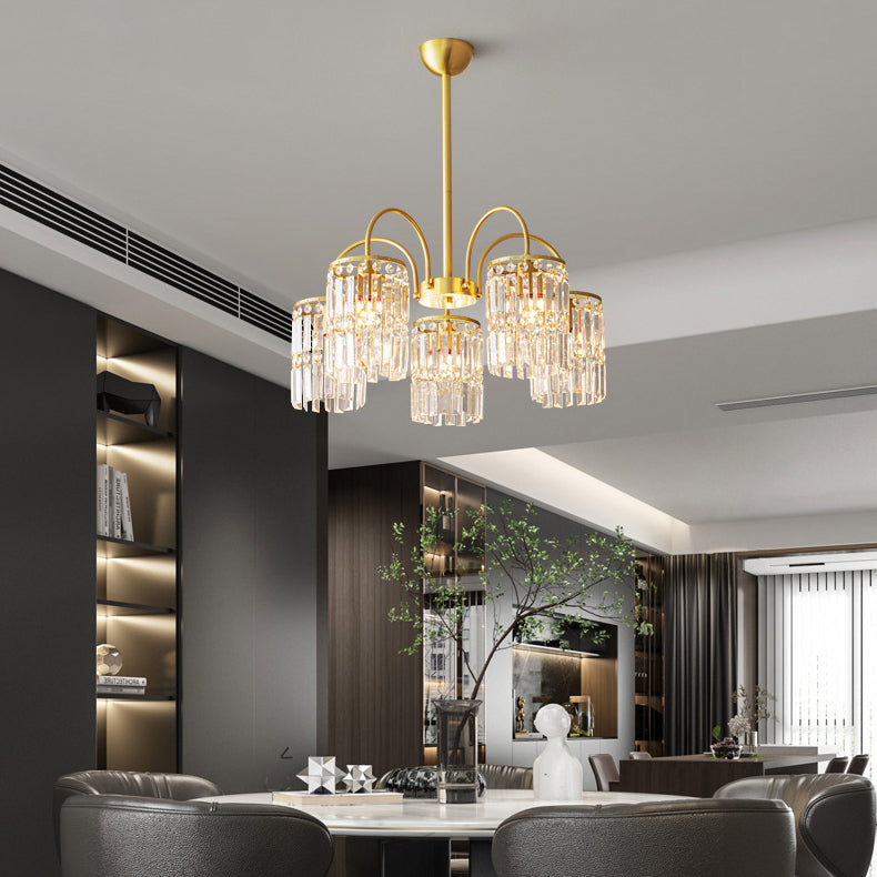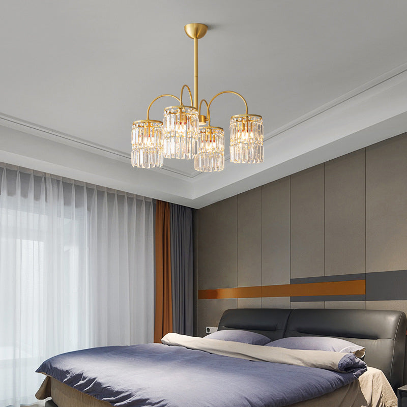 モダンミニマリストブランチシリンダーフル銅クリスタル4/5/8ライトシャンデリアリビングルーム用