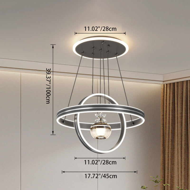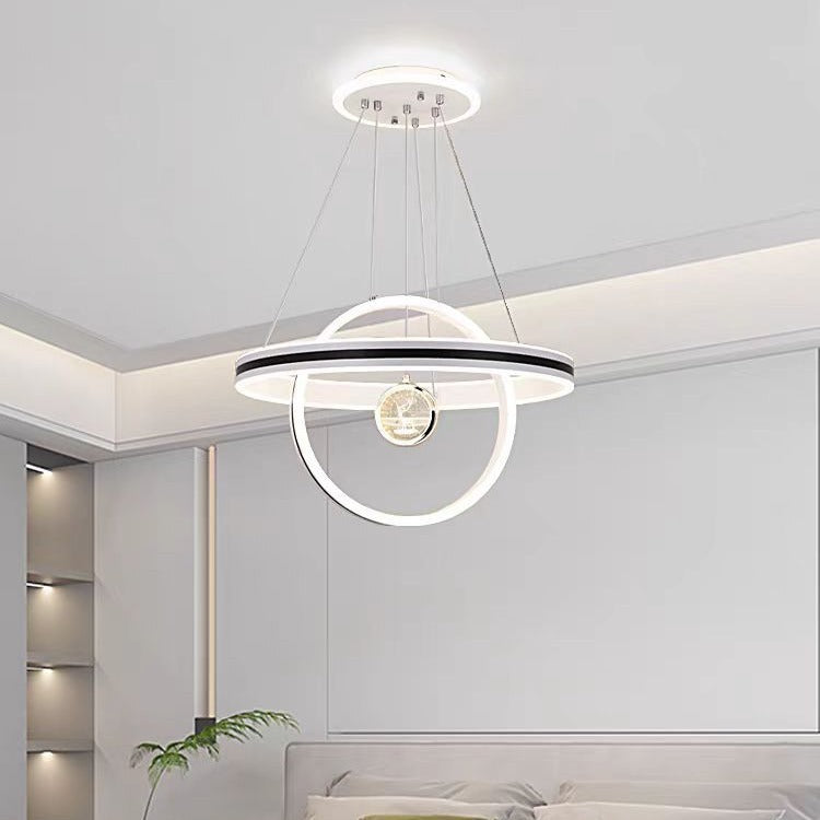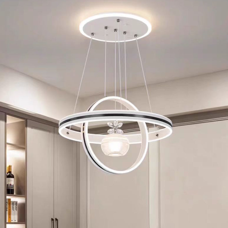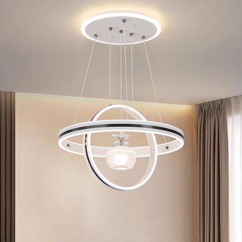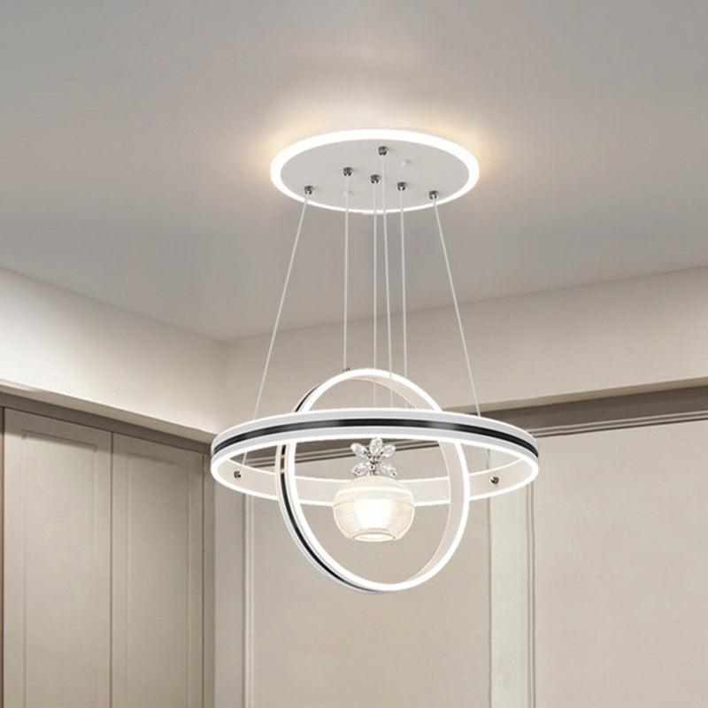 モダンミニマリストサークルボールフラワーアイアンアルミアクリルシリコンLEDペンダントライトリビングルーム用