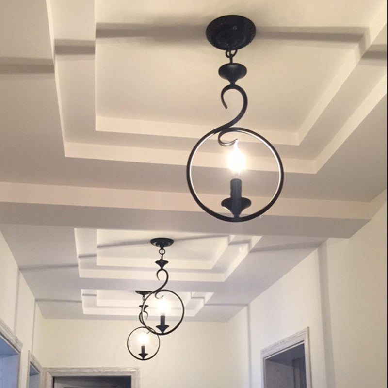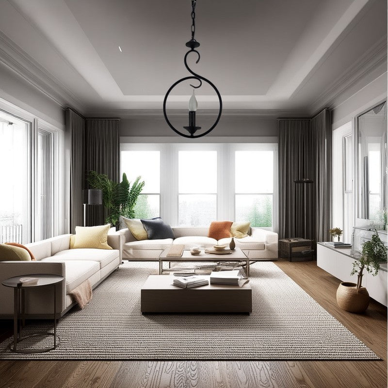 モダンでミニマリストな円形キャンドル型アイアンPVCペンダントライト(寝室用)