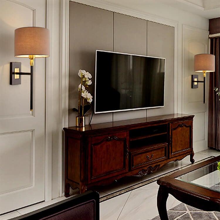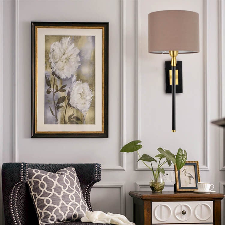 モダンミニマリストコーヒーファブリックシリンダーシェード1ライトウォールスコンスランプ