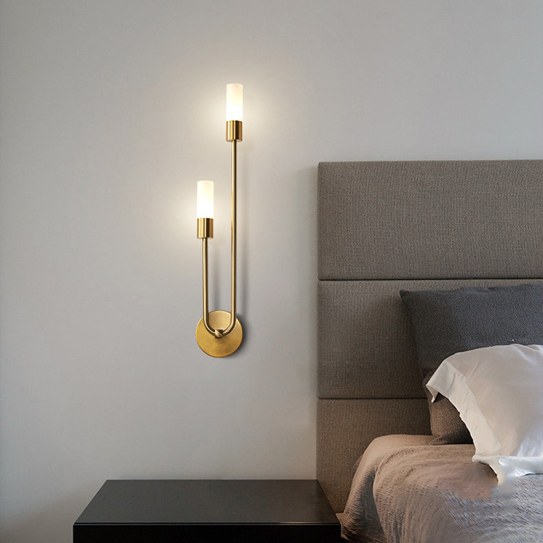 寝室用モダンミニマリスト円筒形鉄製アクリル2灯壁取り付け用燭台ランプ