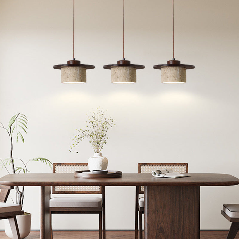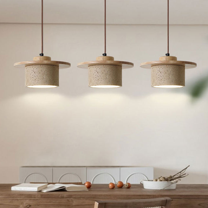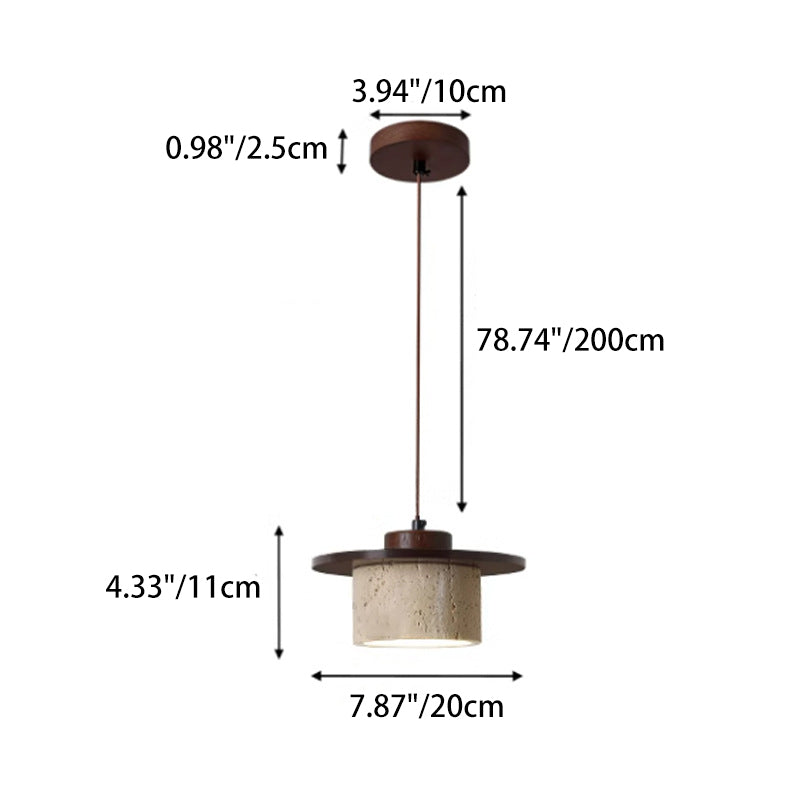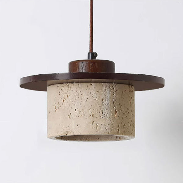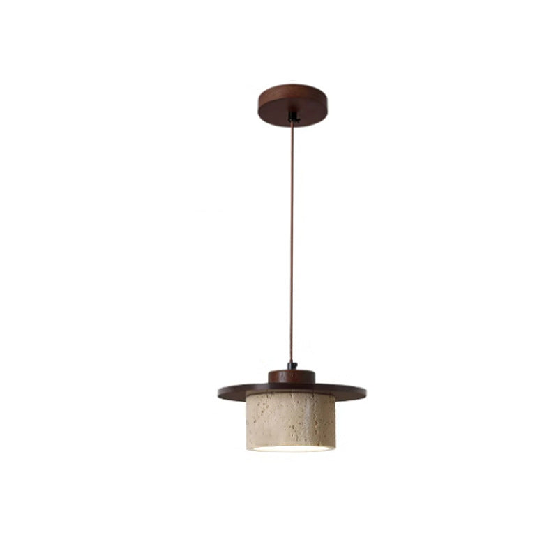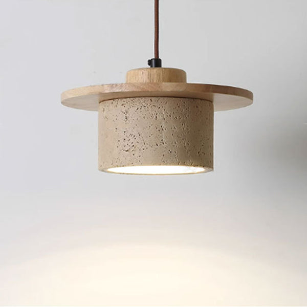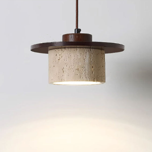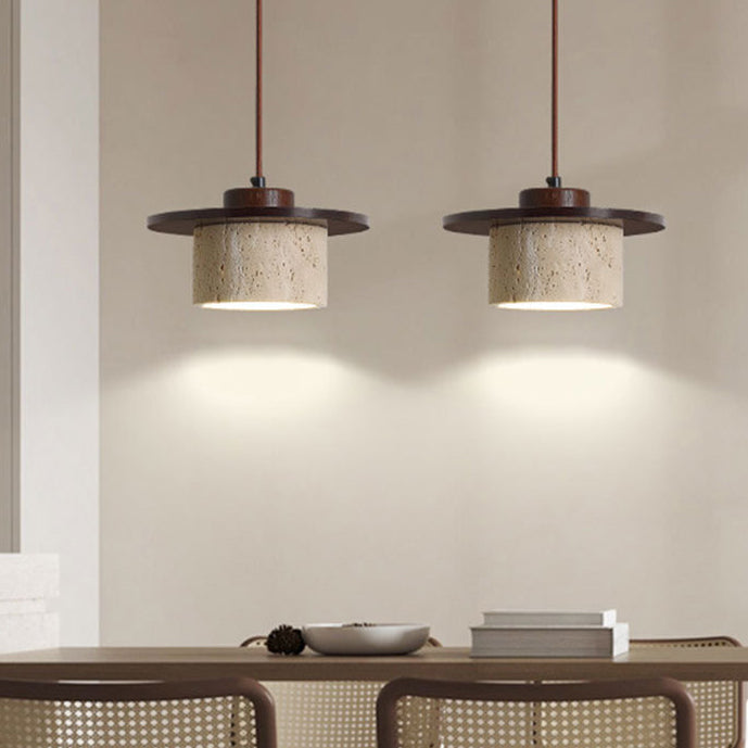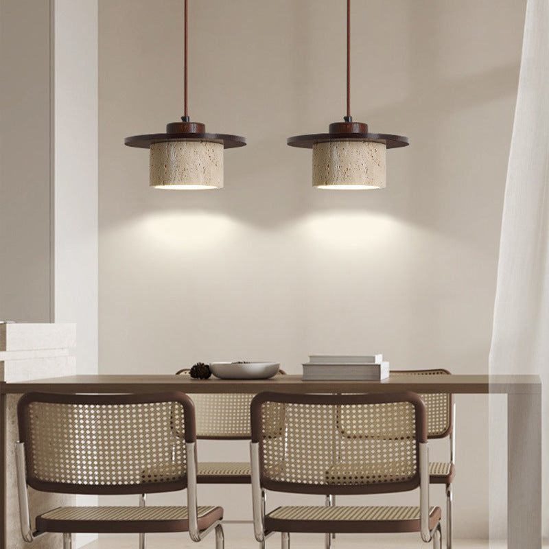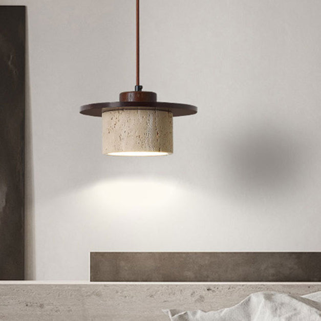 モダンでミニマリストな円筒形のイエロートラバーチン無垢材1灯ペンダントライト(寝室用)