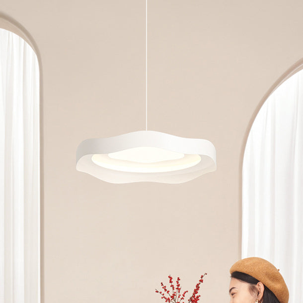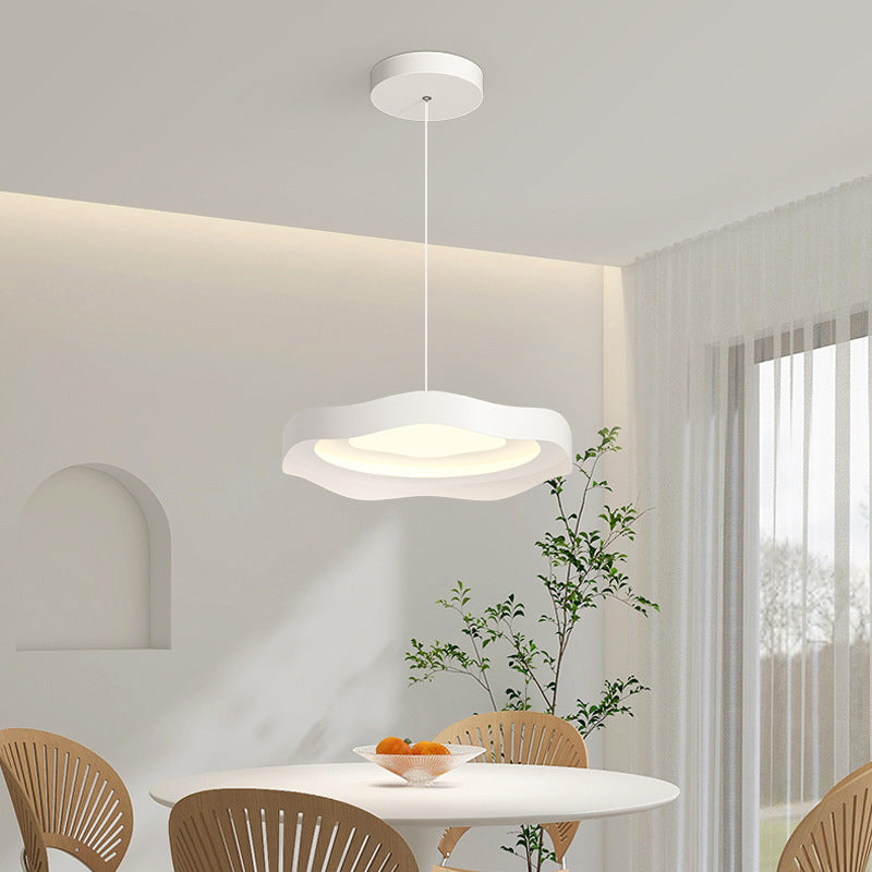 モダンでミニマリストなドームウェーブラウンドアイアンアルミランプシェードLEDペンダントライト(ダイニングルーム用)