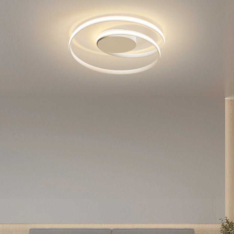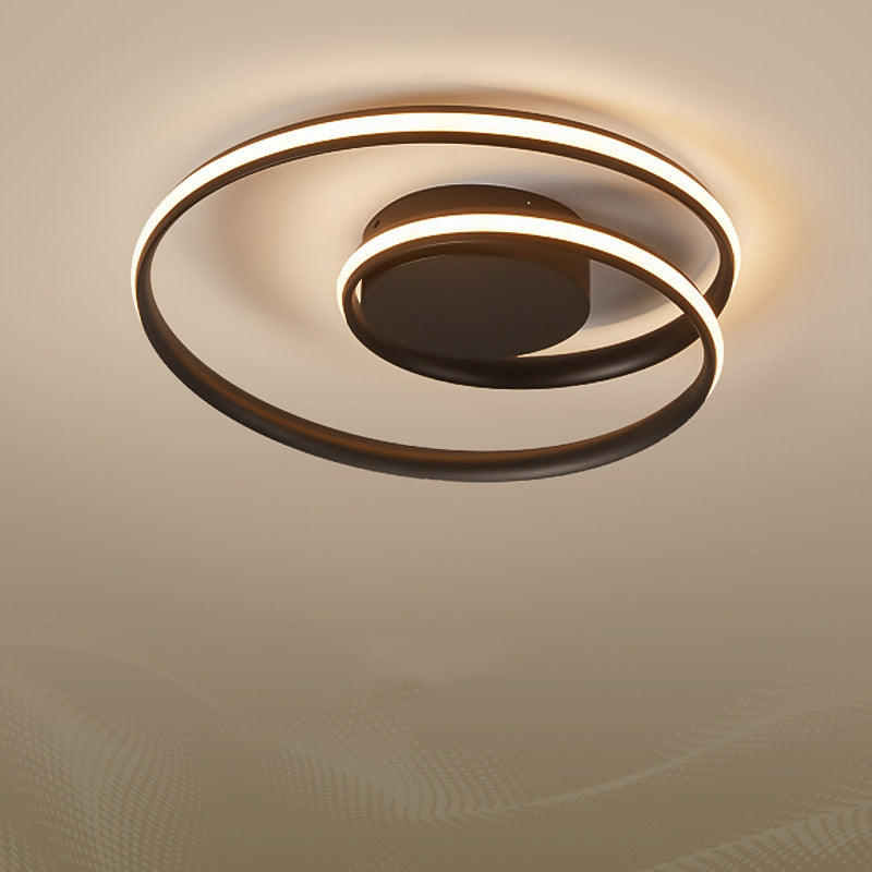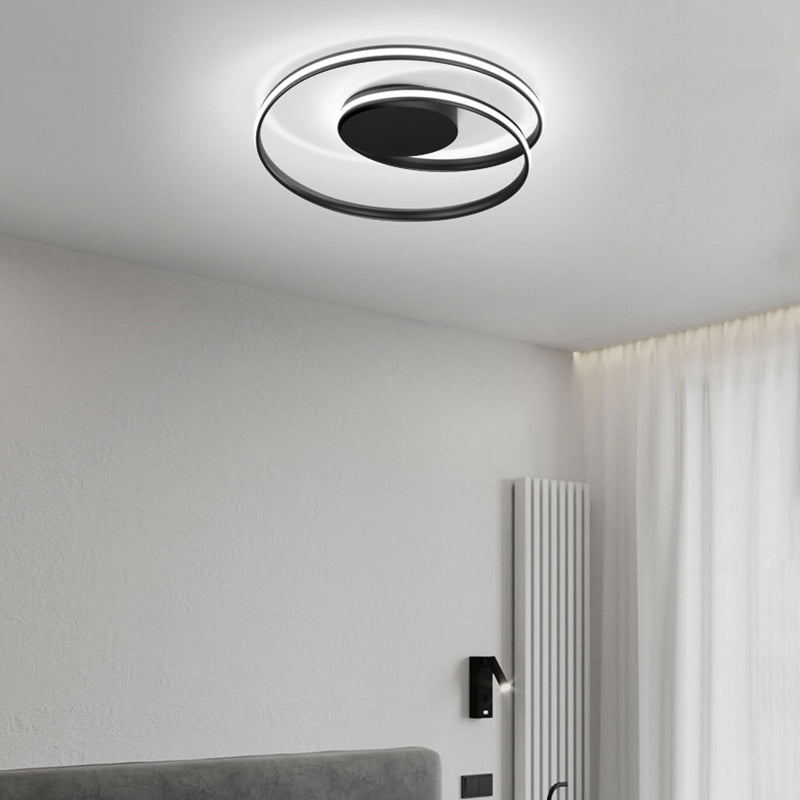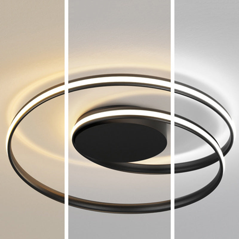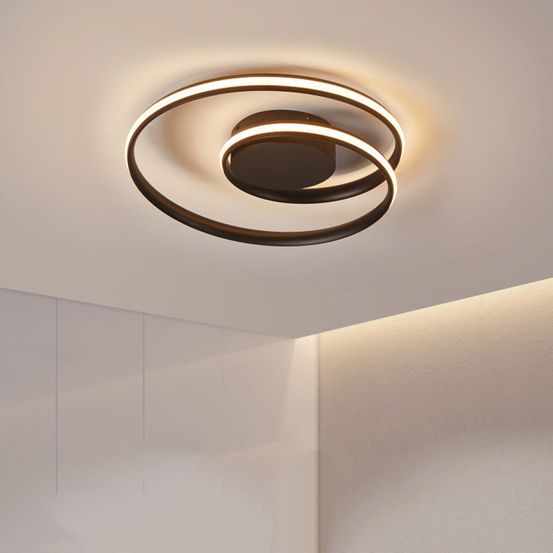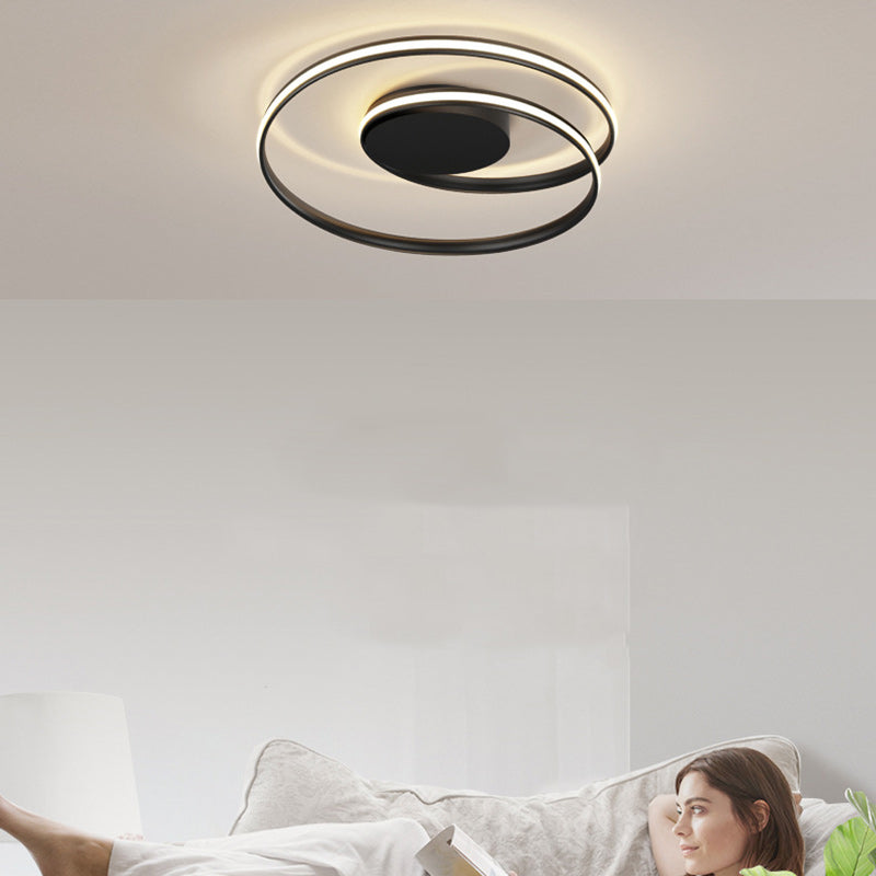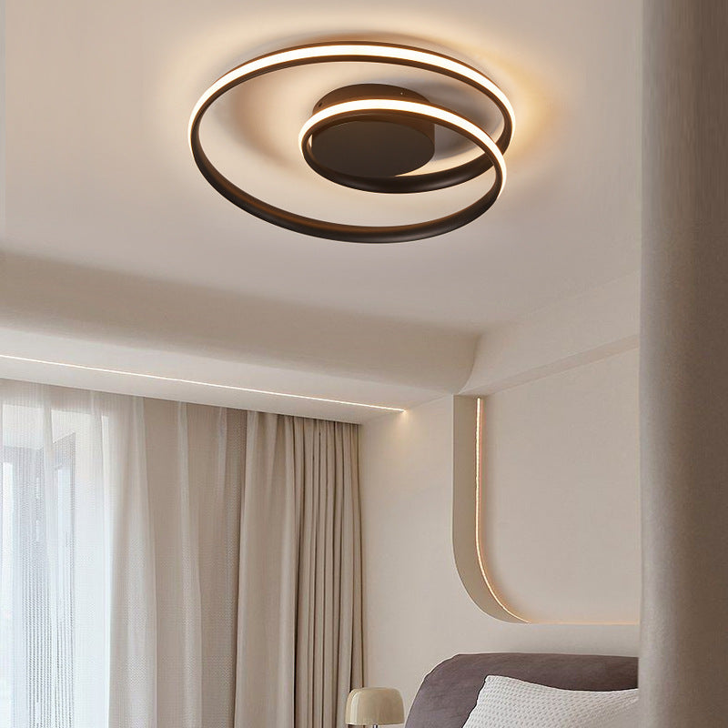 寝室用モダンミニマリストダブルラウンドアルミシリコンLEDセミフラッシュマウントシーリングライト