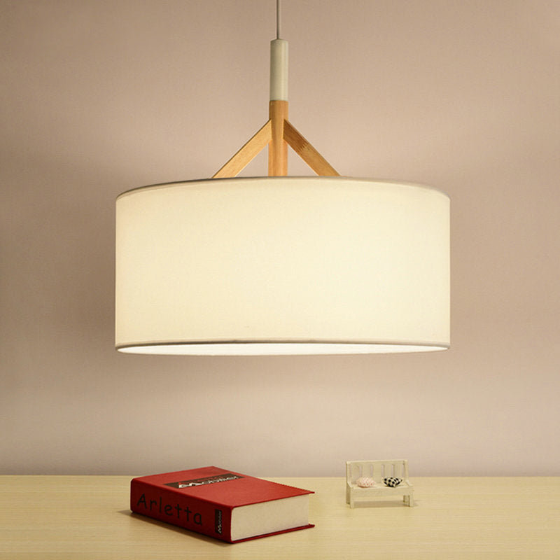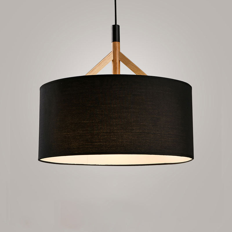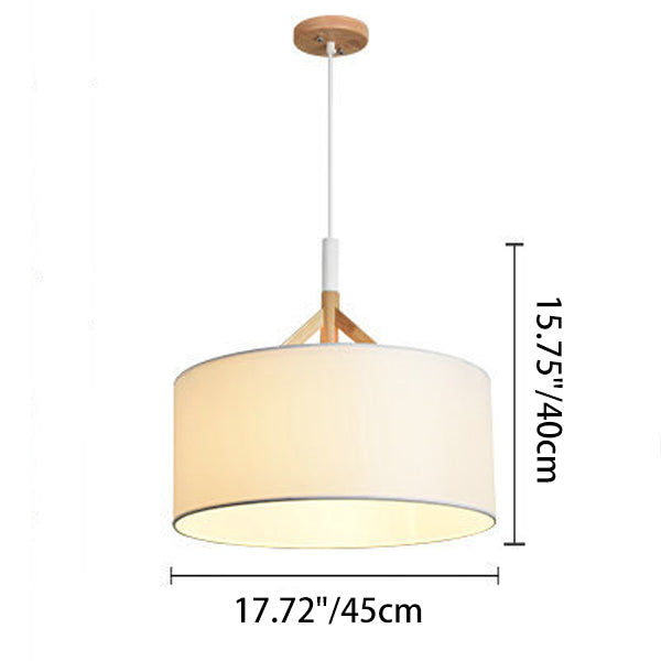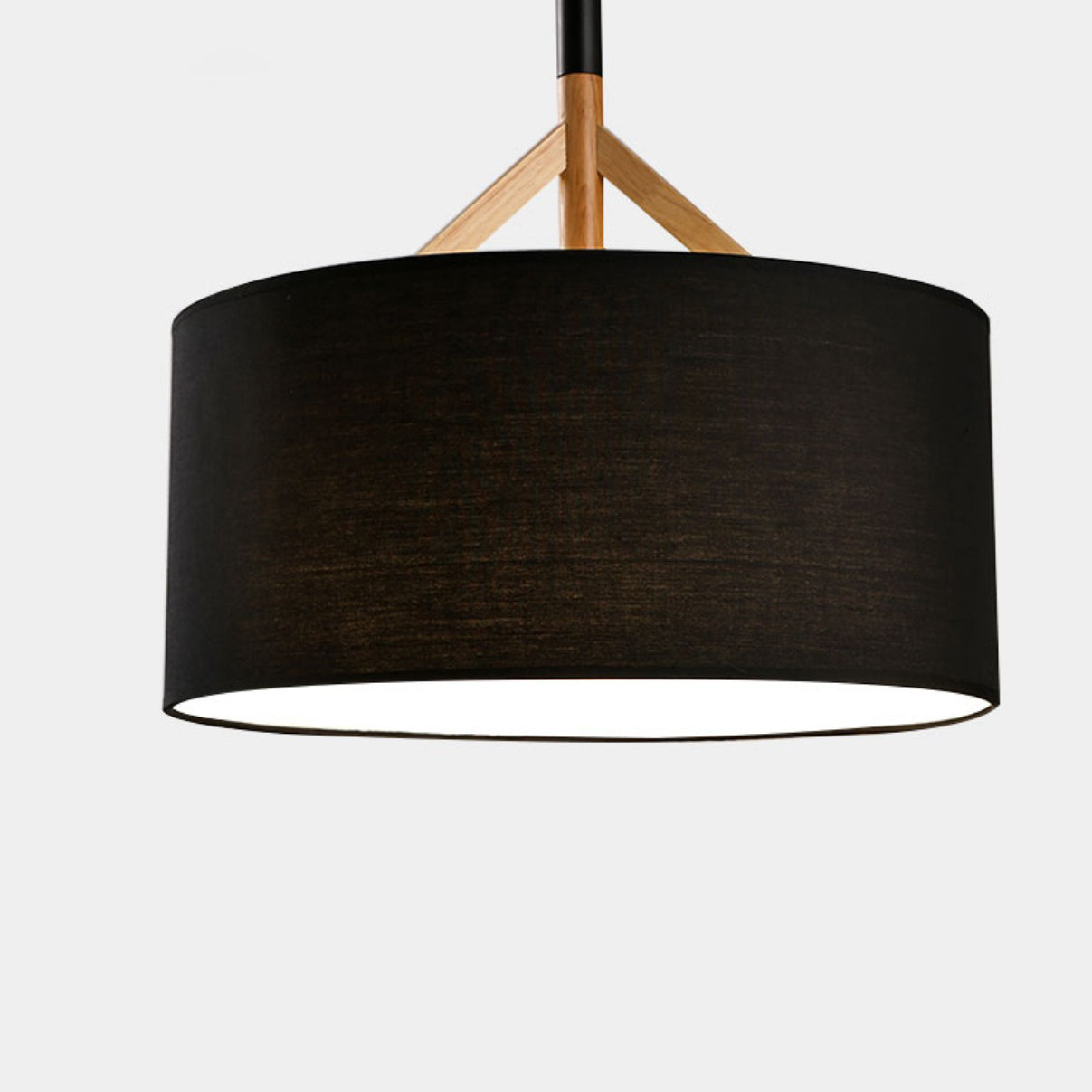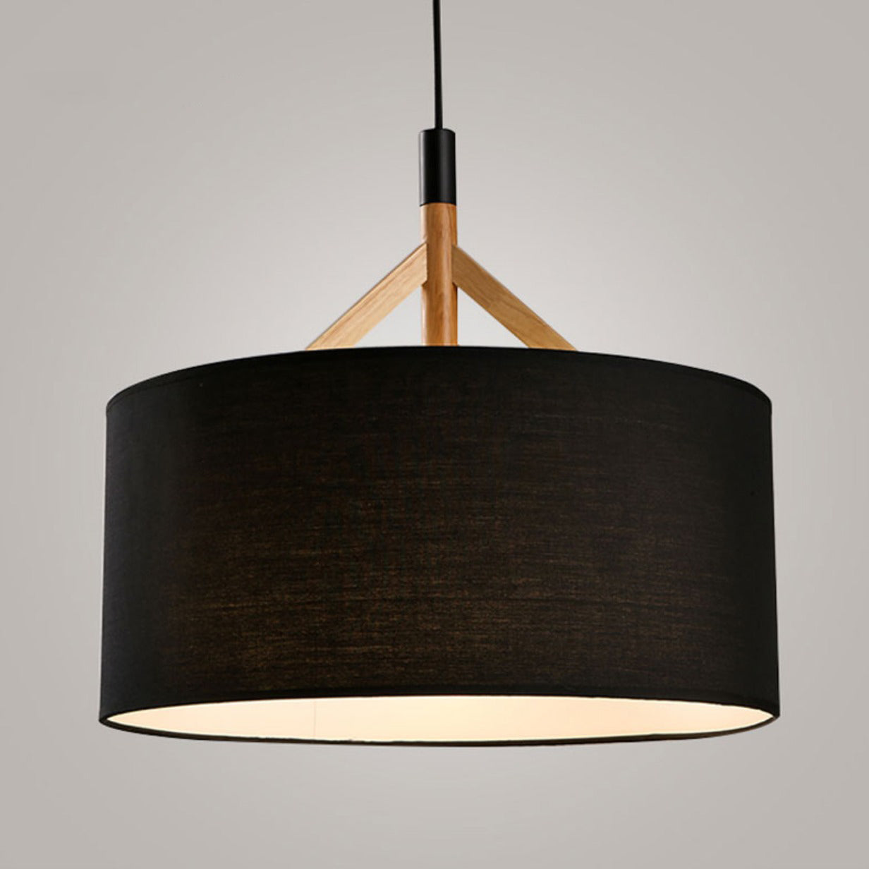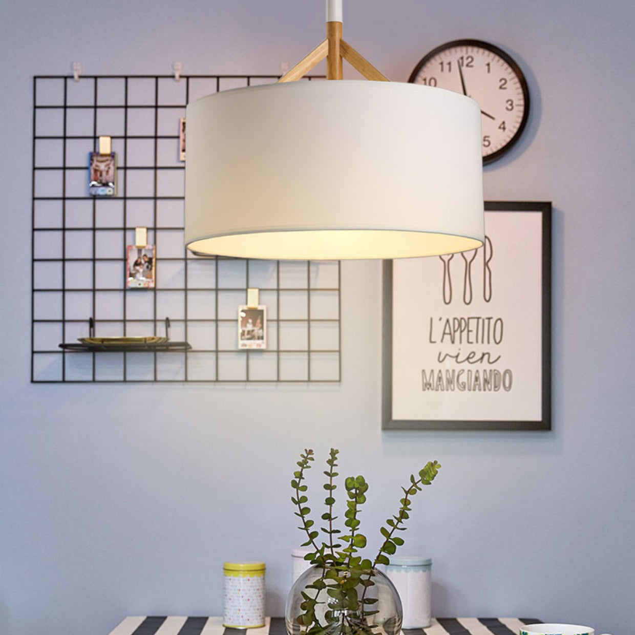 モダンでミニマリストなファブリックと木製メタルのラウンドシリンダー1灯ペンダントライト。寝室やリビングルームに最適です。