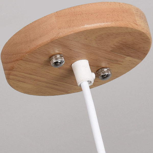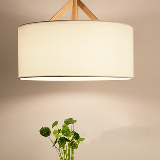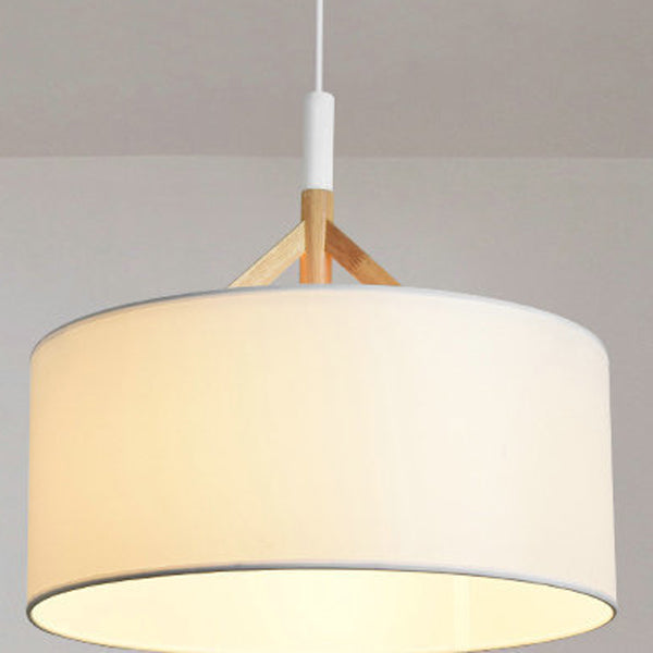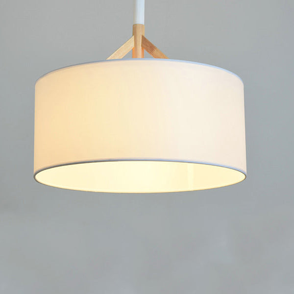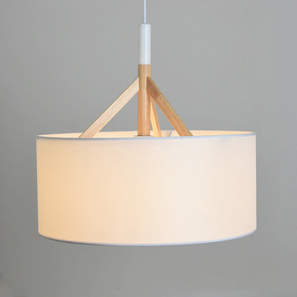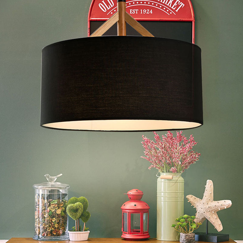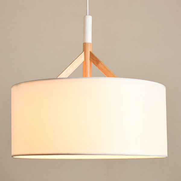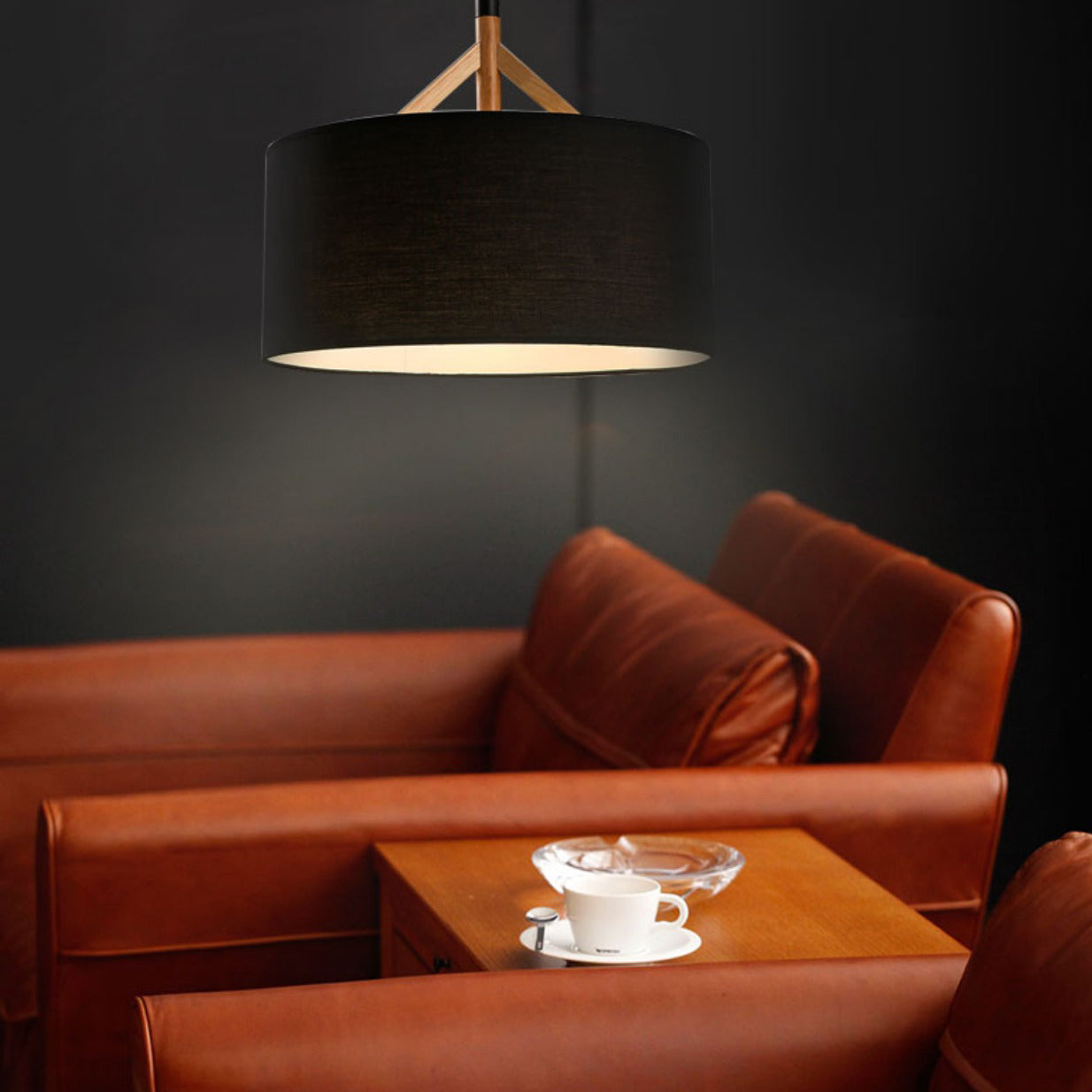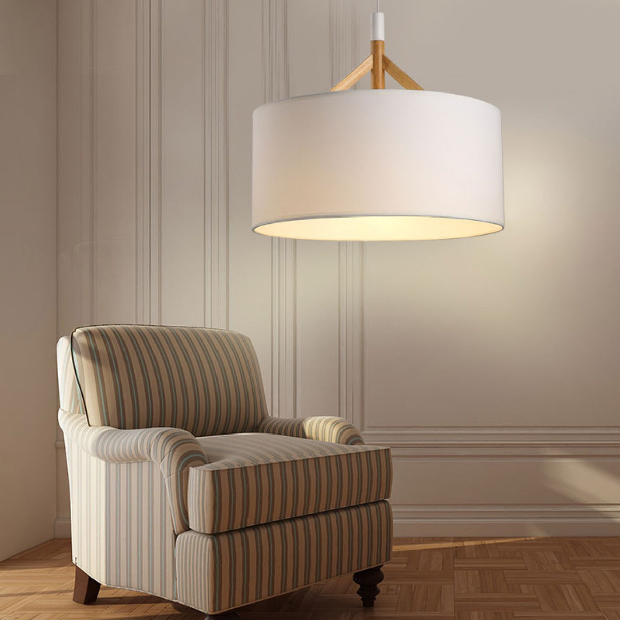モダンでミニマリストなファブリックと木製メタルのラウンドシリンダー1灯ペンダントライト。寝室やリビングルームに最適です。