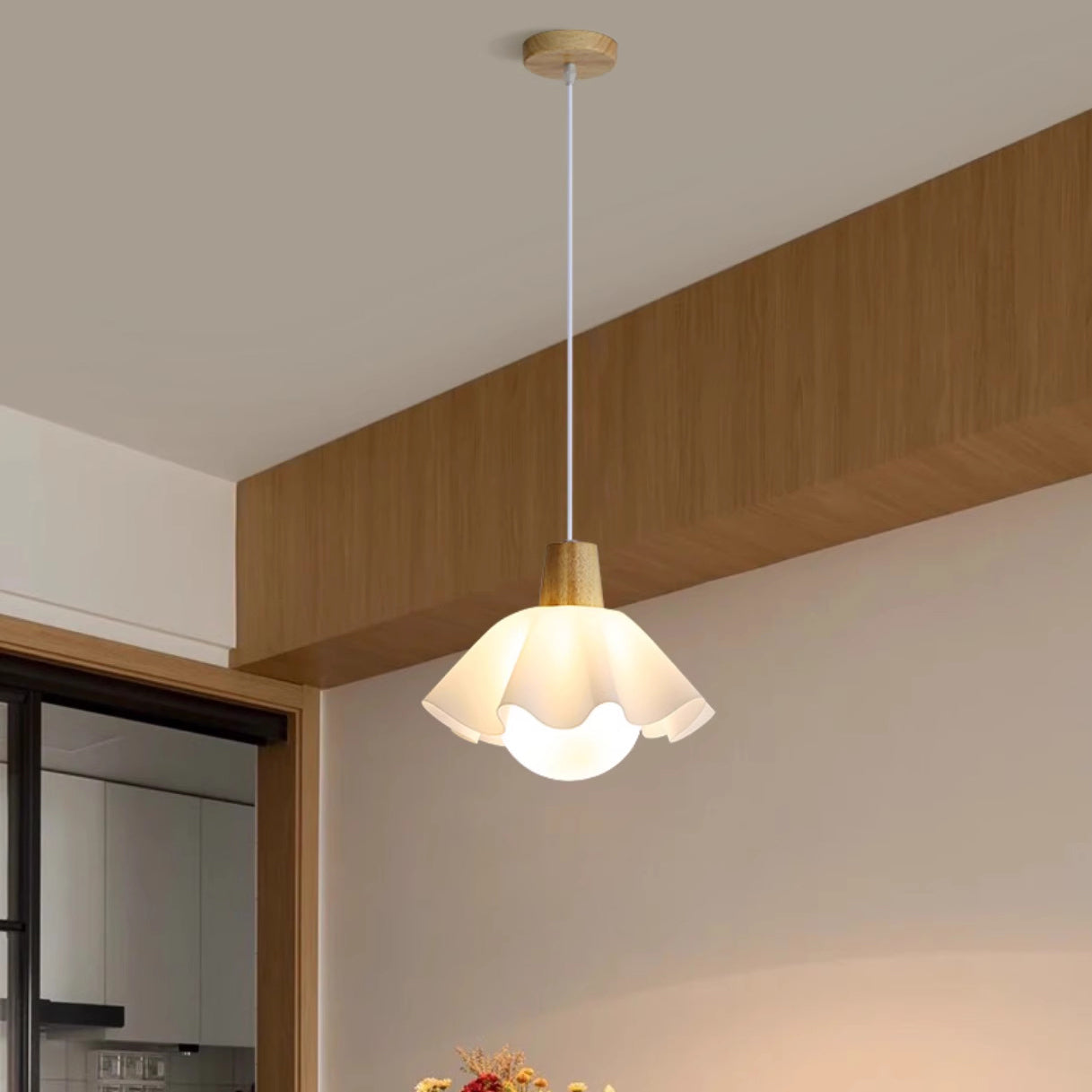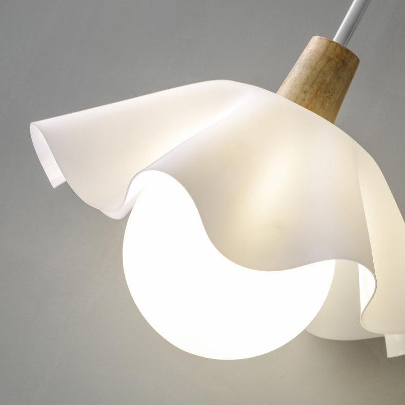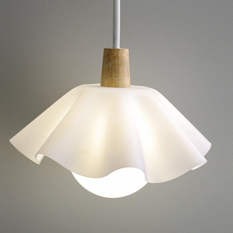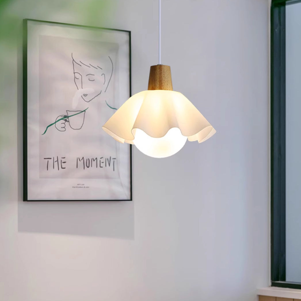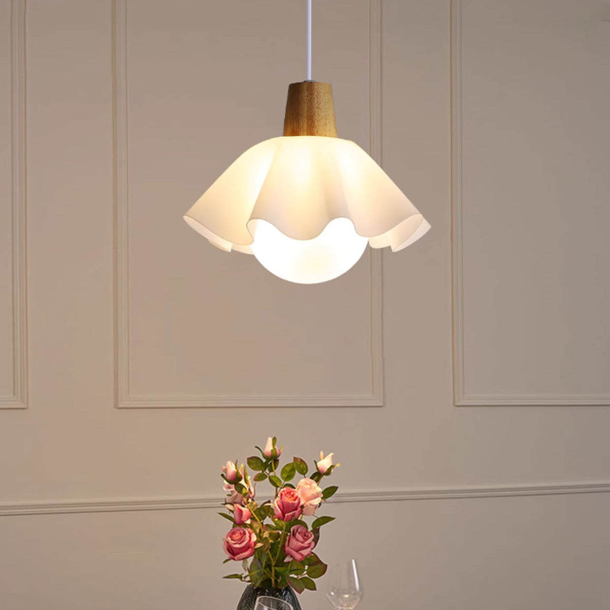 モダンミニマリストフローラルグローブ木製アクリルガラスシェード1ライトペンダントライトリビングルーム用
