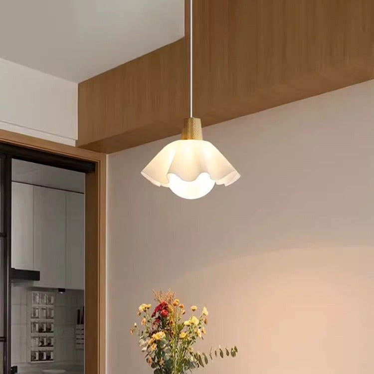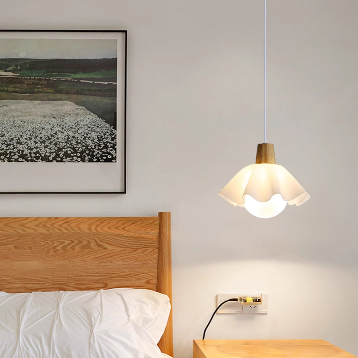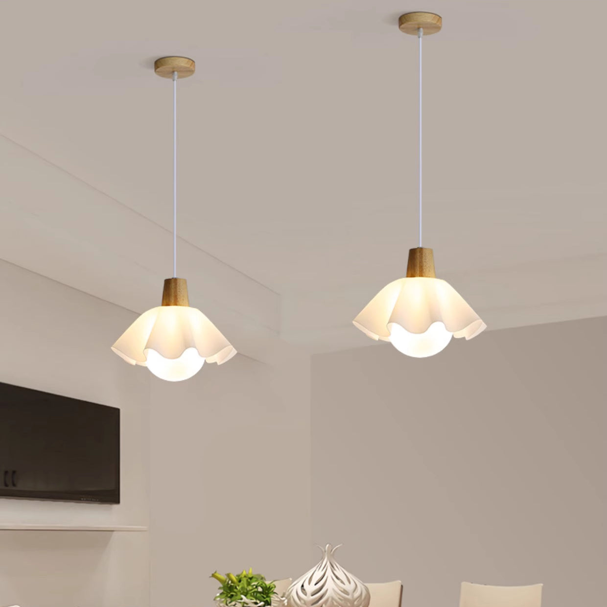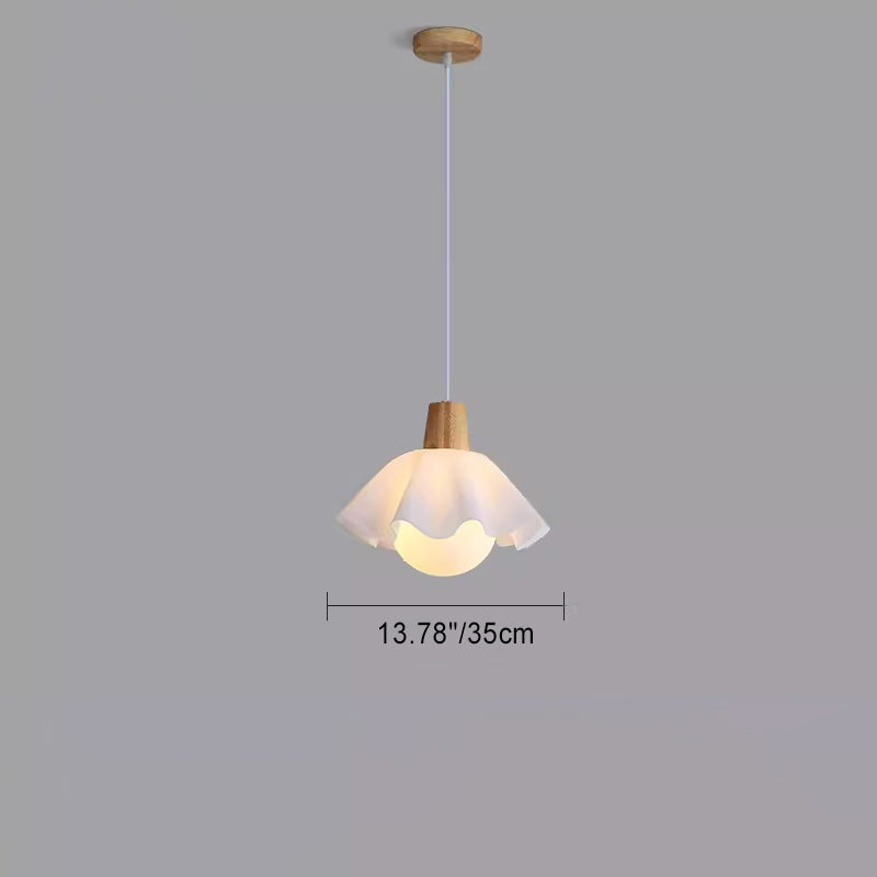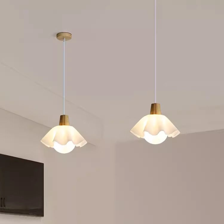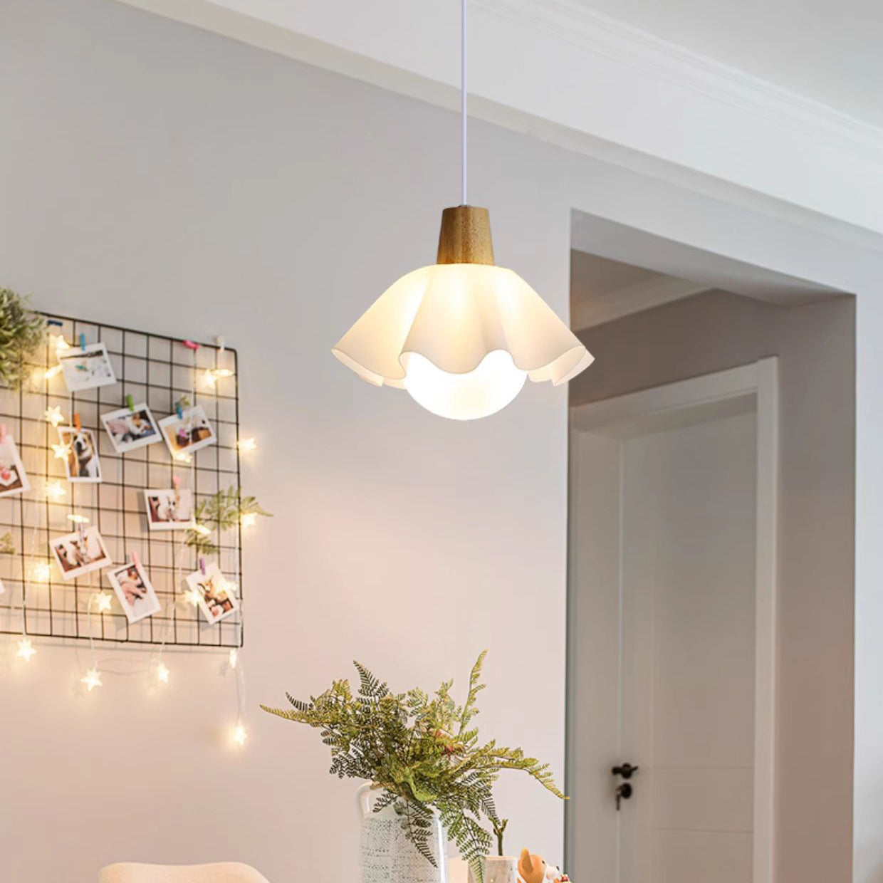 モダンミニマリストフローラルグローブ木製アクリルガラスシェード1ライトペンダントライトリビングルーム用