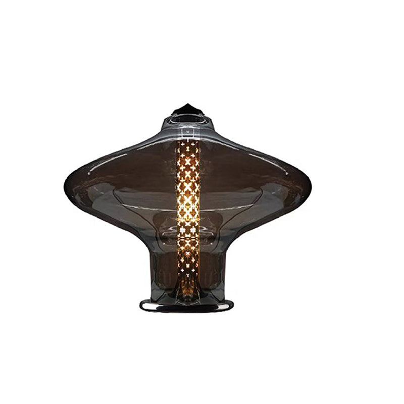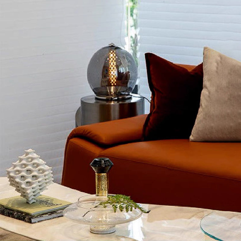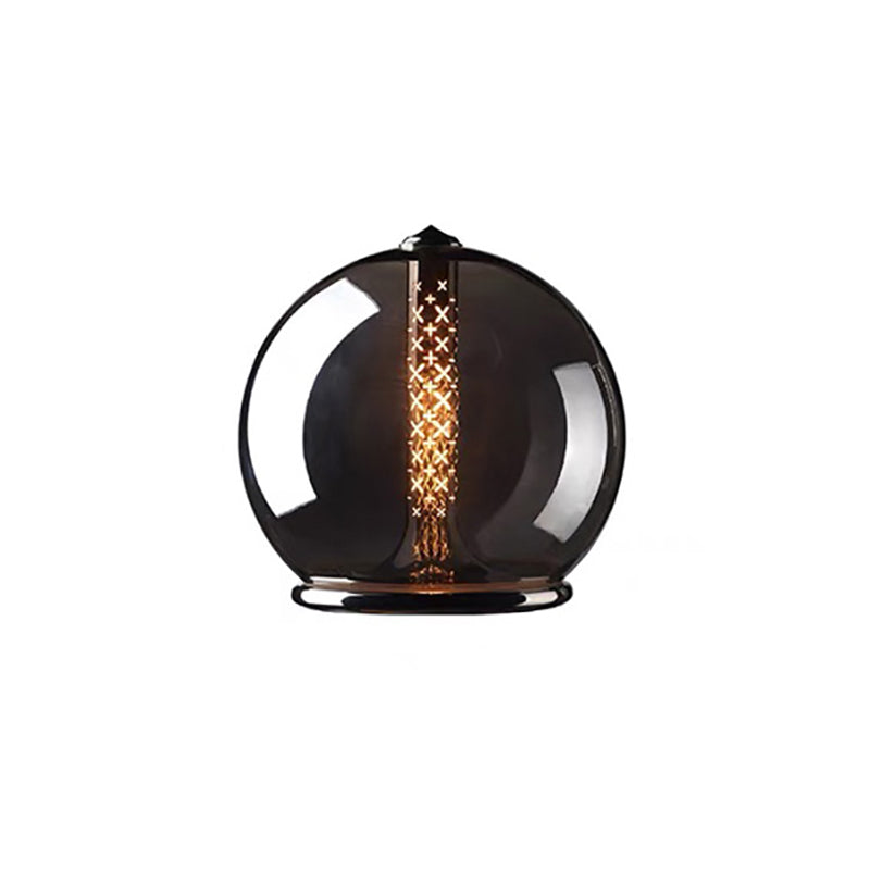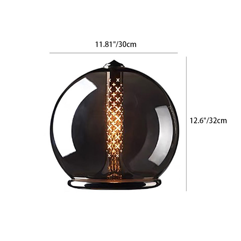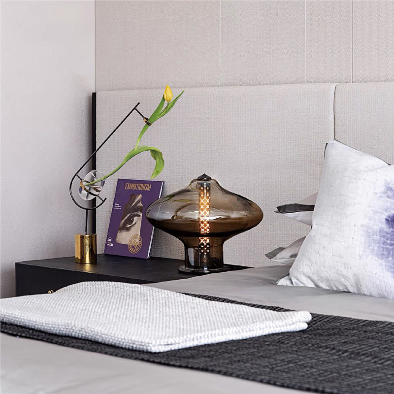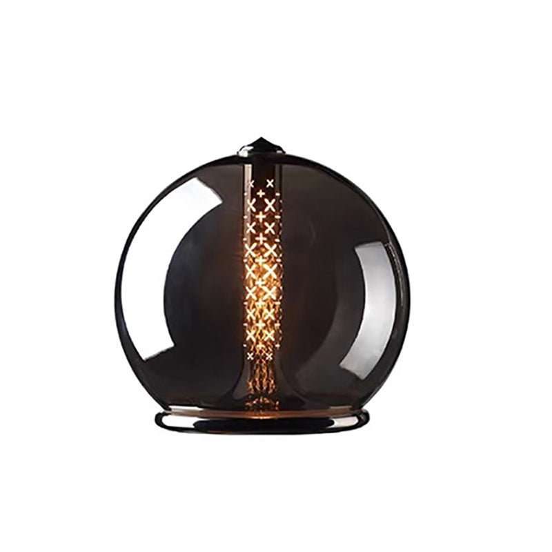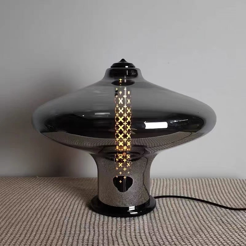 Modern Minimalist Geometric Smokey Gray Glass Hardware LED Table Lamp For Home Office