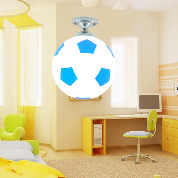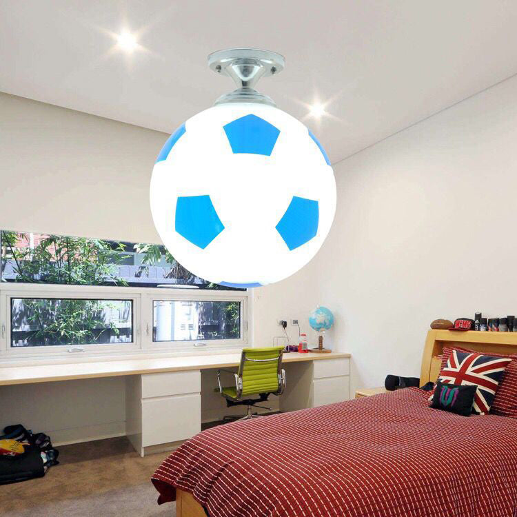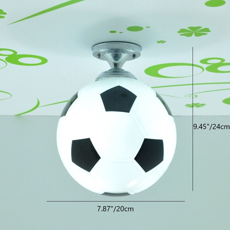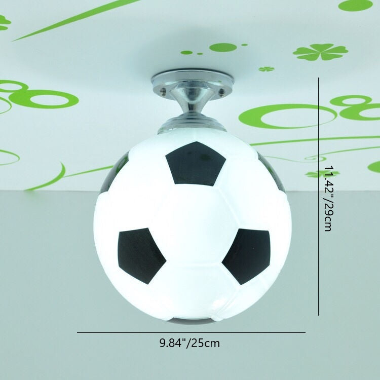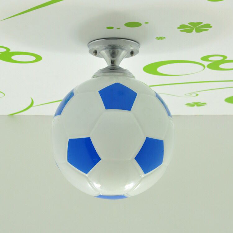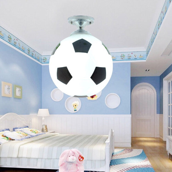 モダンミニマリストキッズラウンドフットボールディスクベースアイアンガラス1ライトセミフラッシュマウントシーリングライト寝室用