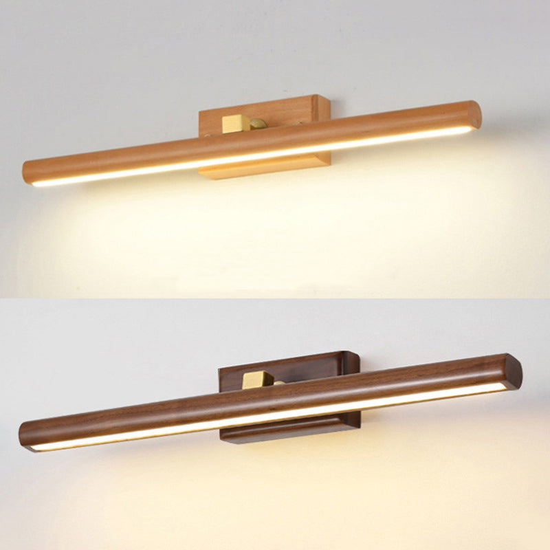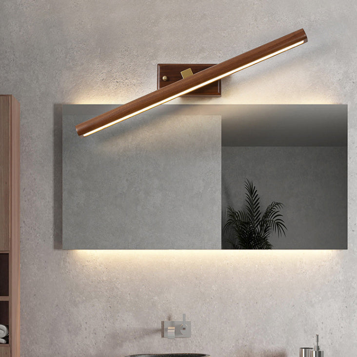 モダンでミニマリストな直線型シリンダー木製銅製LED壁取り付け用燭台ランプ(浴室用)