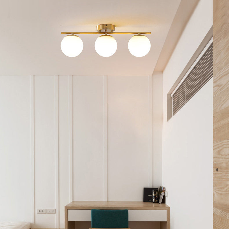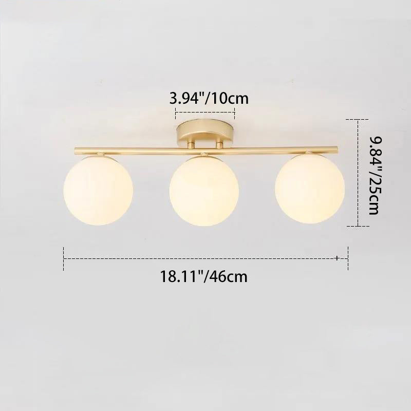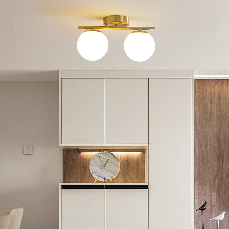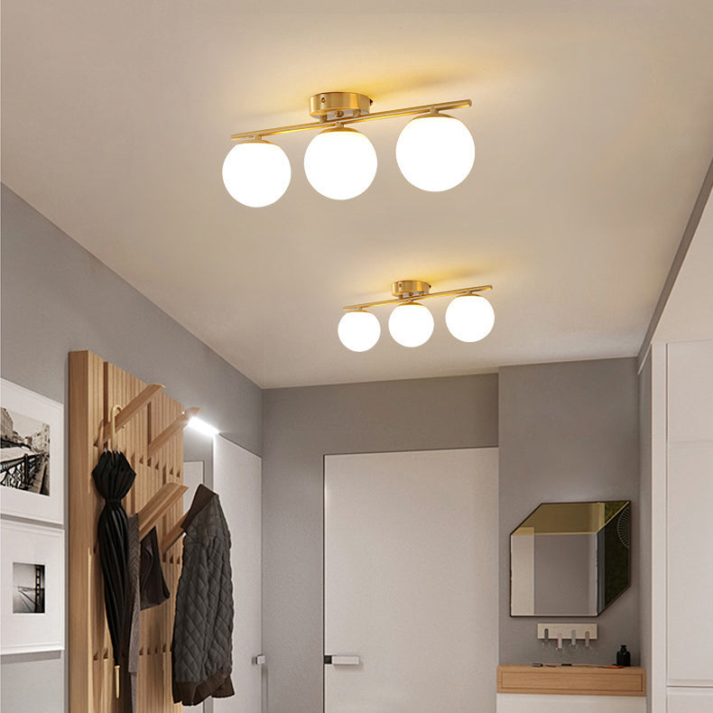 モダンでミニマリストなロングボール型アイアンガラス2/3ライトセミフラッシュマウント天井照明(廊下用)