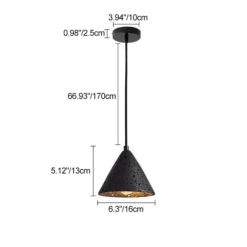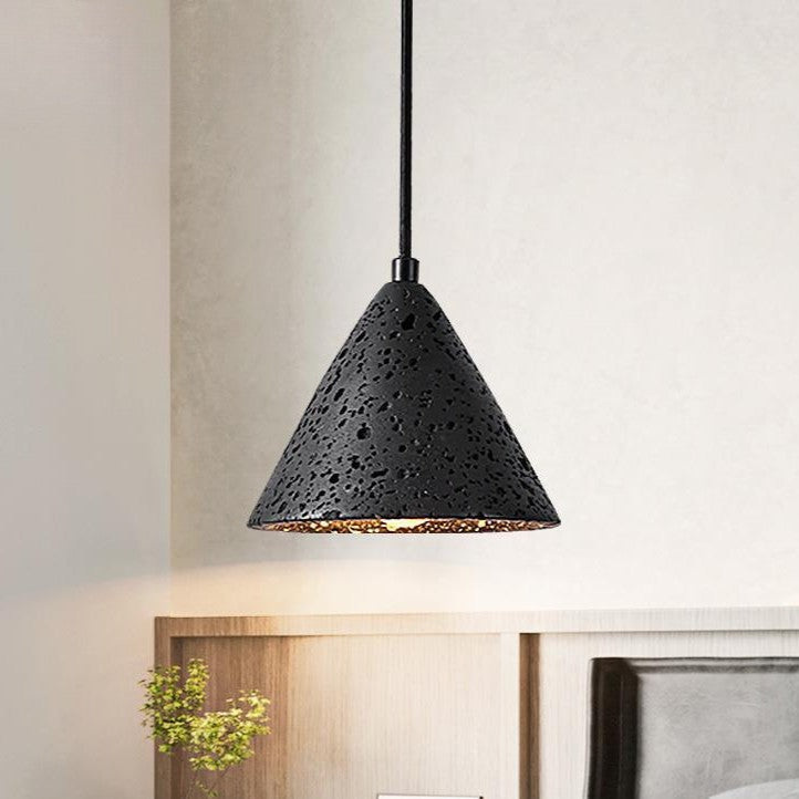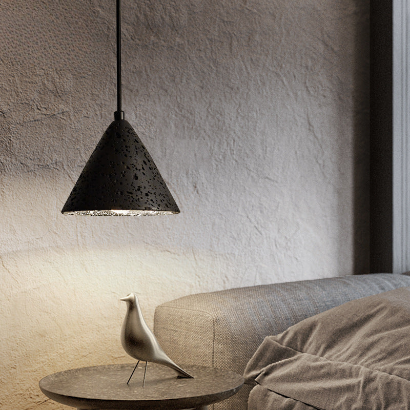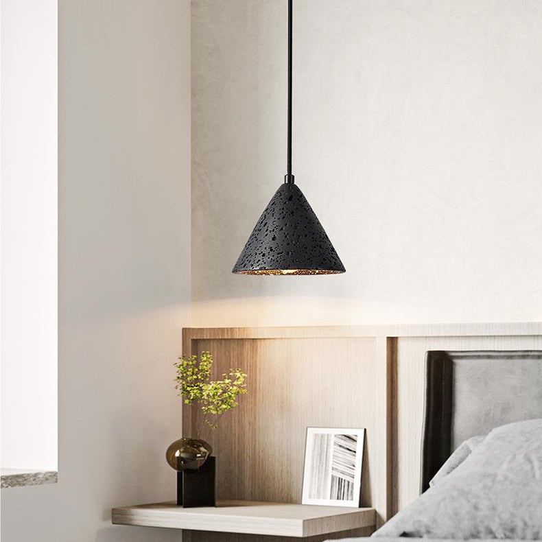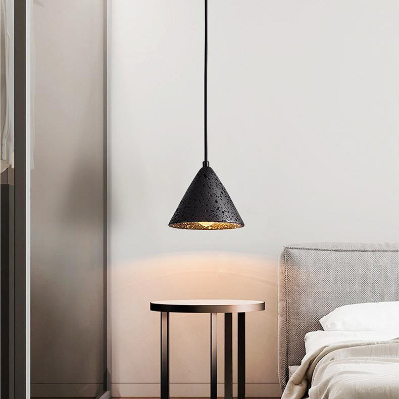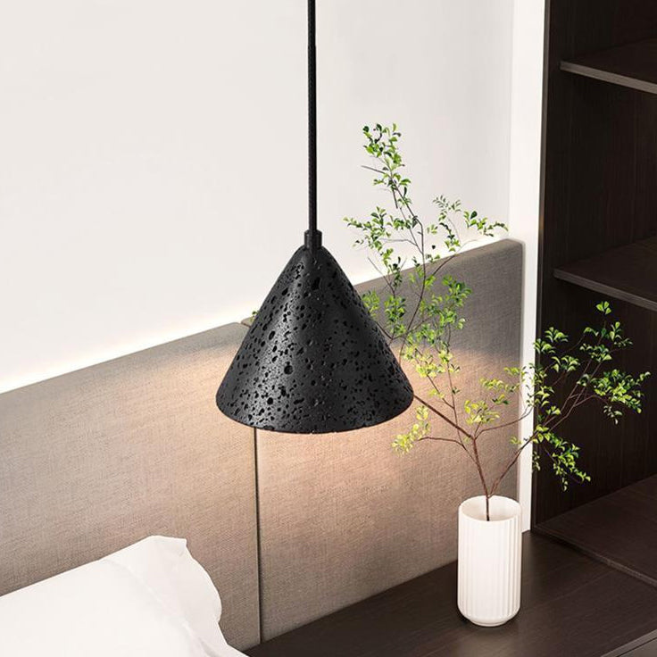 モダンミニマリストナチュラルブラックトラバーチンコーン1ライトペンダントライト寝室用