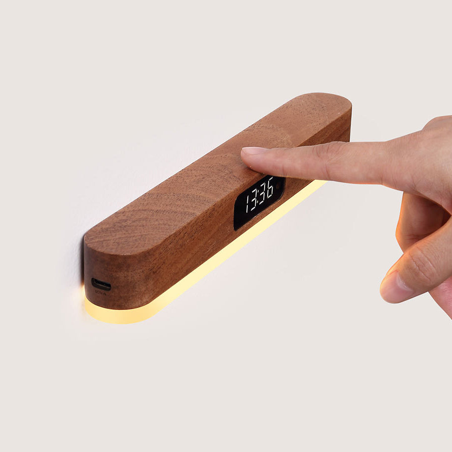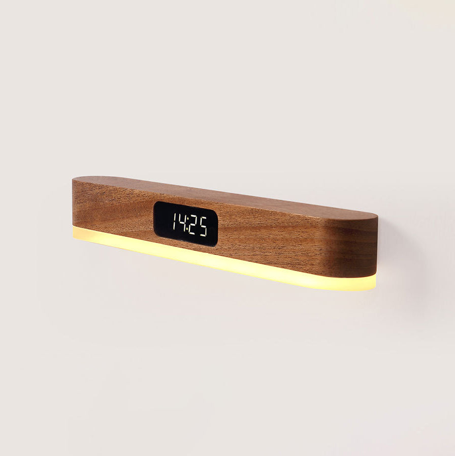 モダンでミニマリストな充電式長方形時計、無垢材、金属、プラスチック、LED壁取り付け用燭台ランプ、寝室用