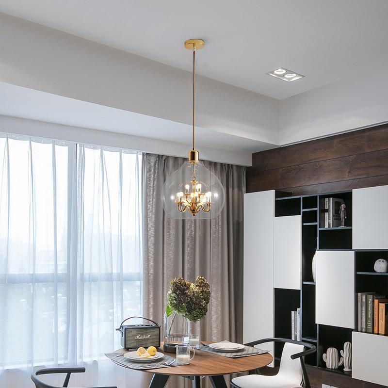 モダンでミニマリストなラウンドボールドームガラスアイアン9灯ペンダントライト(リビングルーム用)