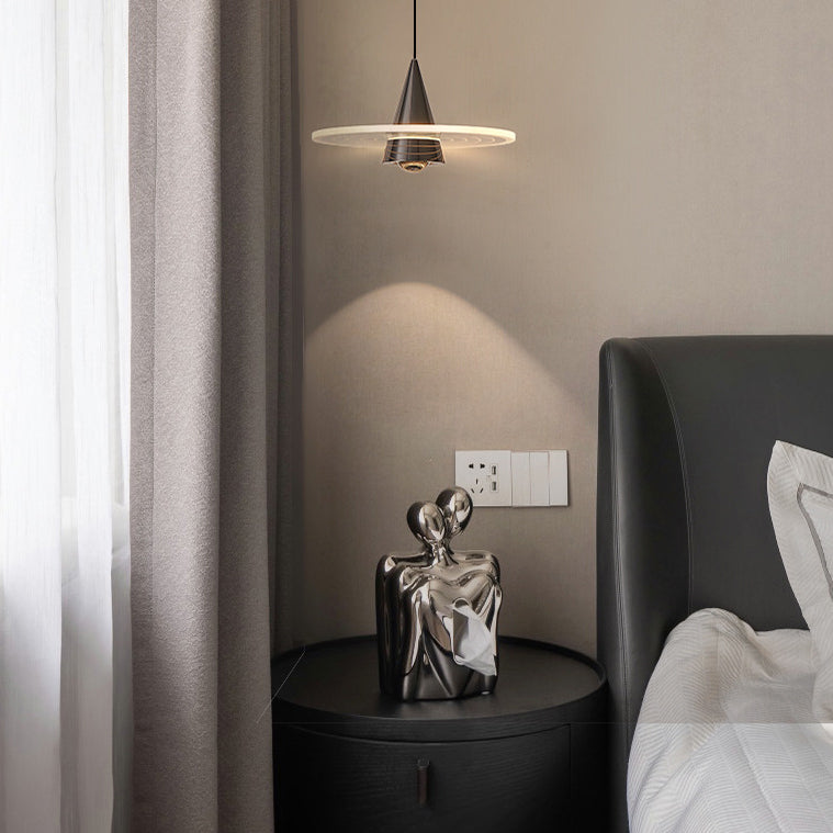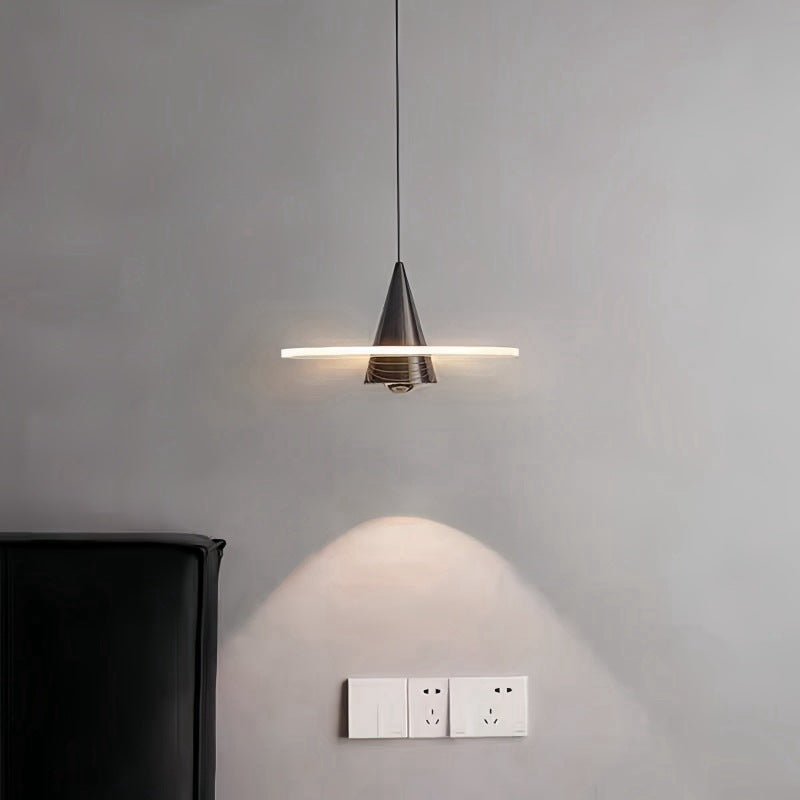 モダンでミニマリストな三角形のリングシリンダーハードウェアアクリルLEDペンダントライト寝室用