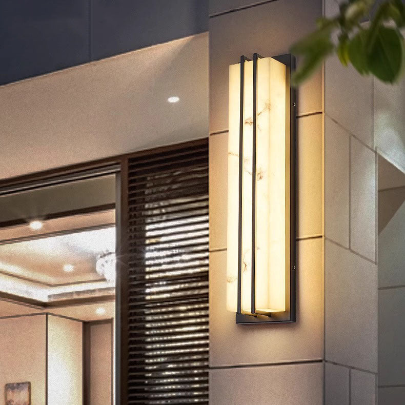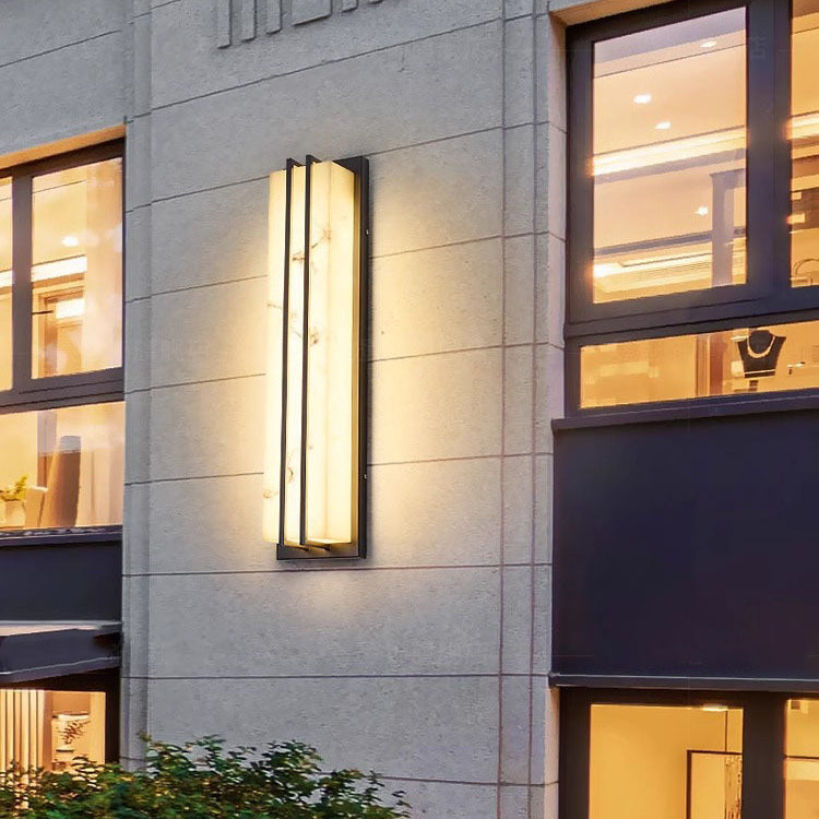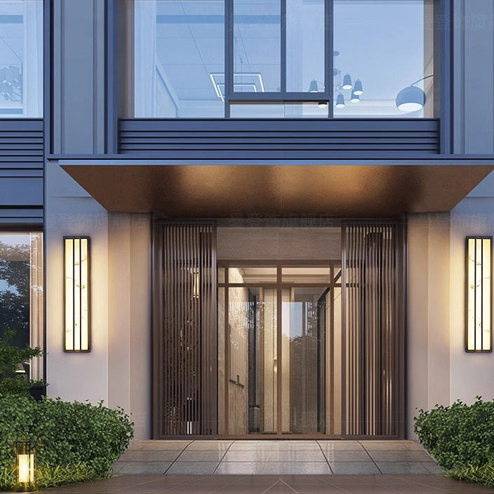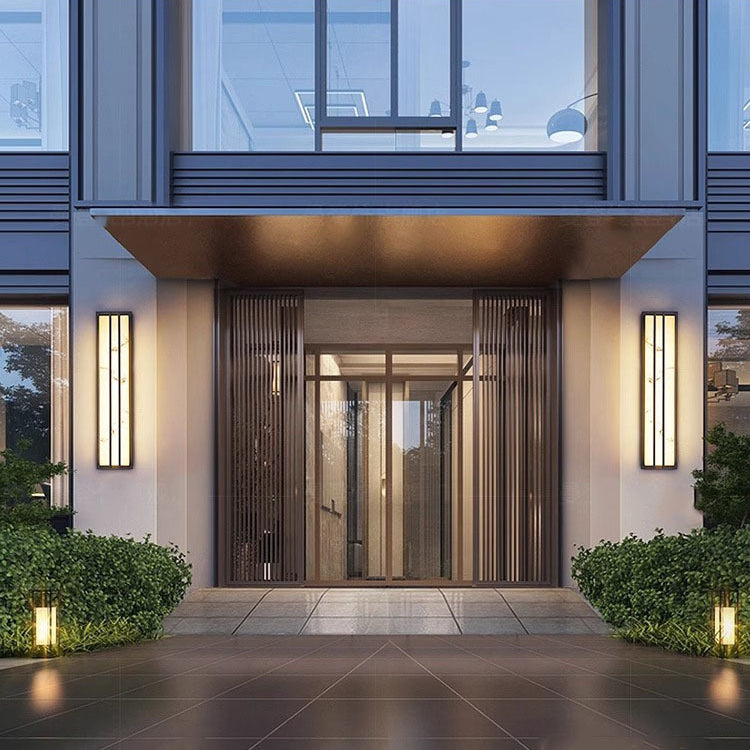 モダンミニマリスト防水長方形ロングステンレススチール樹脂LED屋外壁取り付け用燭台ランプ屋外パティオ用