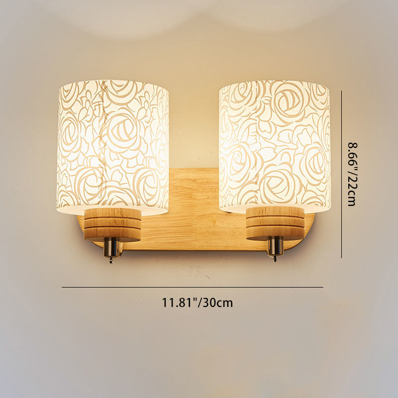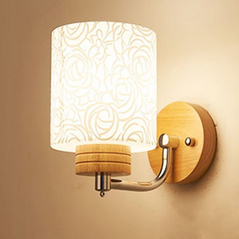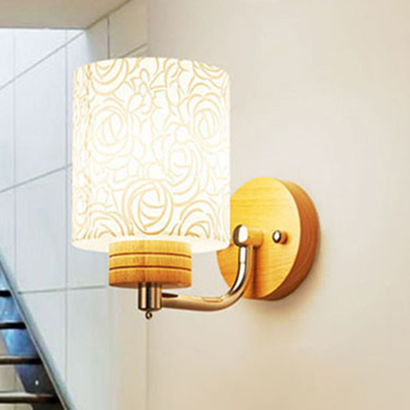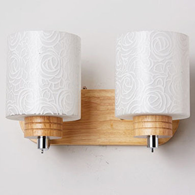 モダンでシンプルなシリンダーフラワーパターンガラスランプシェード無垢材1/2ライト廊下用壁取り付け用ランプ