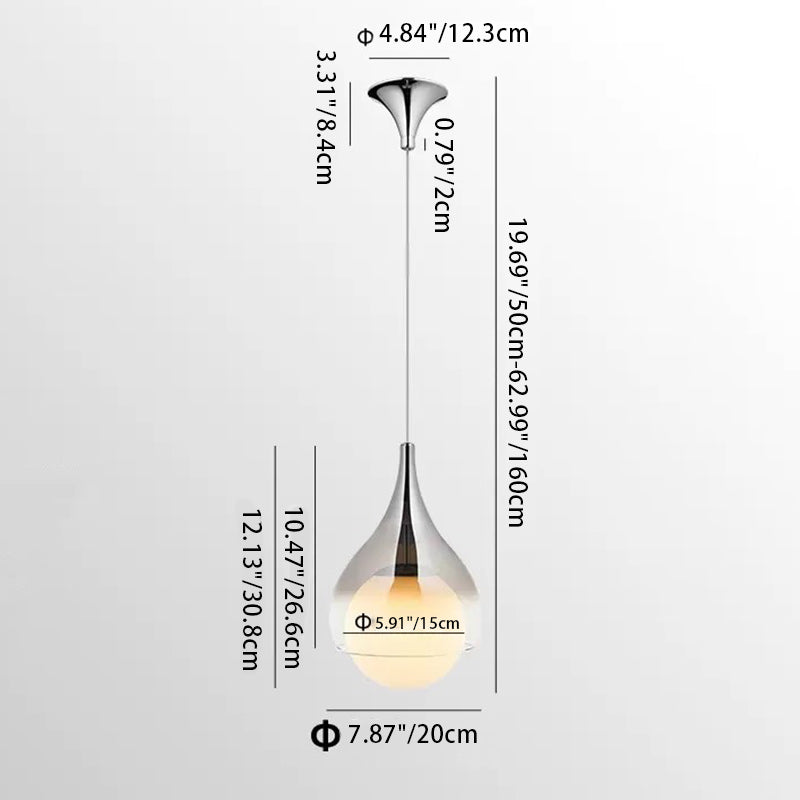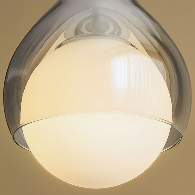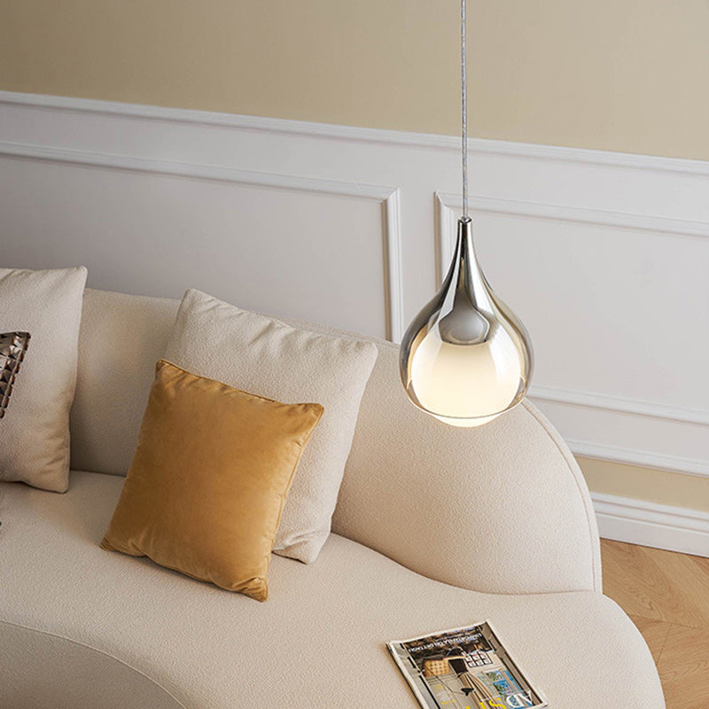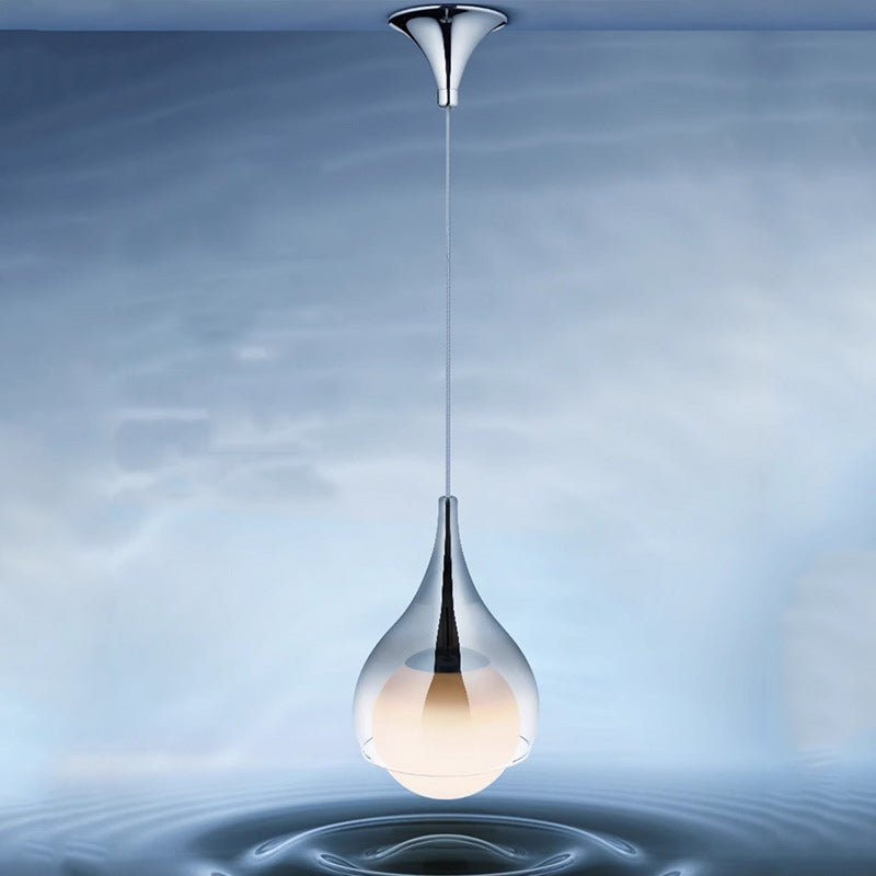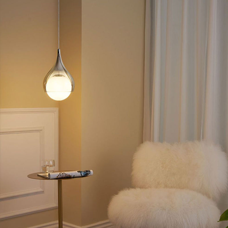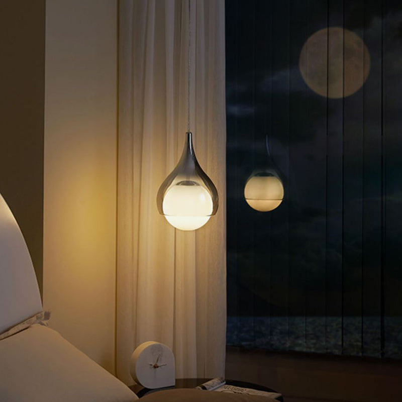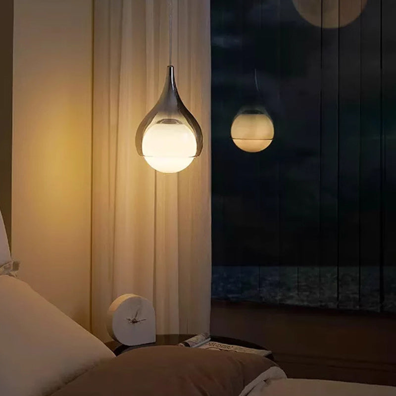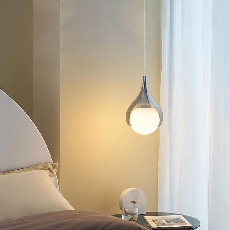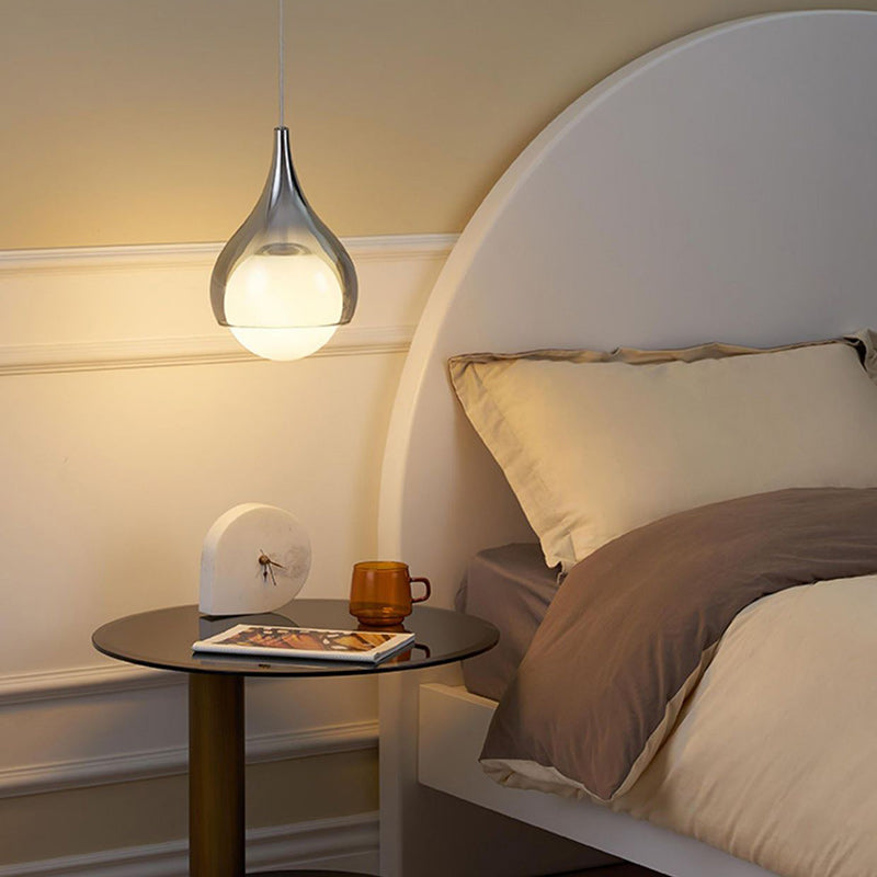 モダンでシンプルなガラス製アイアンボールドロップ型1灯ペンダントライト(ベッドサイド用)