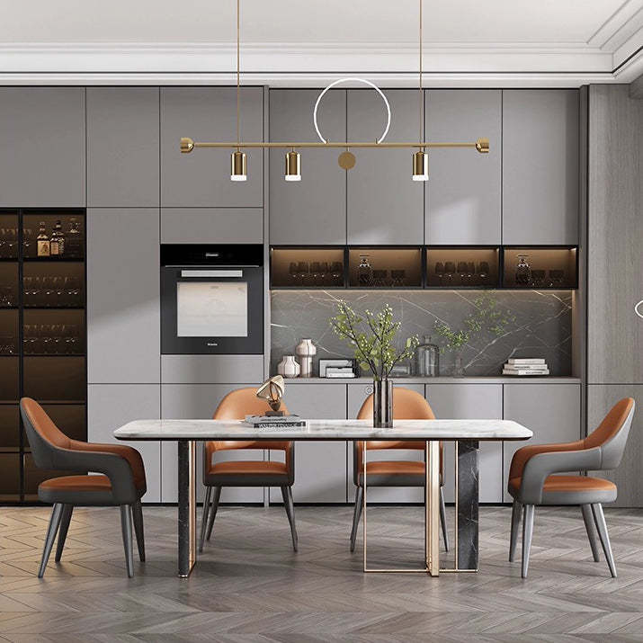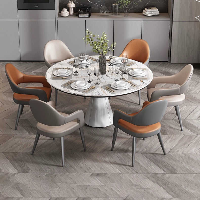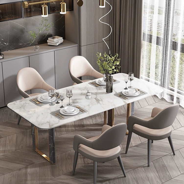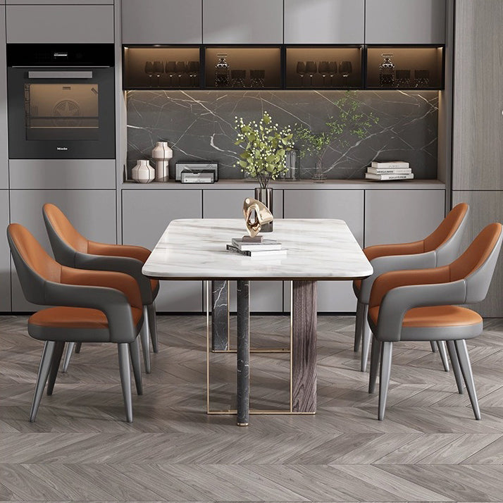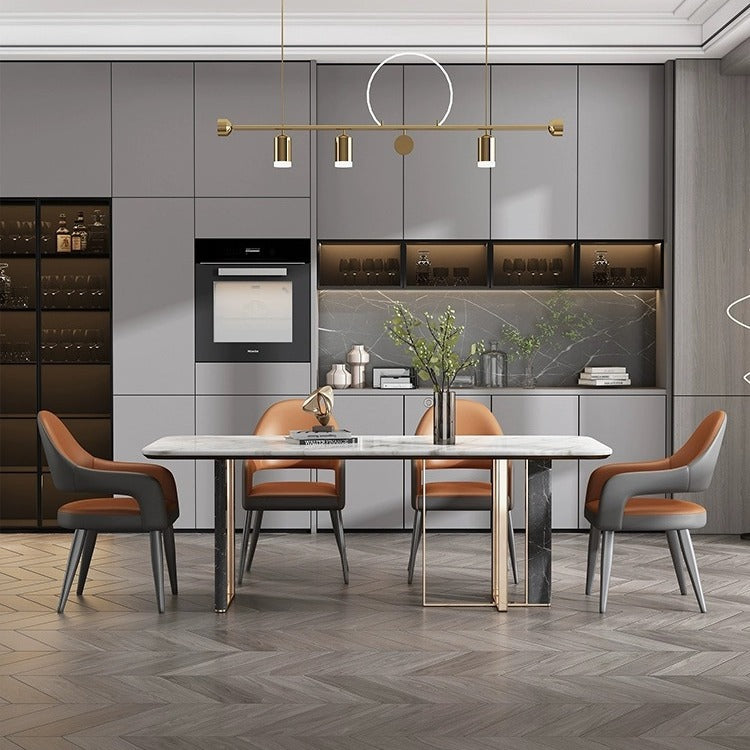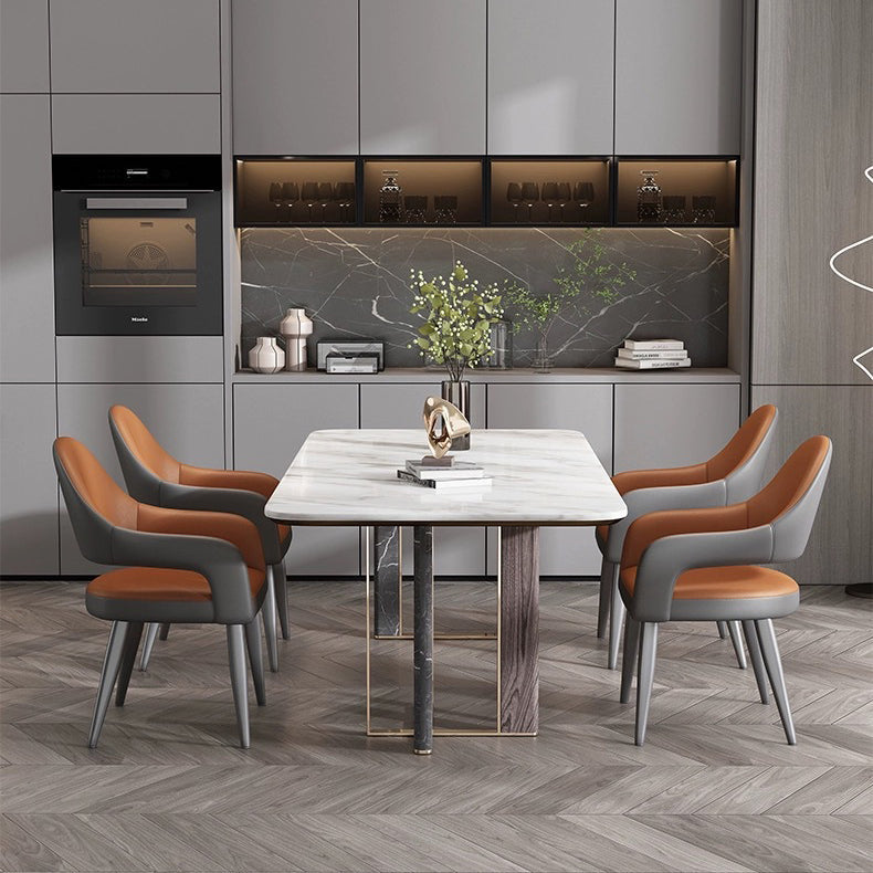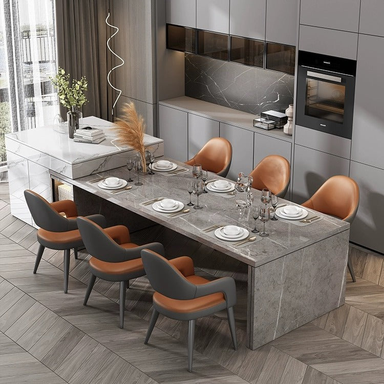 Modern Simplicity Iron PU Leather Sponge Square Elliptical Dining Chair Backrest Armrest For Dining Room