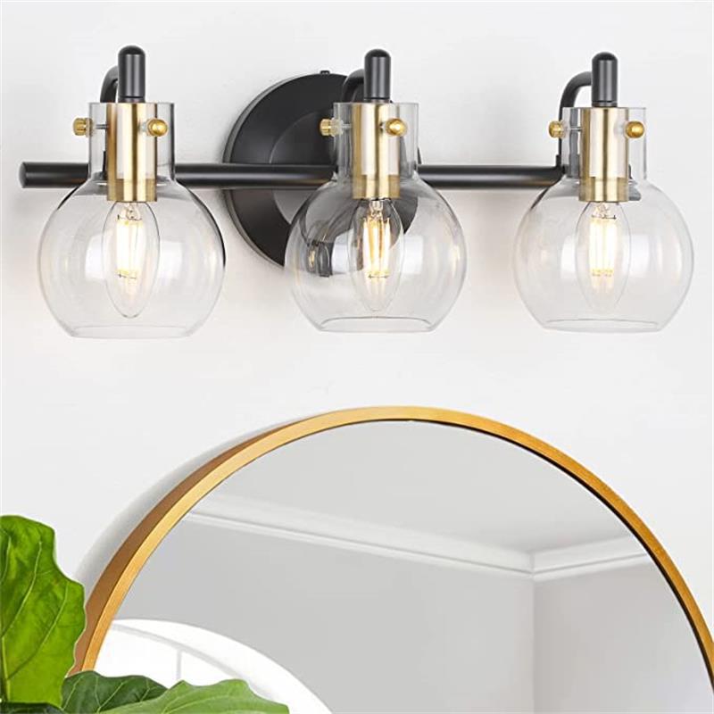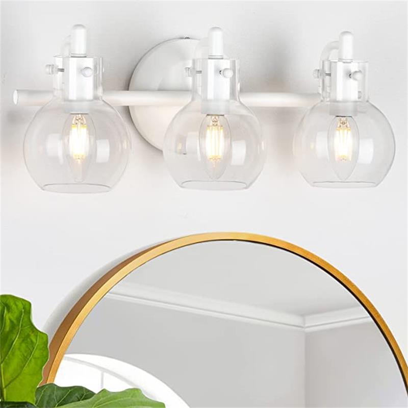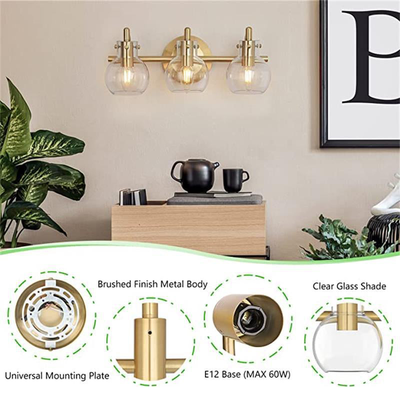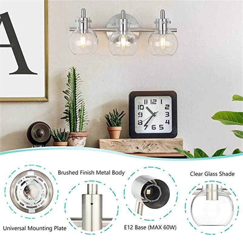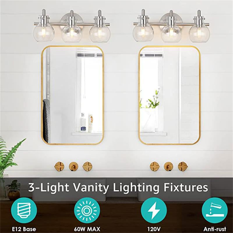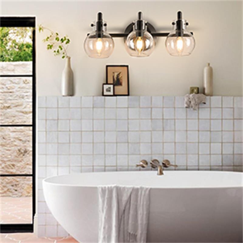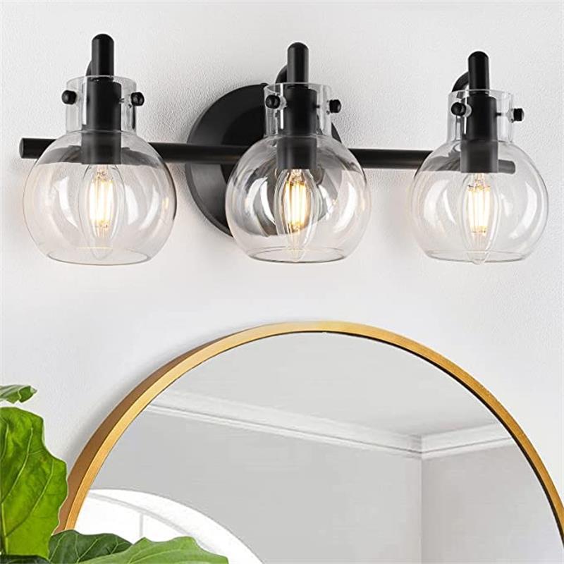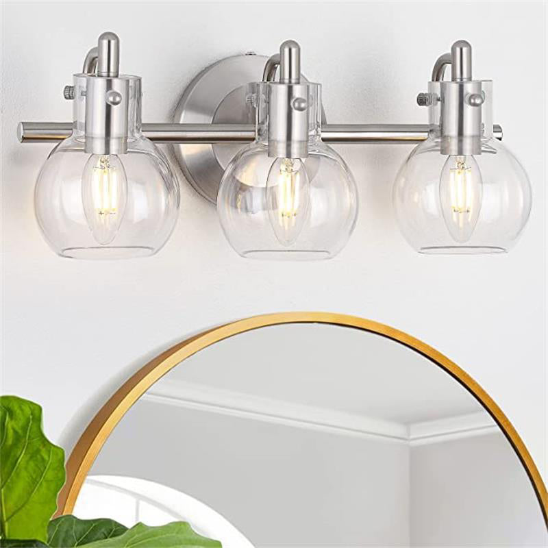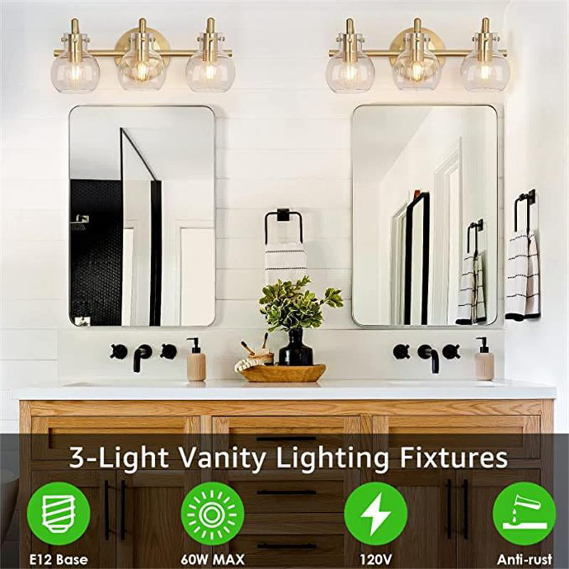 モダンでシンプルなメタルガラスボール3灯壁取り付け用燭台ランプ、バスルーム用化粧台ライト