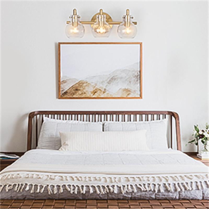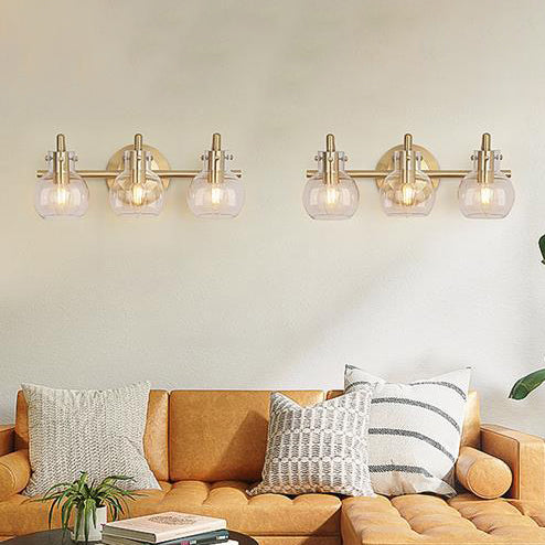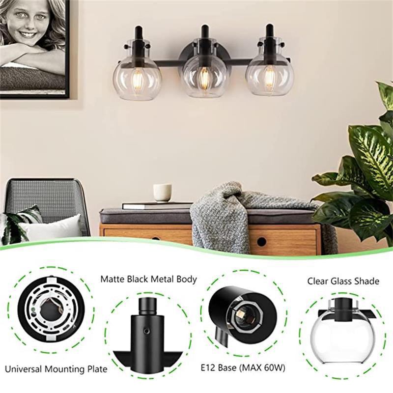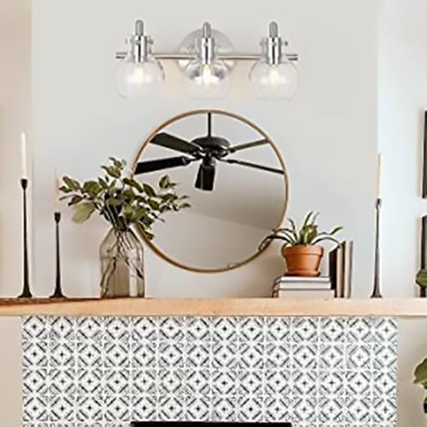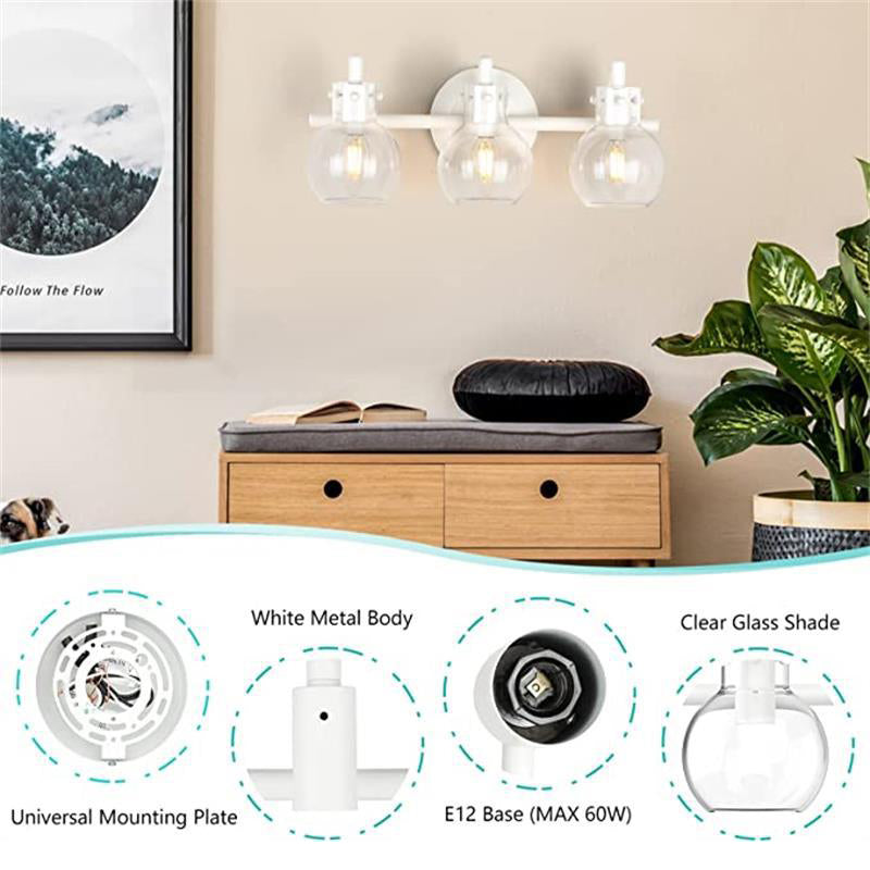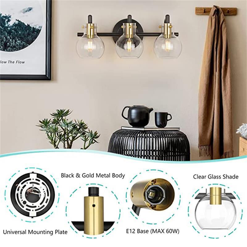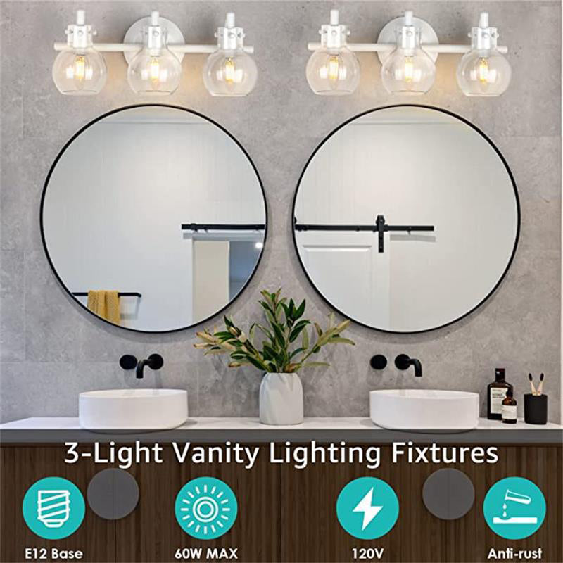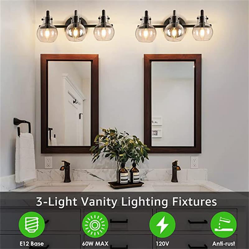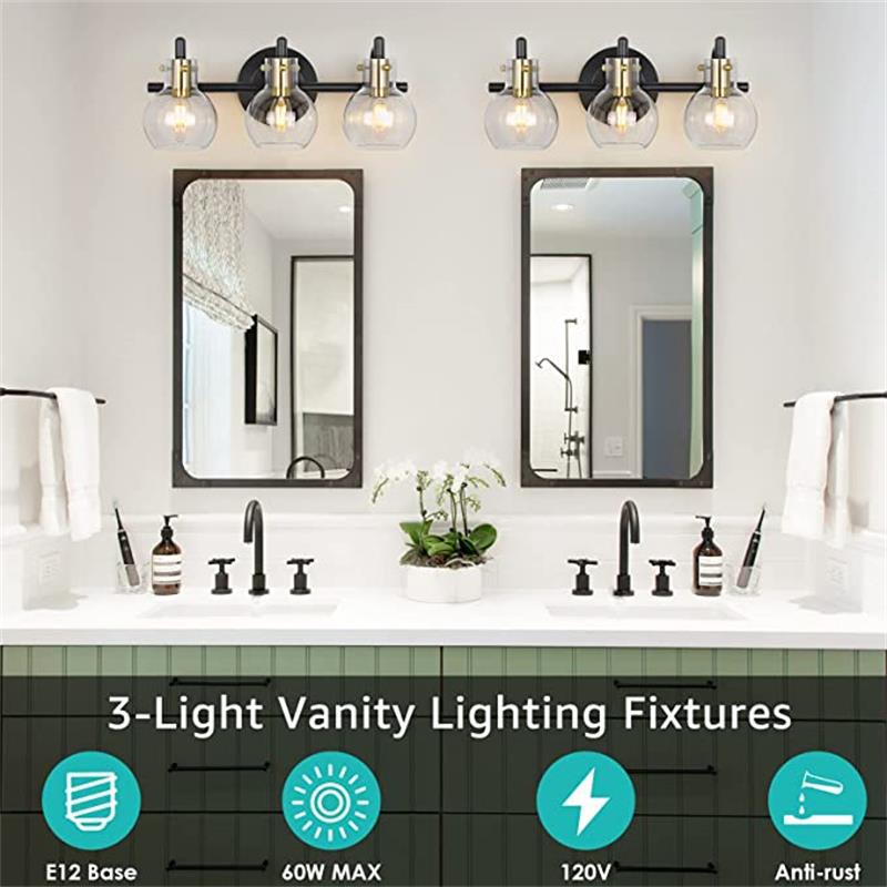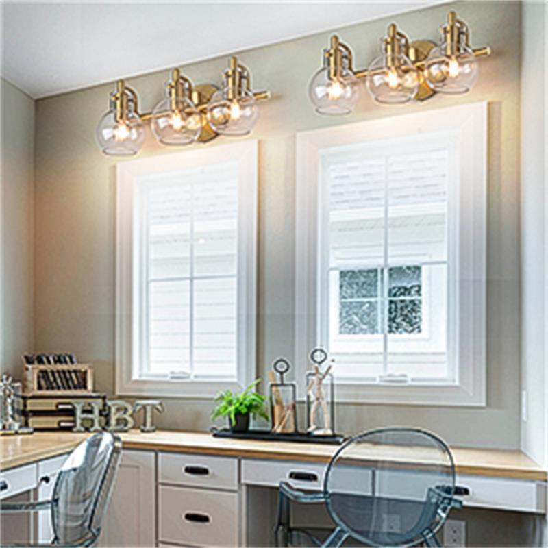 モダンでシンプルなメタルガラスボール3灯壁取り付け用燭台ランプ、バスルーム用化粧台ライト