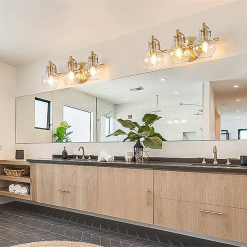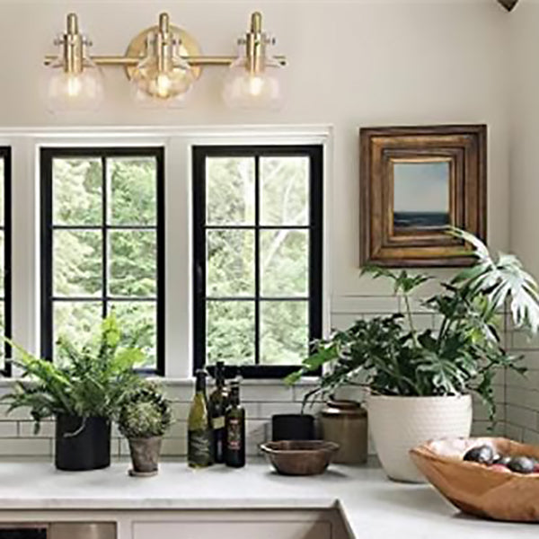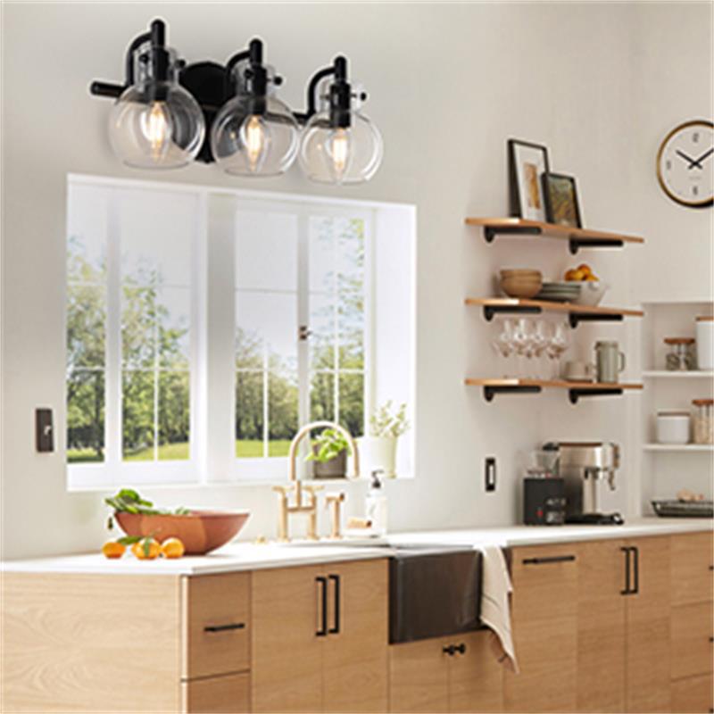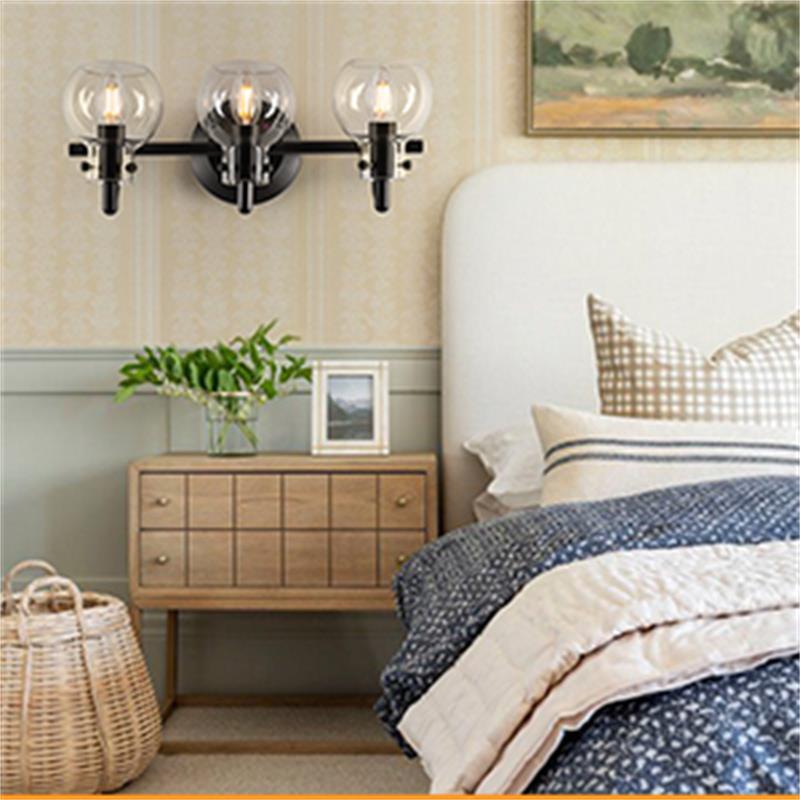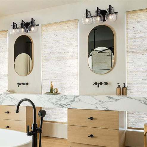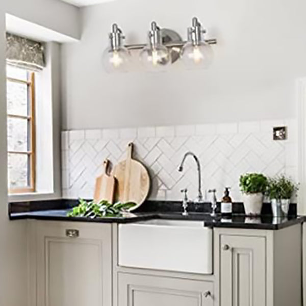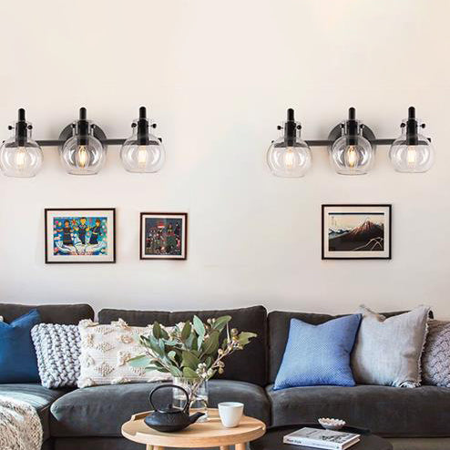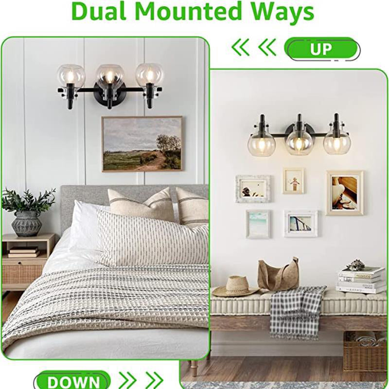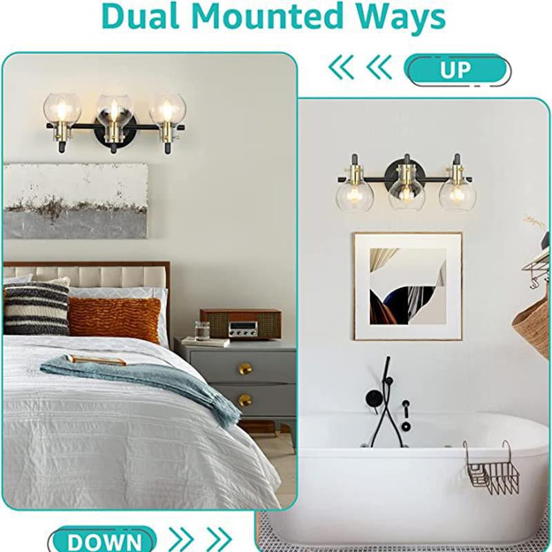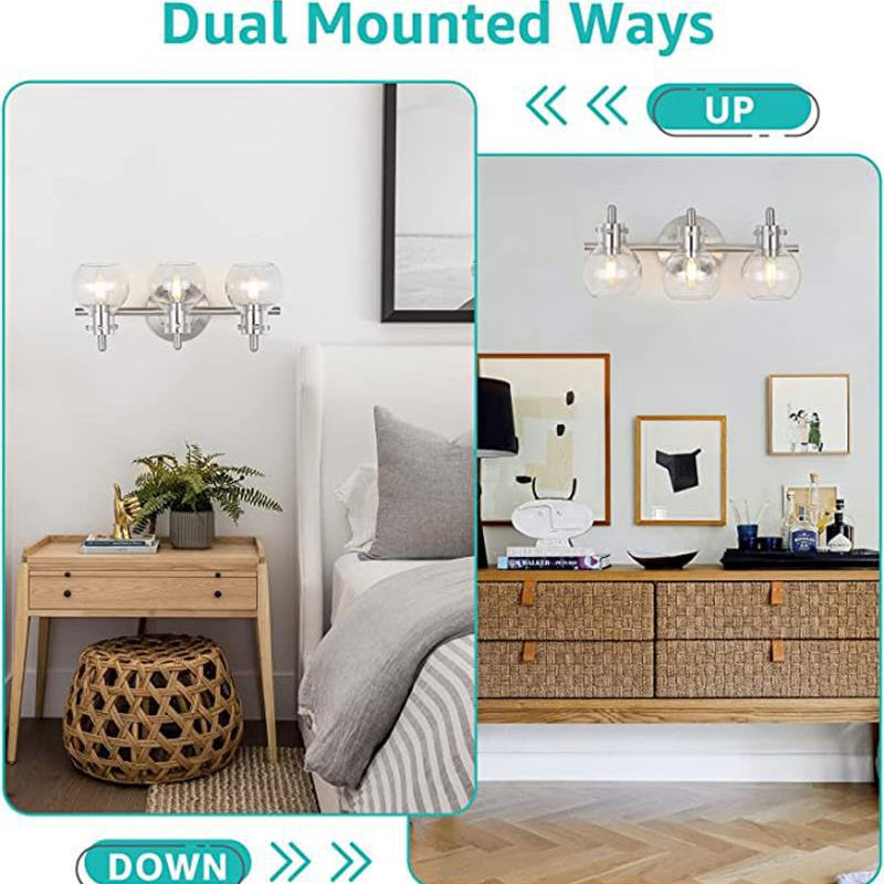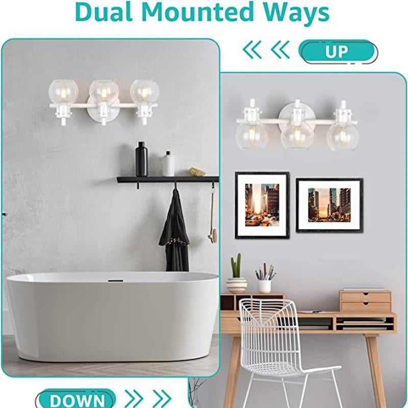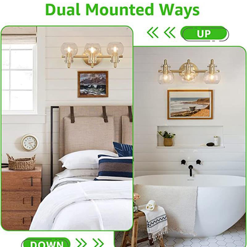 モダンでシンプルなメタルガラスボール3灯壁取り付け用燭台ランプ、バスルーム用化粧台ライト