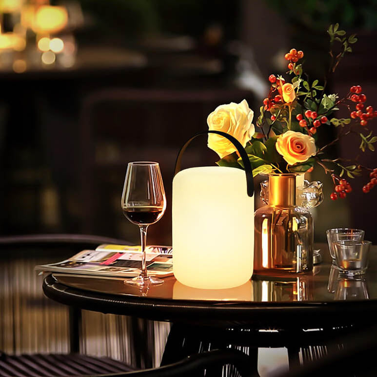 モダンでシンプルなプラスチック製ラウンドスクエアハンドLEDテーブルランプ(屋外パティオ用)