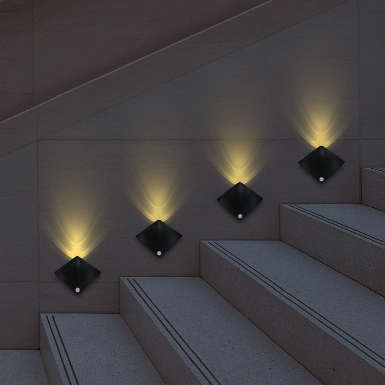 モダンでシンプルな充電式バッテリーモーションセンサーABSマグネット式菱形LED壁取り付け用燭台ランプ(廊下用)