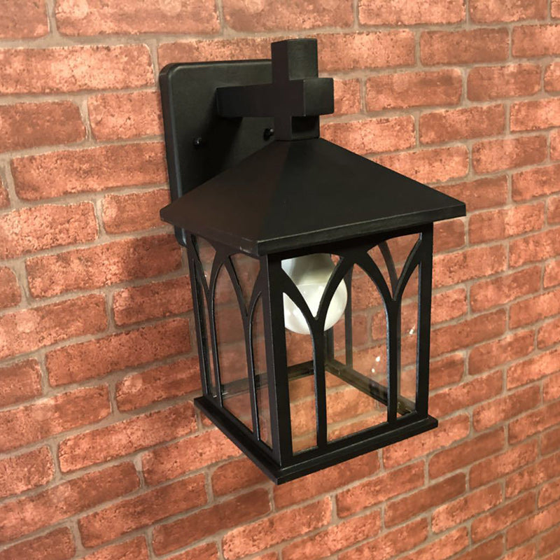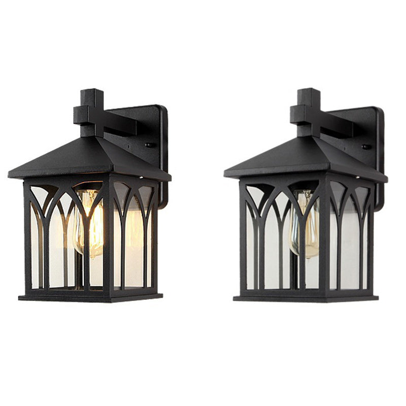 モダンでシンプルな長方形の家の形をしたアルミニウムガラスの1灯壁取り付け用燭台ランプ、屋外パティオ用