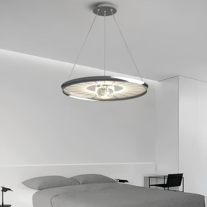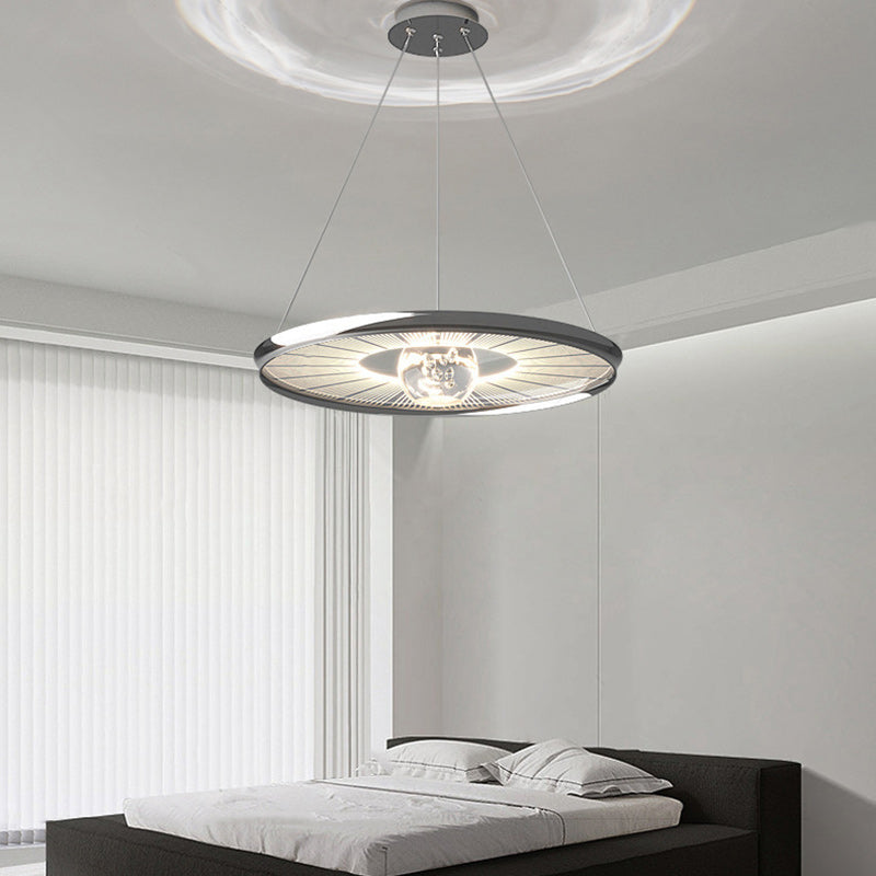 寝室用モダンでシンプルなラウンドアイアンアクリルLEDシャンデリア