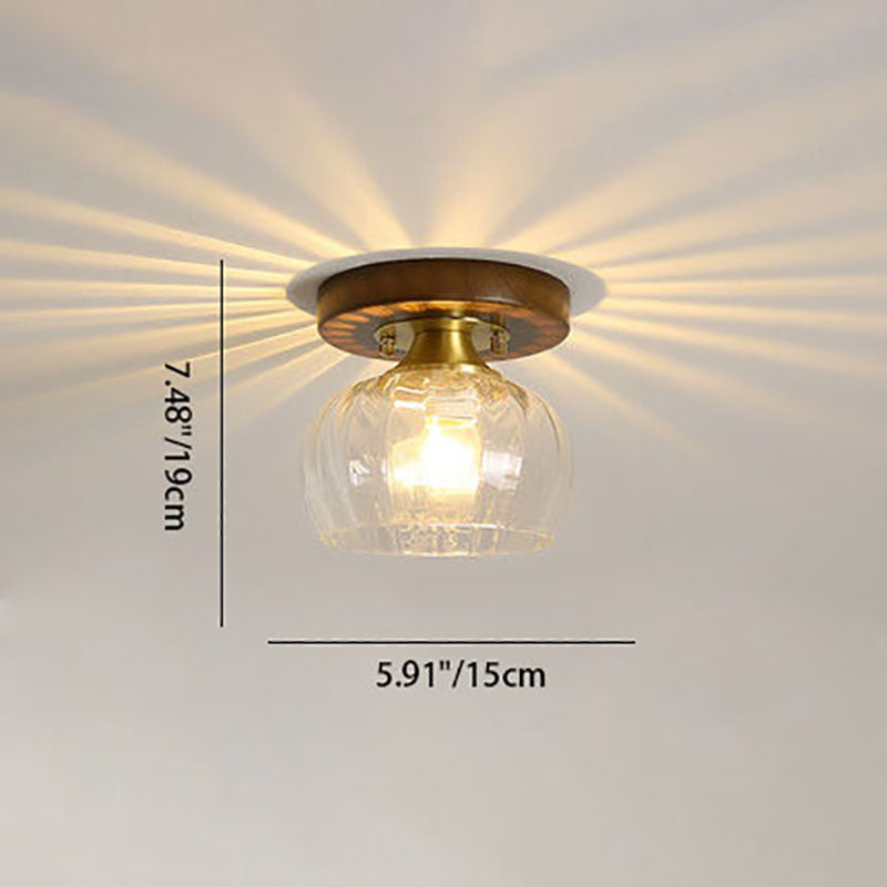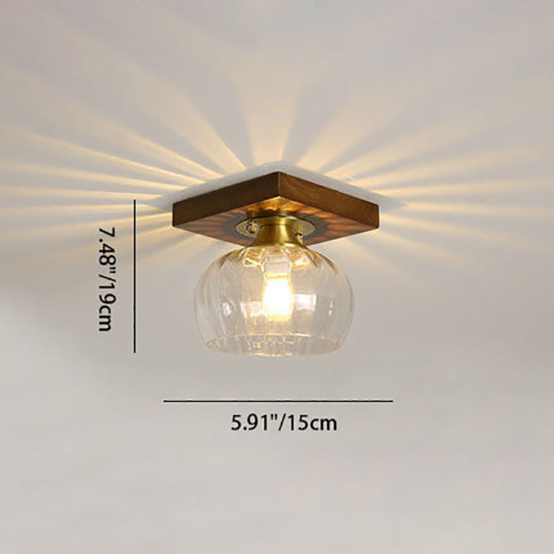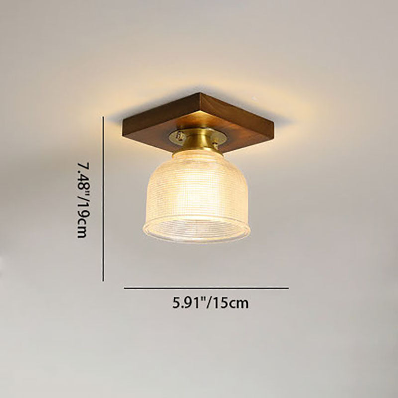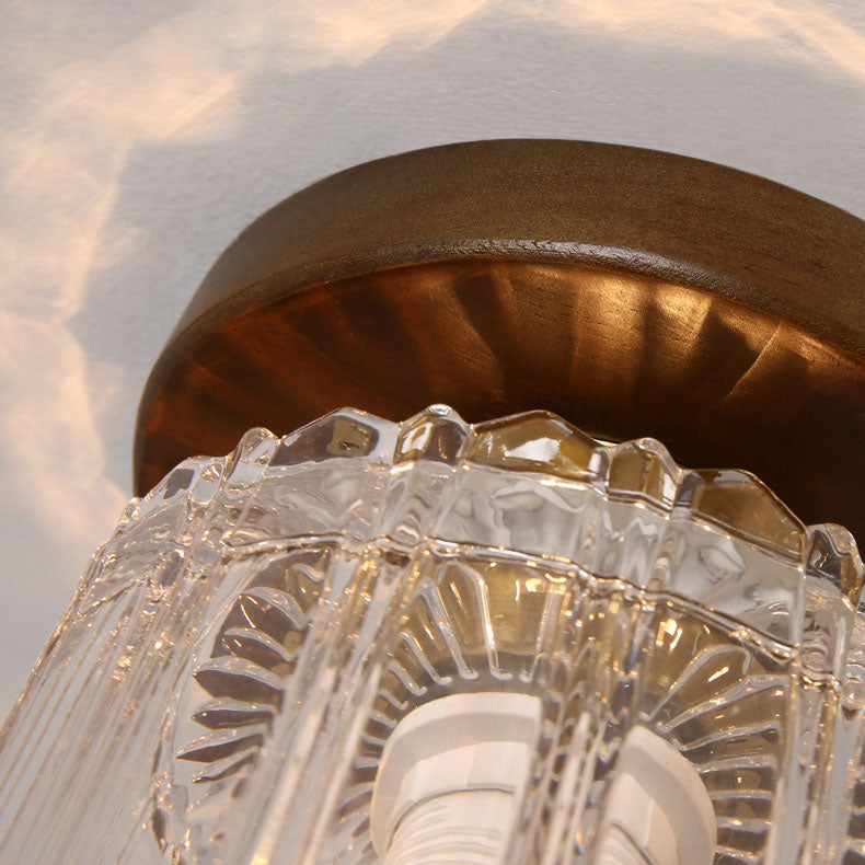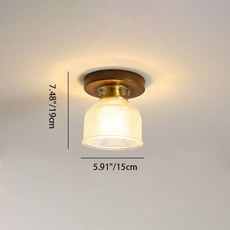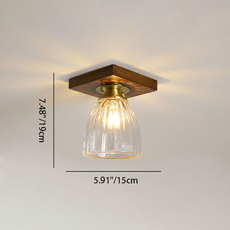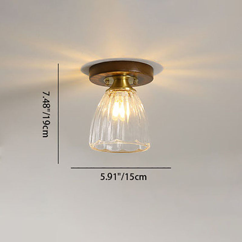 モダンなトランジショナルガラスカップシェイプの無垢材1ライトセミフラッシュマウントシーリングライトリビングルーム用