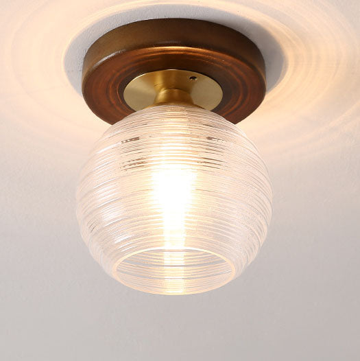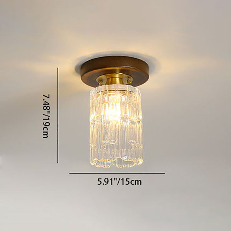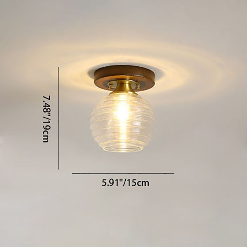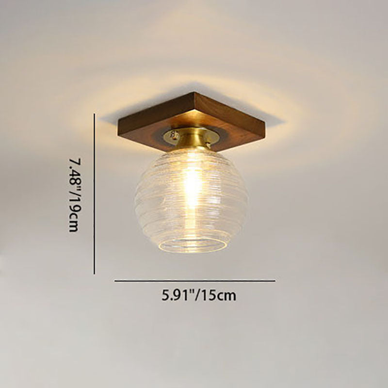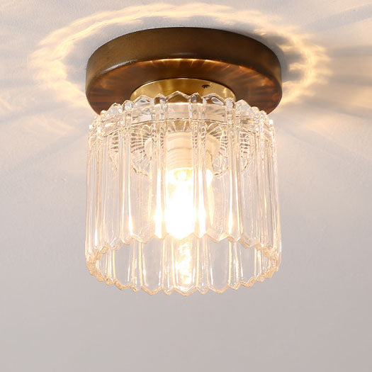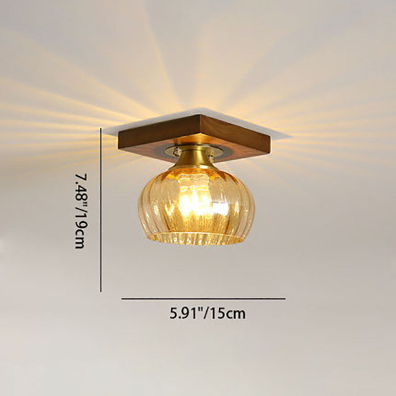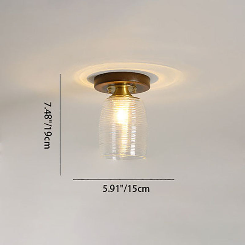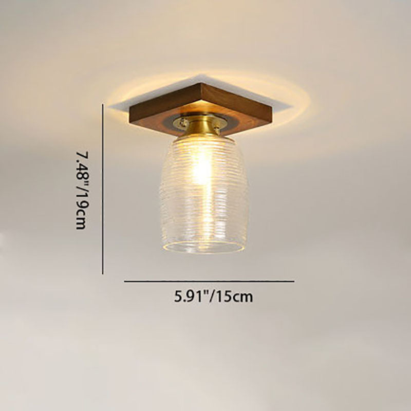 モダンなトランジショナルガラスカップシェイプの無垢材1ライトセミフラッシュマウントシーリングライトリビングルーム用