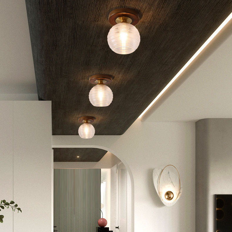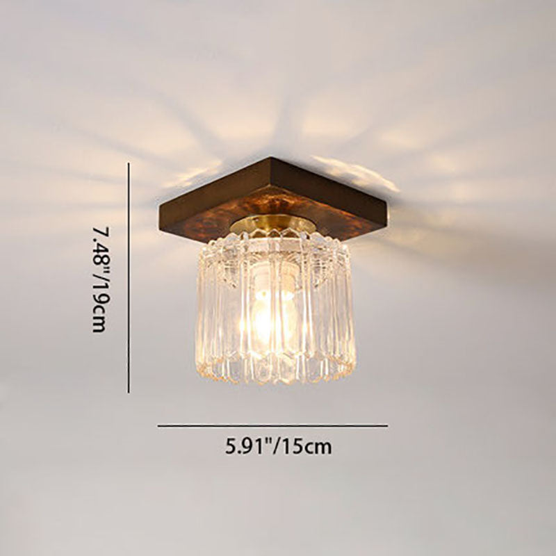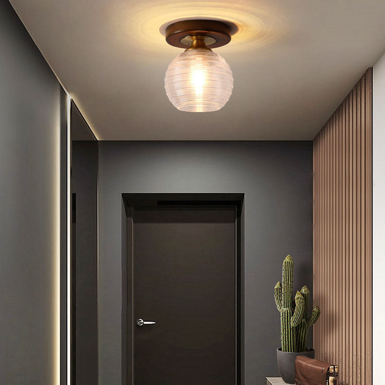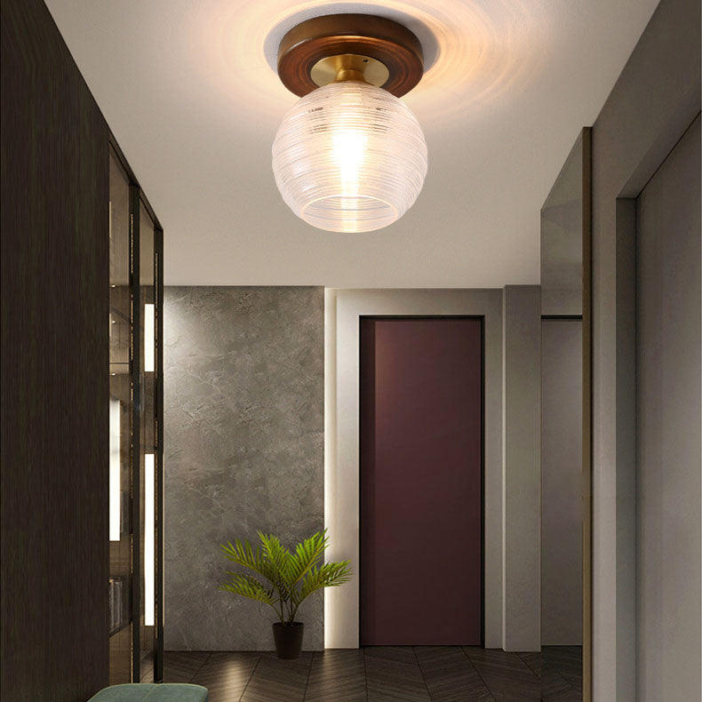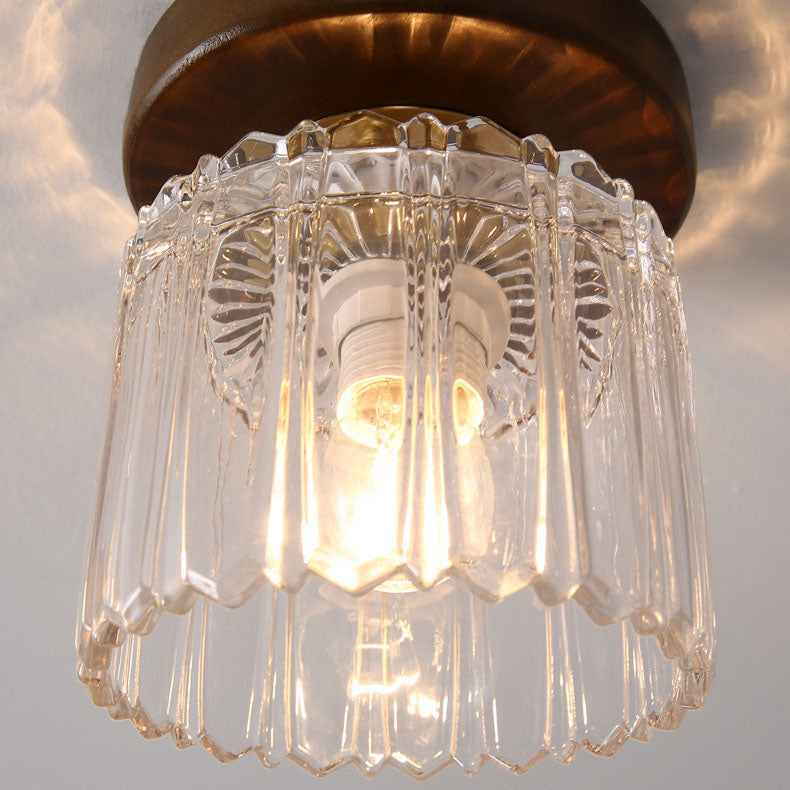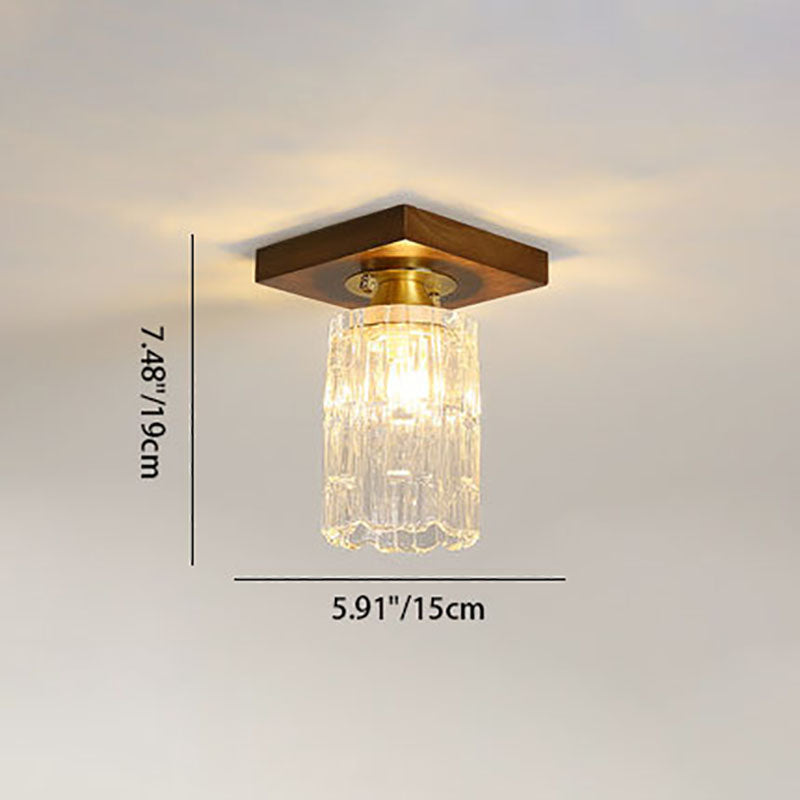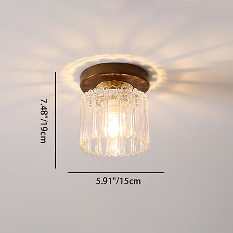 モダンなトランジショナルガラスカップシェイプの無垢材1ライトセミフラッシュマウントシーリングライトリビングルーム用