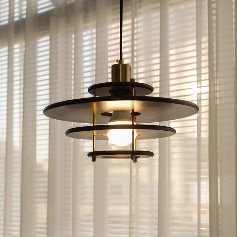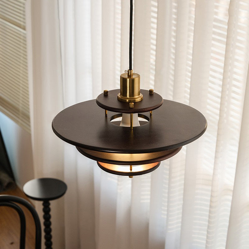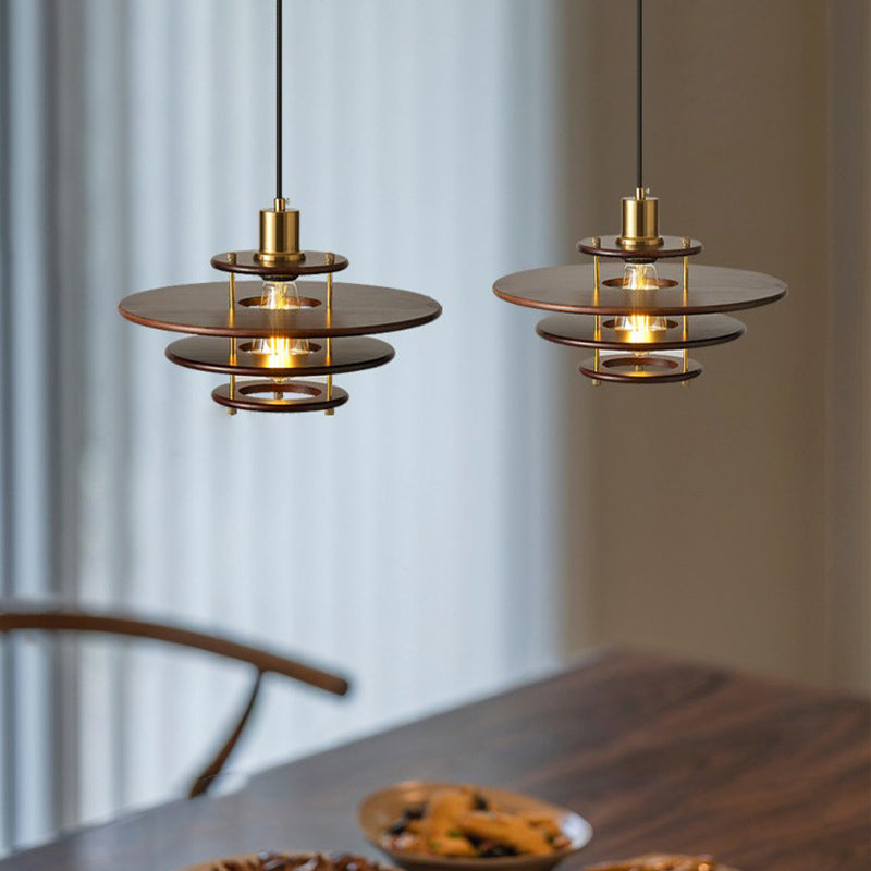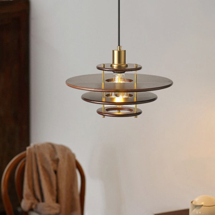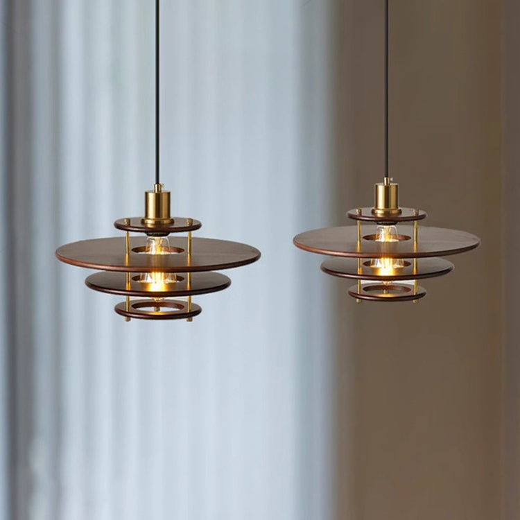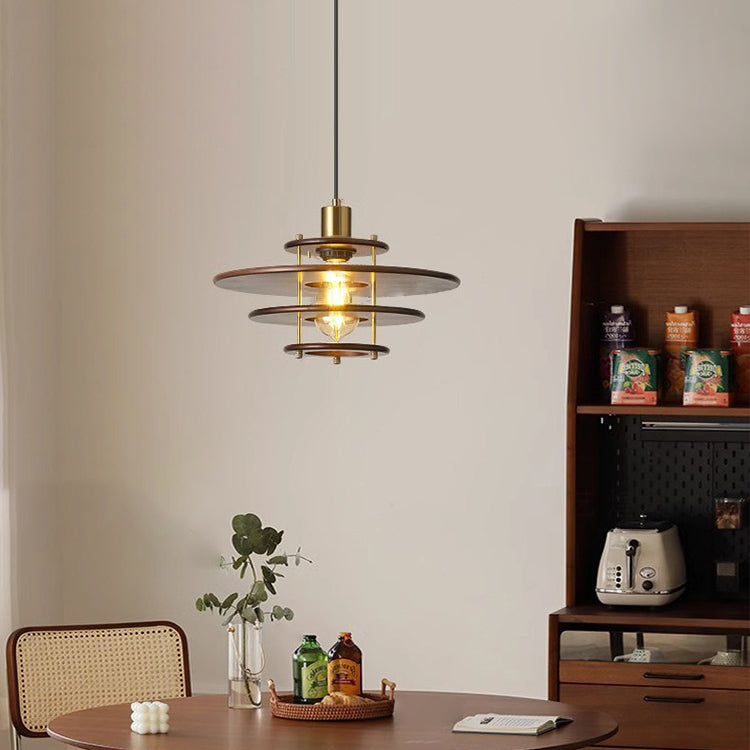 モダントランジショナル UFO ハードウェア 木製 1灯 ペンダントライト ダイニングルーム用