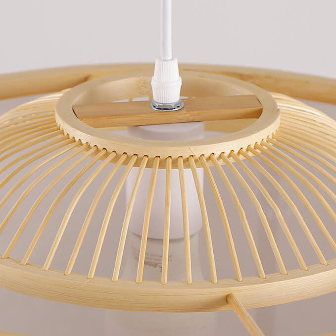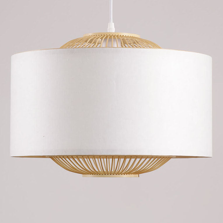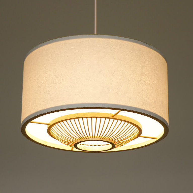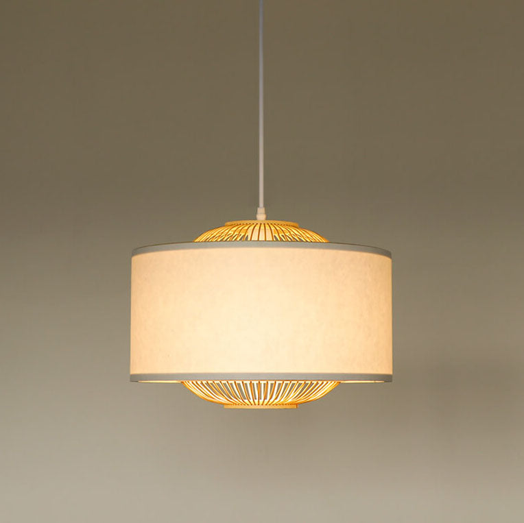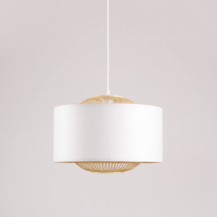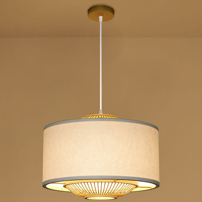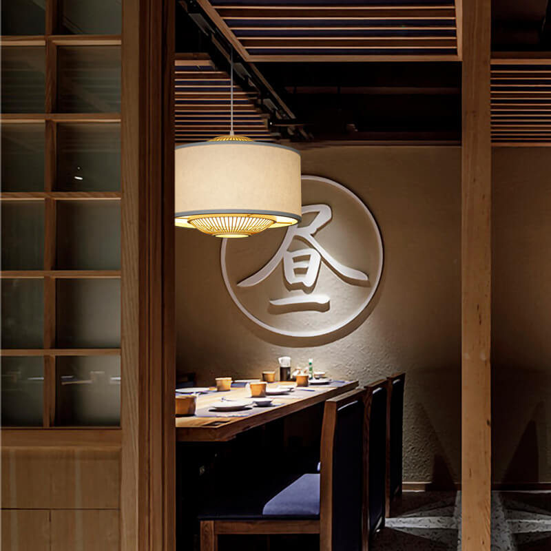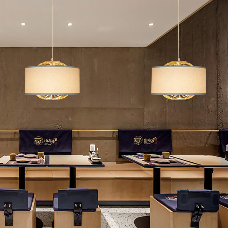 モダン禅竹編みパーチメントドラム1灯ペンダントライト
