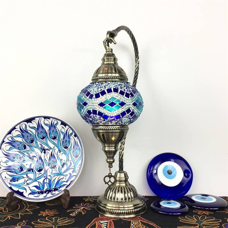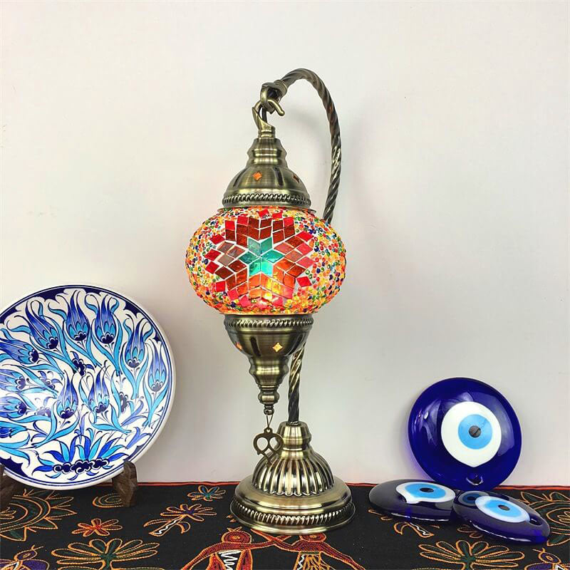 Moroccan Vintage Handmade Stained Glass Jar Swan 1-Light Table Lamp