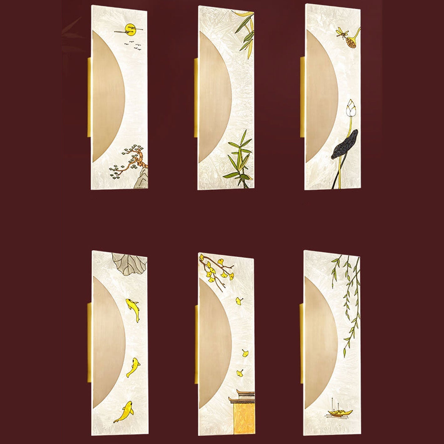 新しい中国風フル銅製超薄型壁画デザインLED壁取り付け用燭台ランプ