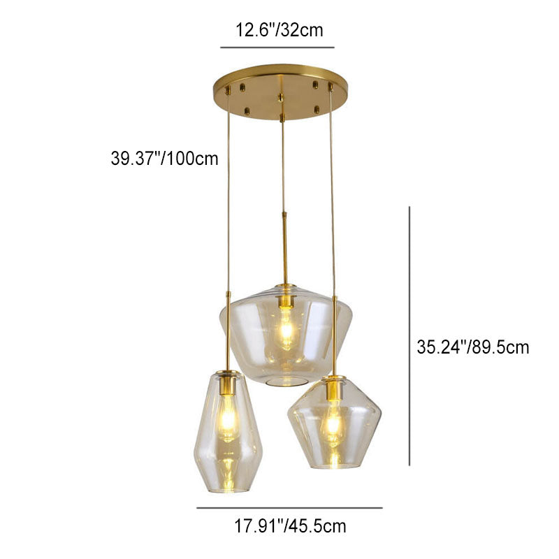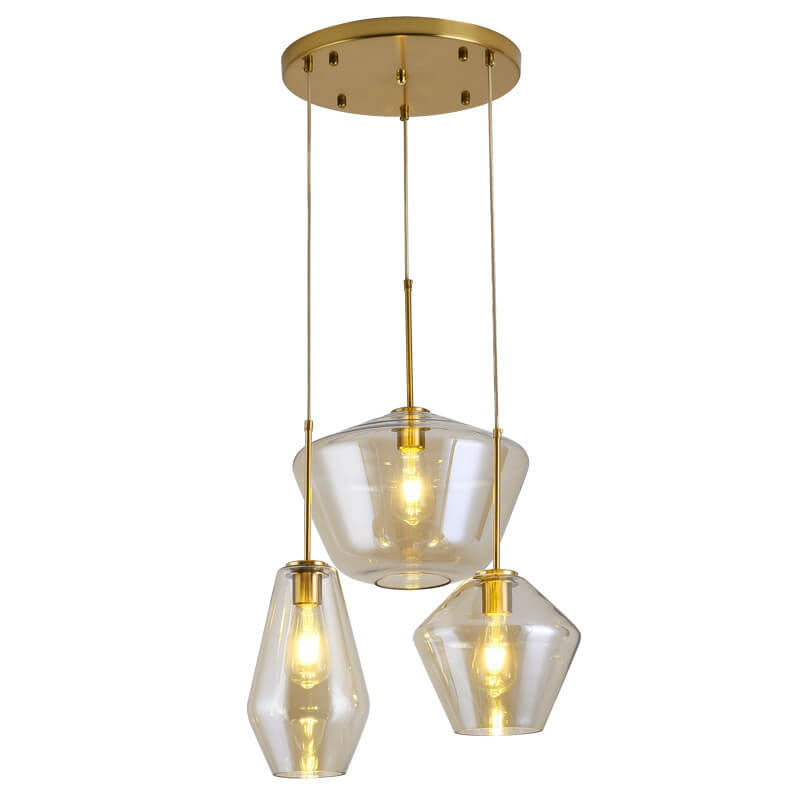 北欧のクリエイティブな多角形ガラス3灯シャンデリア