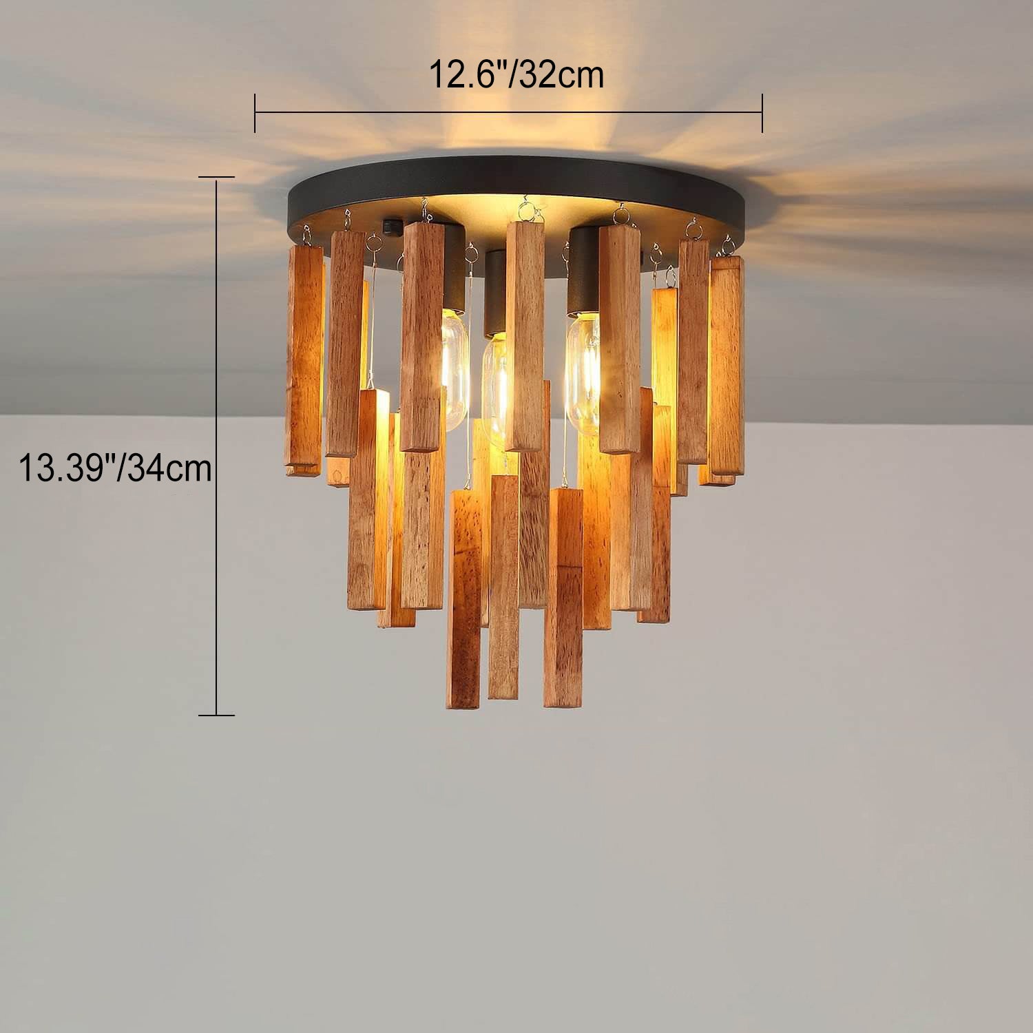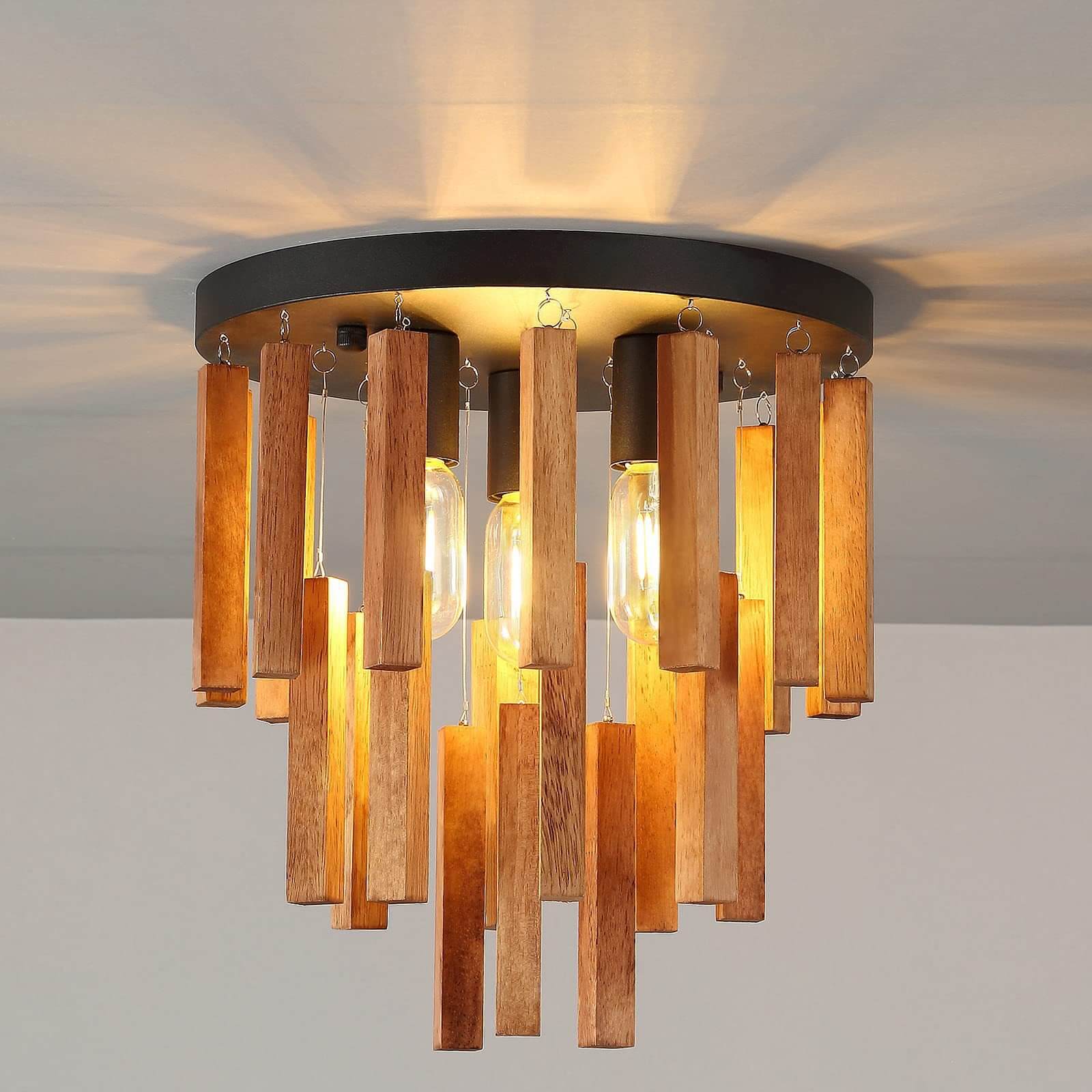 北欧インダストリアル ラウンド ロングストリップ ログアイアン 3灯 フラッシュマウント シーリングライト