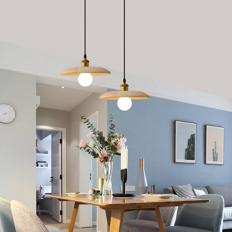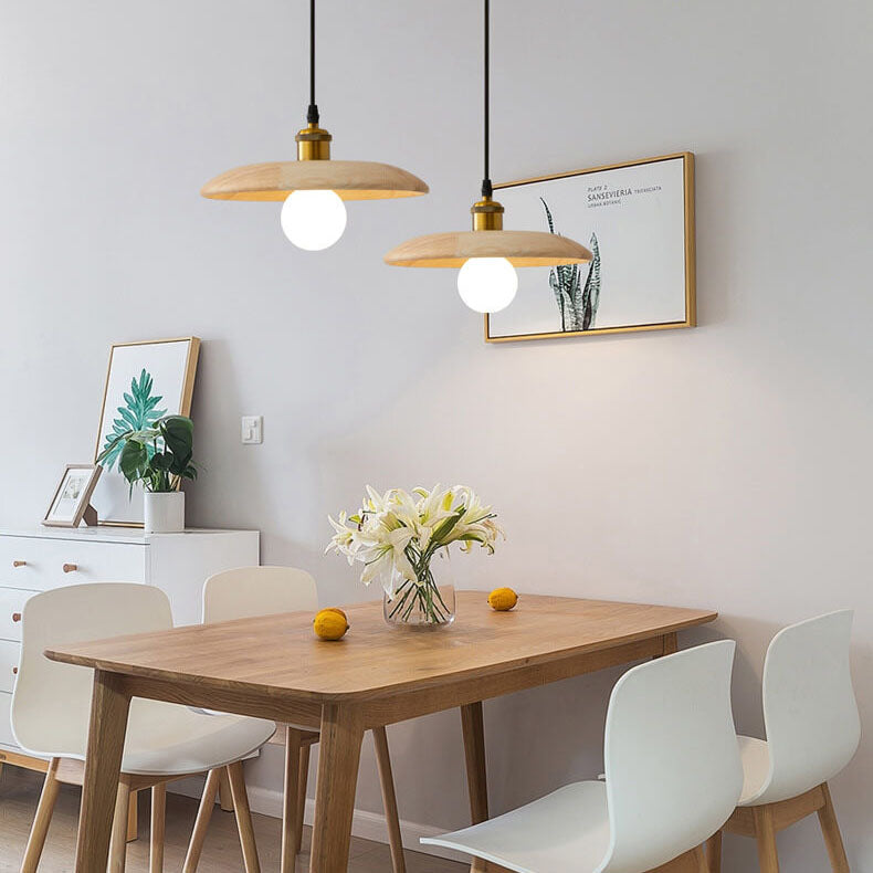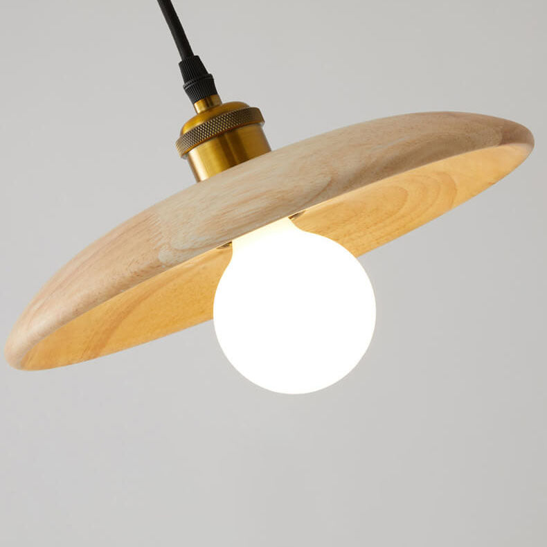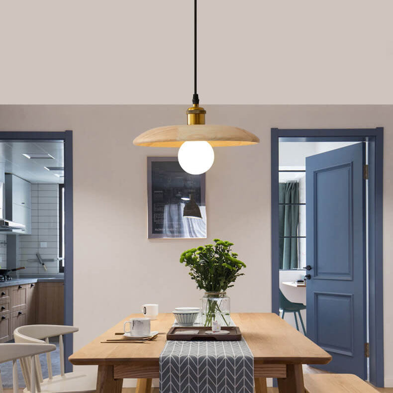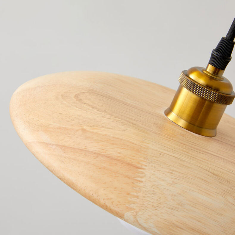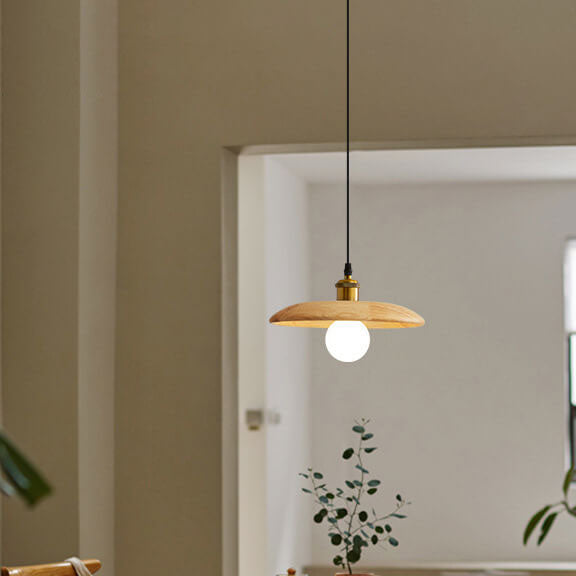 北欧モダンミニマリスト無垢材ディスク1灯ペンダントライト