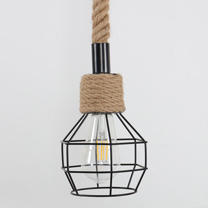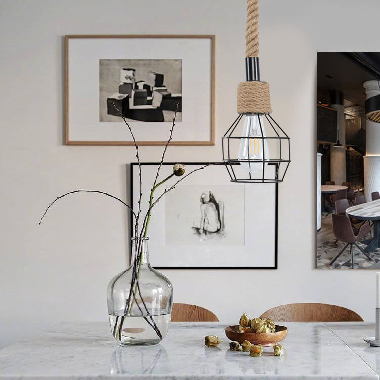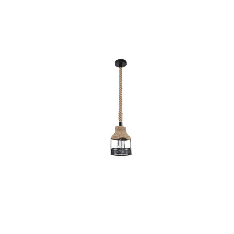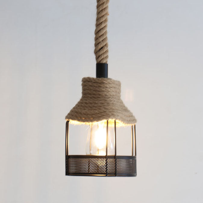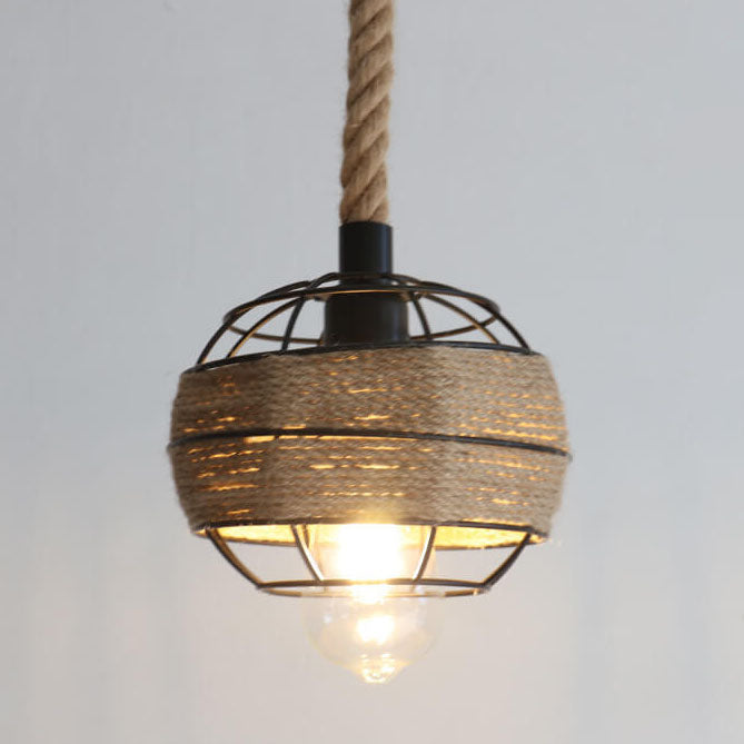 北欧風レトロ鉄製麻ロープ編み鳥かご型ペンダントライト 1灯